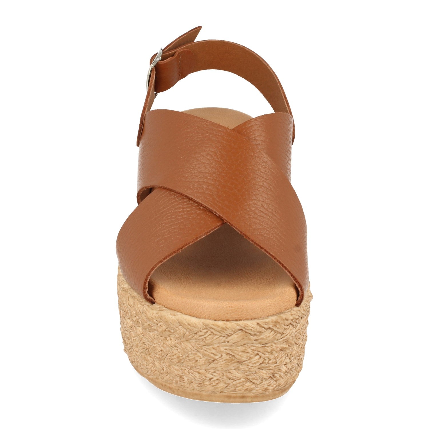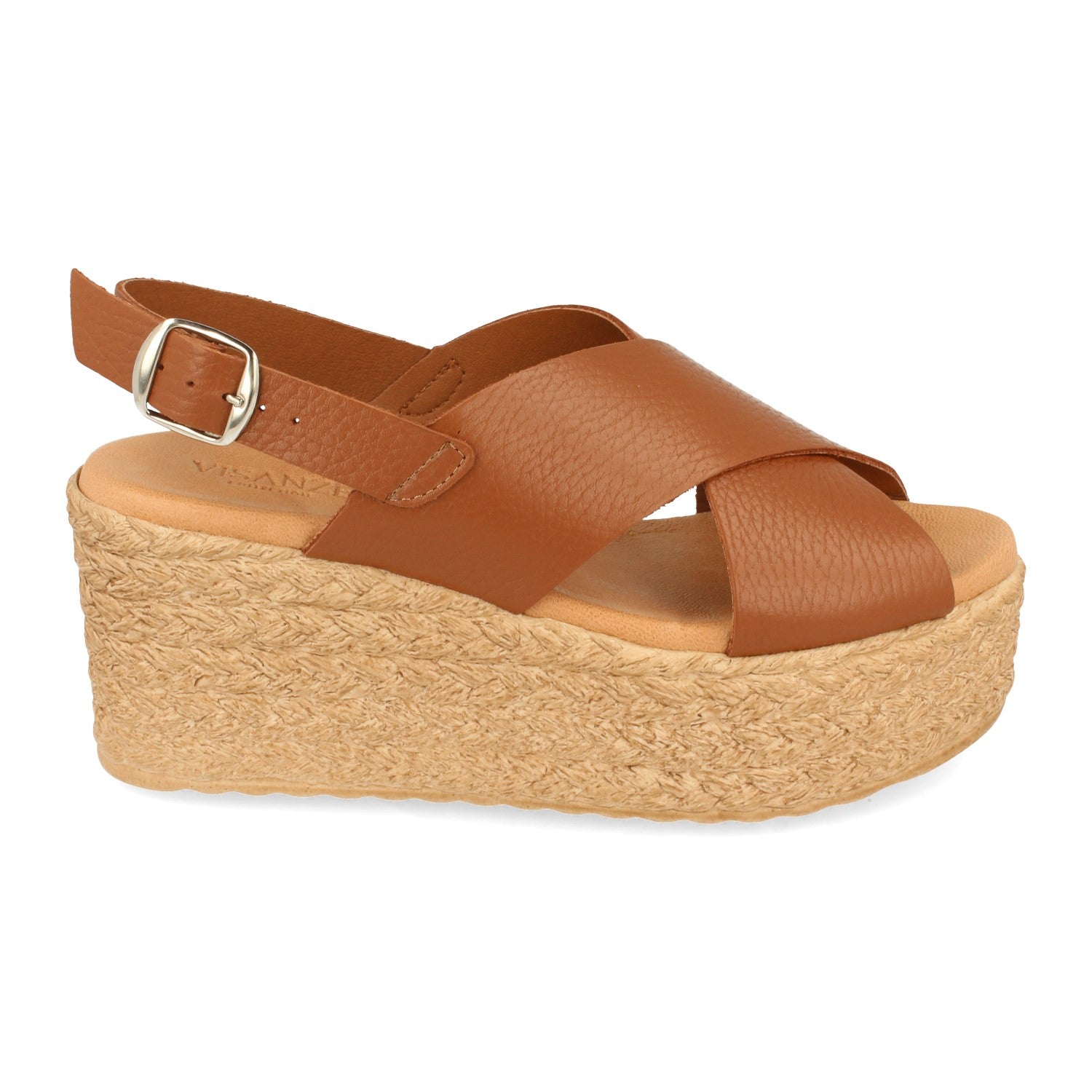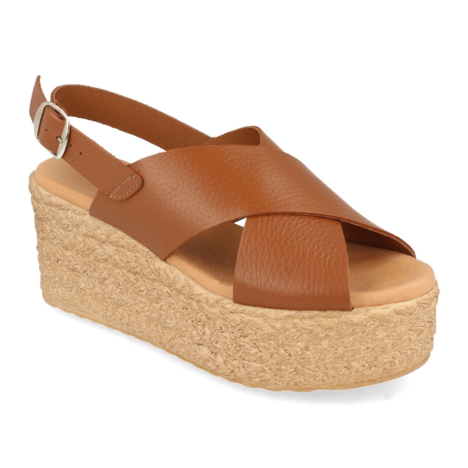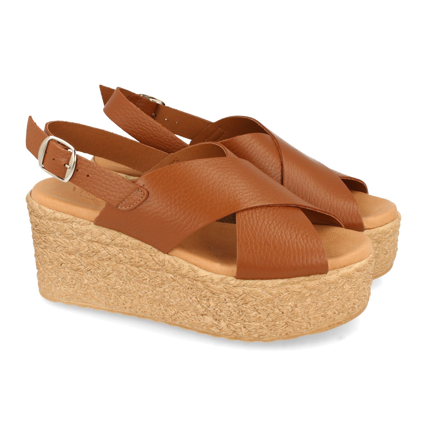 Sandalia de Plataforma para Mujer Palas Cruzadas con Efecto Arrugado y Cierre de Hebilla Fabricado con Piel Primavera Verano 2021