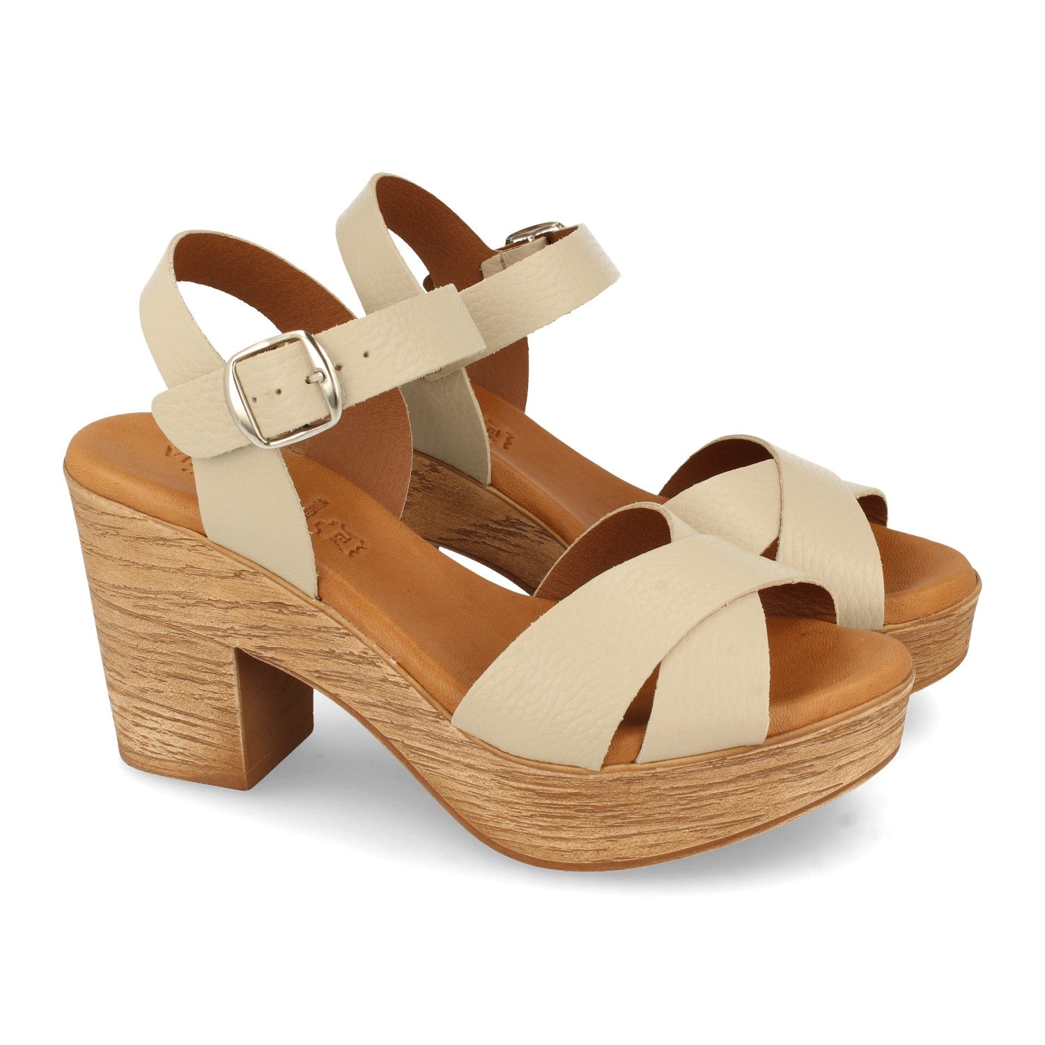 Sandalia de Tacón para Mujer con Palas Cruzadas y Cierre de Hebilla Fabricado con Piel Primavera Verano 2021