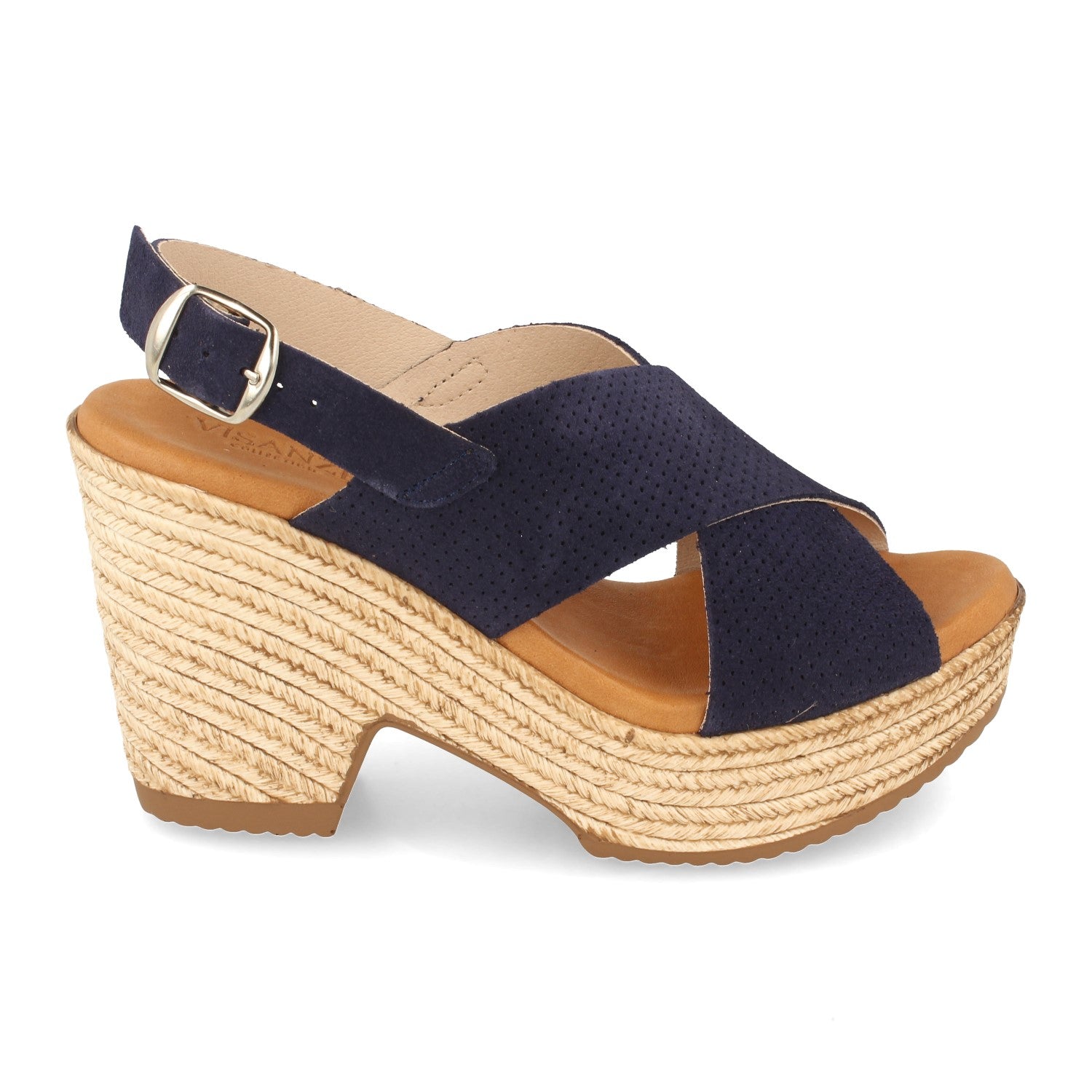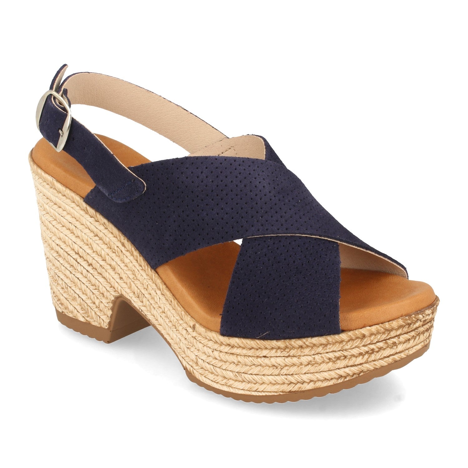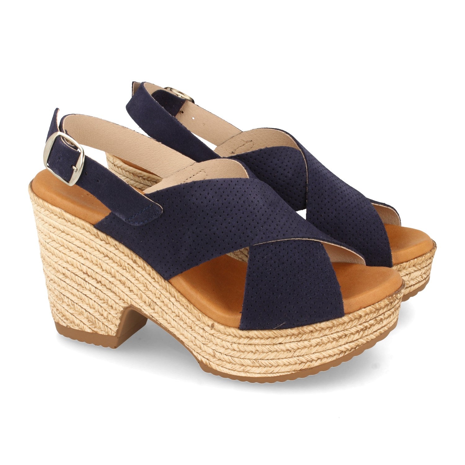 Sandalia de Tacón para Mujer Palas Cruzadas con Perforado Mil Puntos y Cierre de Hebilla Fabricado con Piel Primavera Verano 2021