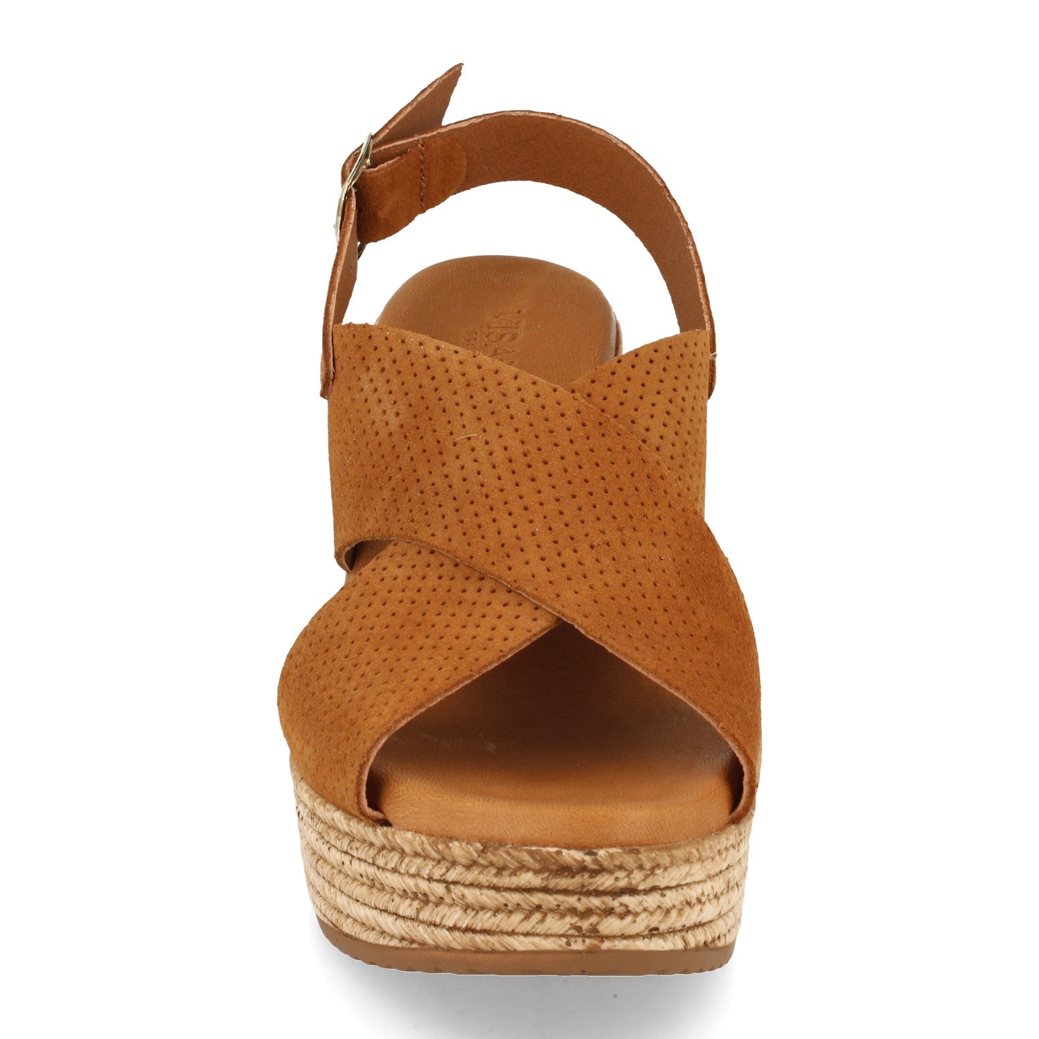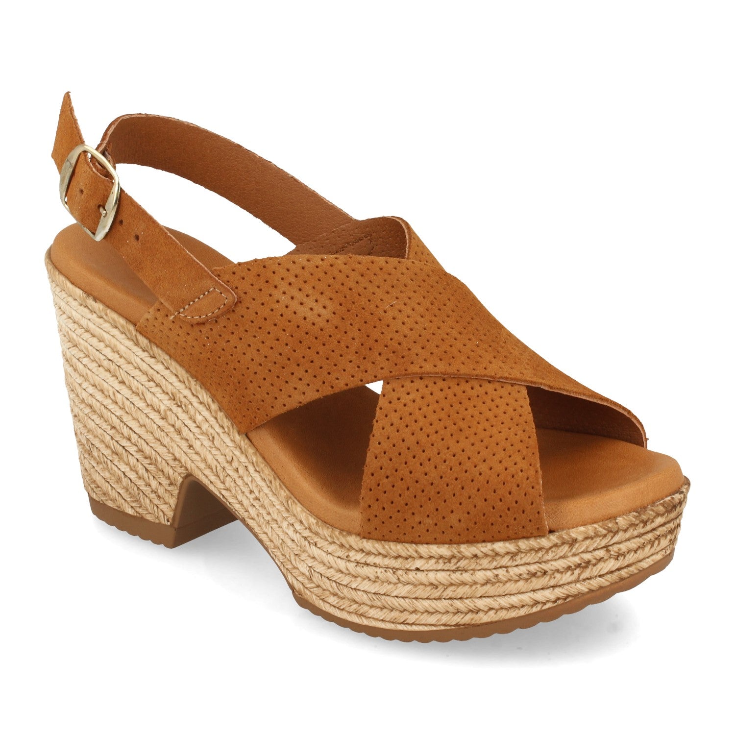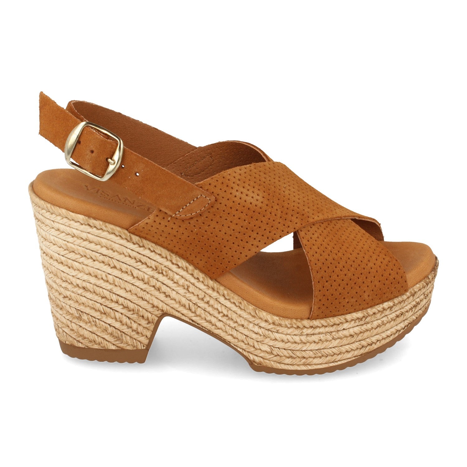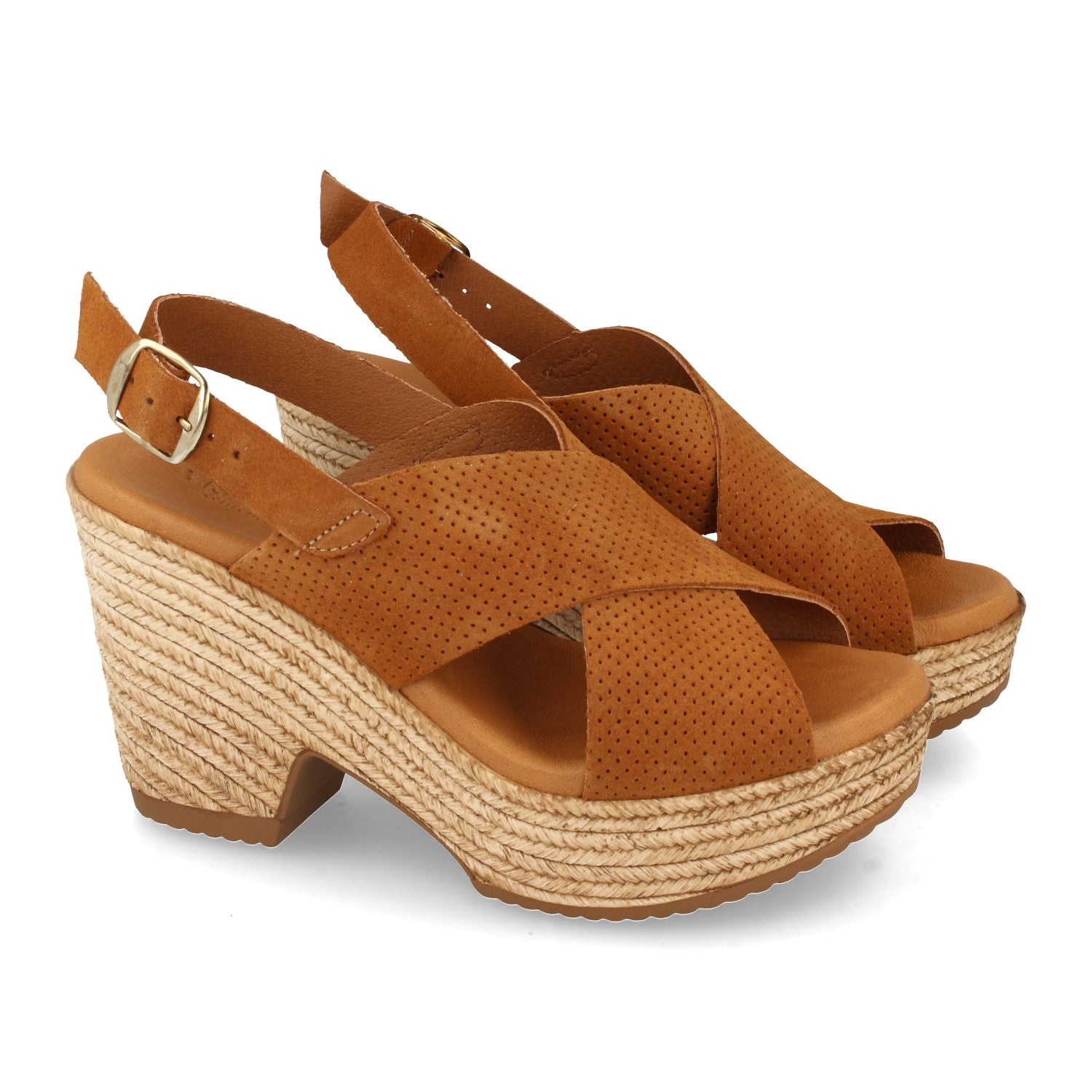 Sandalia de Tacón para Mujer Palas Cruzadas con Perforado Mil Puntos y Cierre de Hebilla Fabricado con Piel Primavera Verano 2021