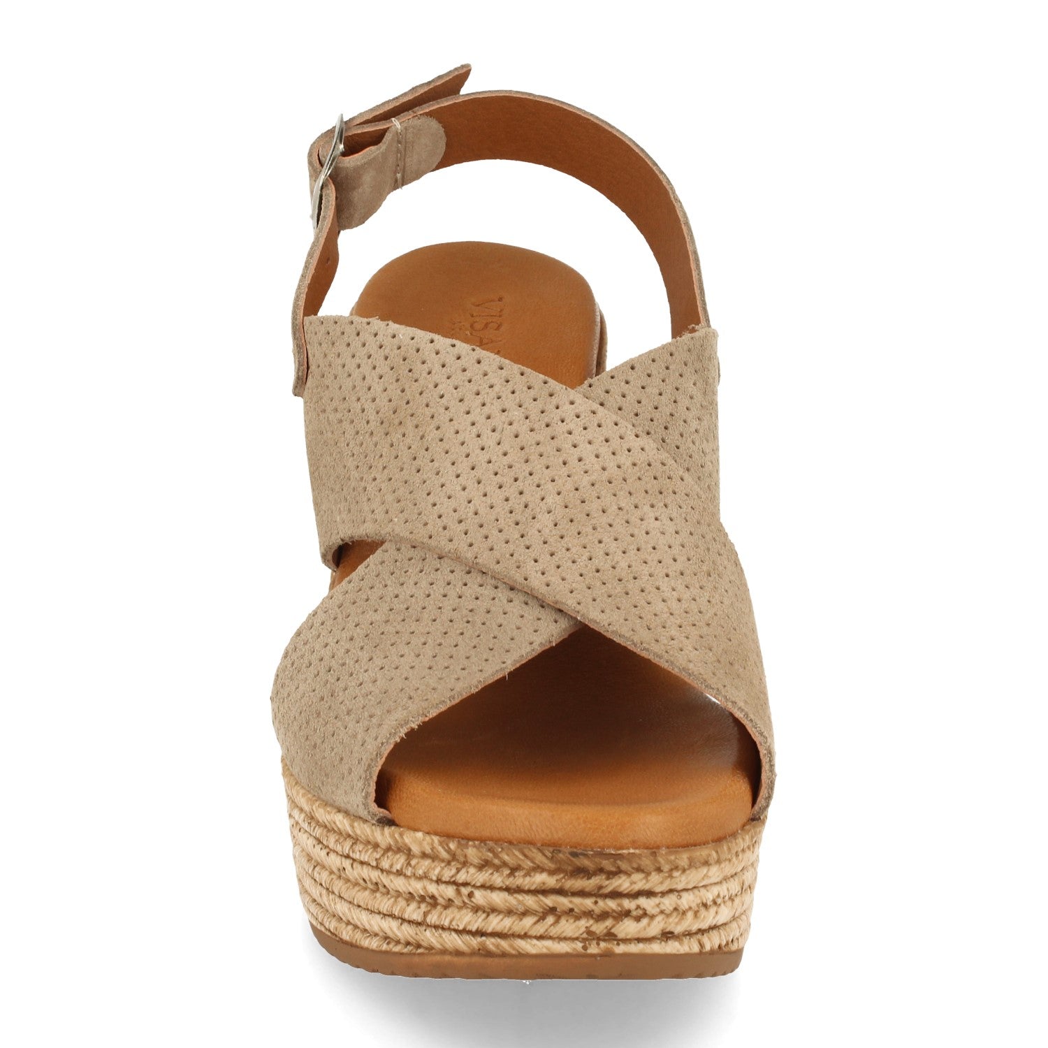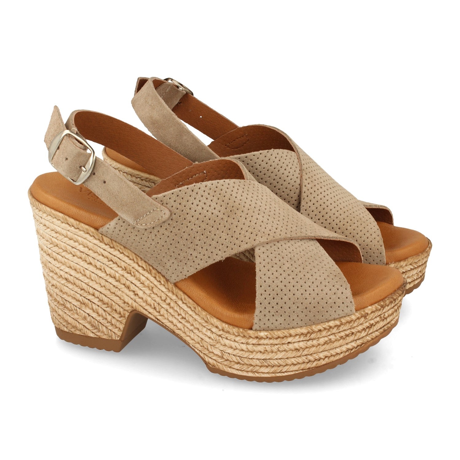 Sandalia de Tacón para Mujer Palas Cruzadas con Perforado Mil Puntos y Cierre de Hebilla Fabricado con Piel Primavera Verano 2021