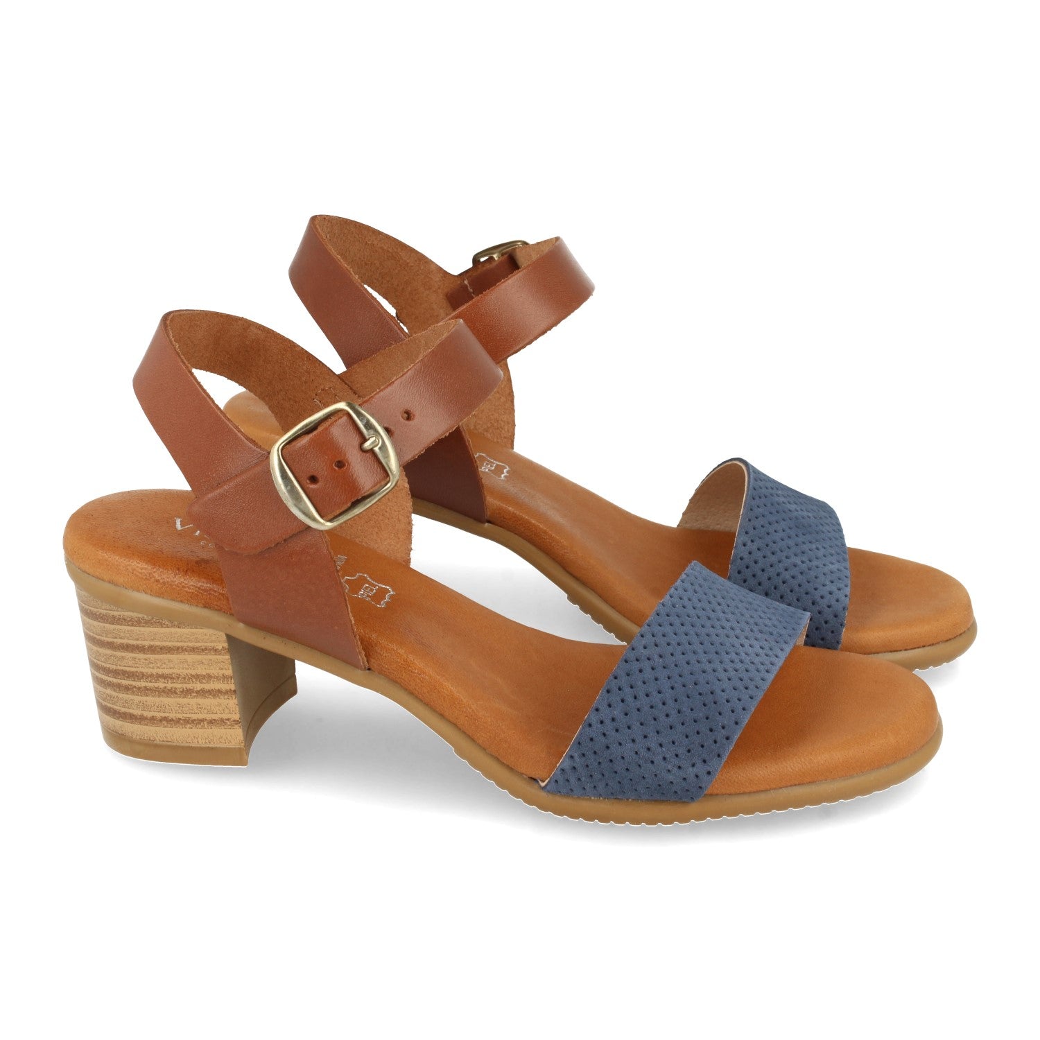 Sandalia de Tacón para Mujer Estilo Casual Pala Simple con Calados y Cierre de Hebilla Fabricado con Piel Primavera Verano 2021