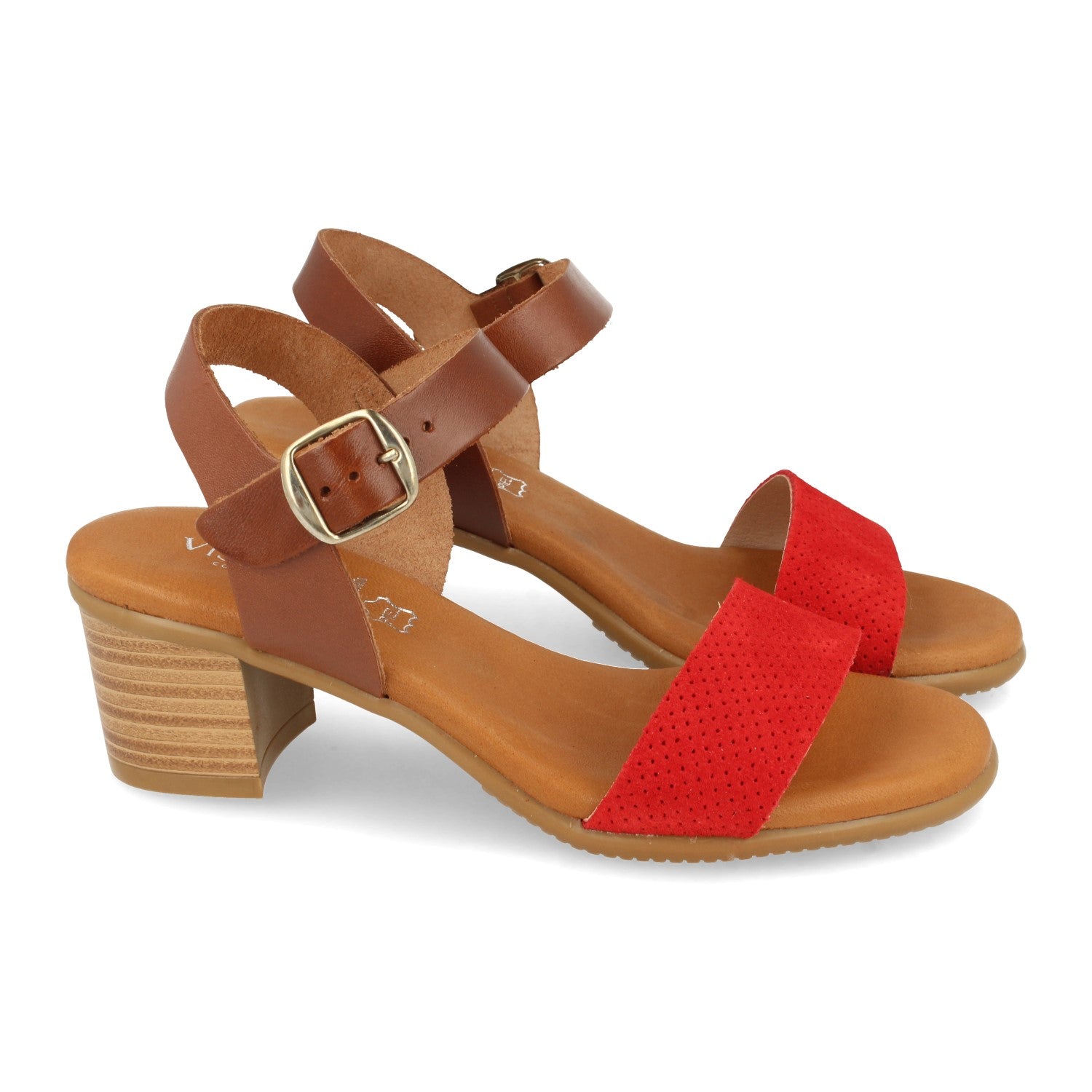 Sandalia de Tacón para Mujer Estilo Casual Pala Simple con Calados y Cierre de Hebilla Fabricado con Piel Primavera Verano 2021