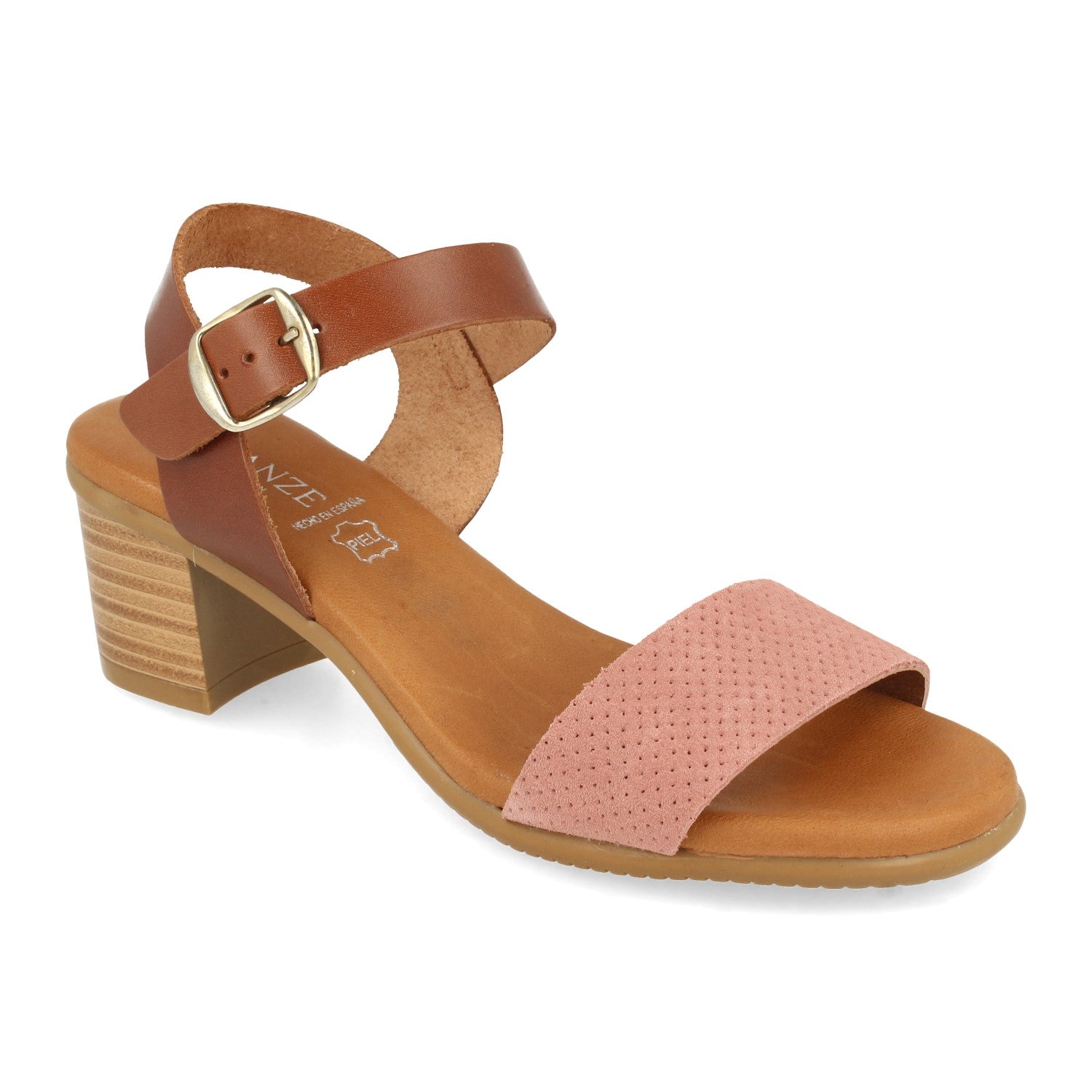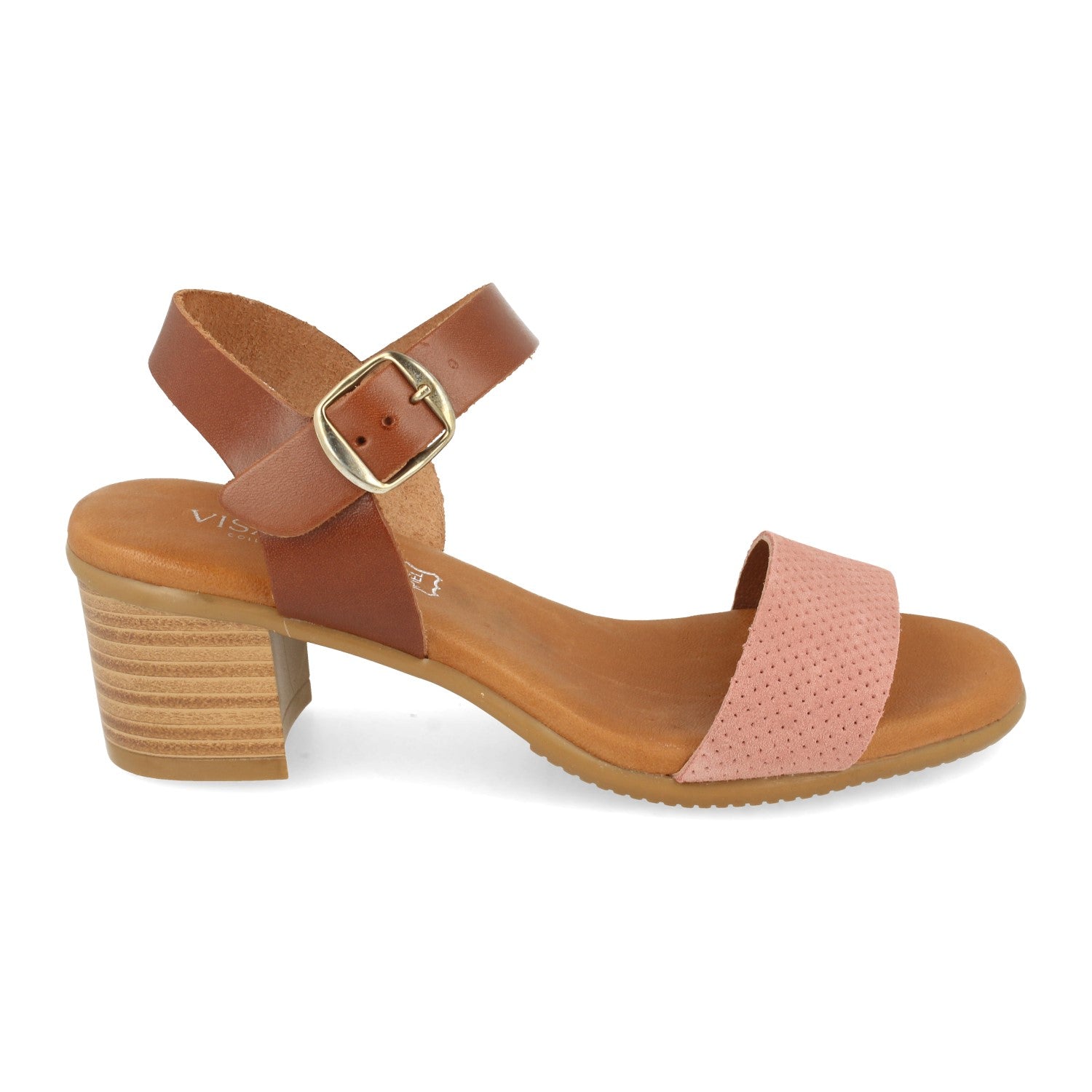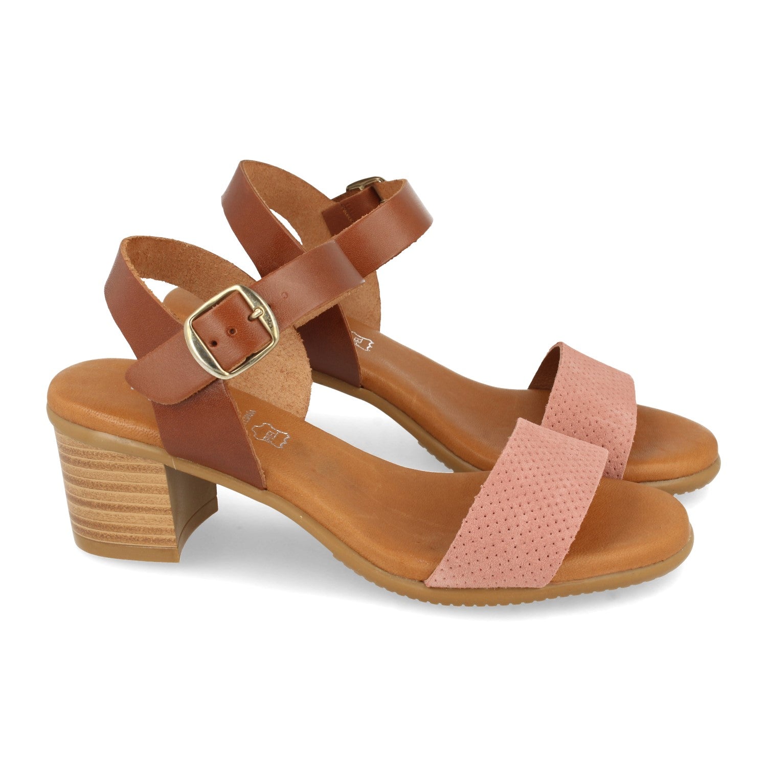 Sandalia de Tacón para Mujer Estilo Casual Pala Simple con Calados y Cierre de Hebilla Fabricado con Piel Primavera Verano 2021