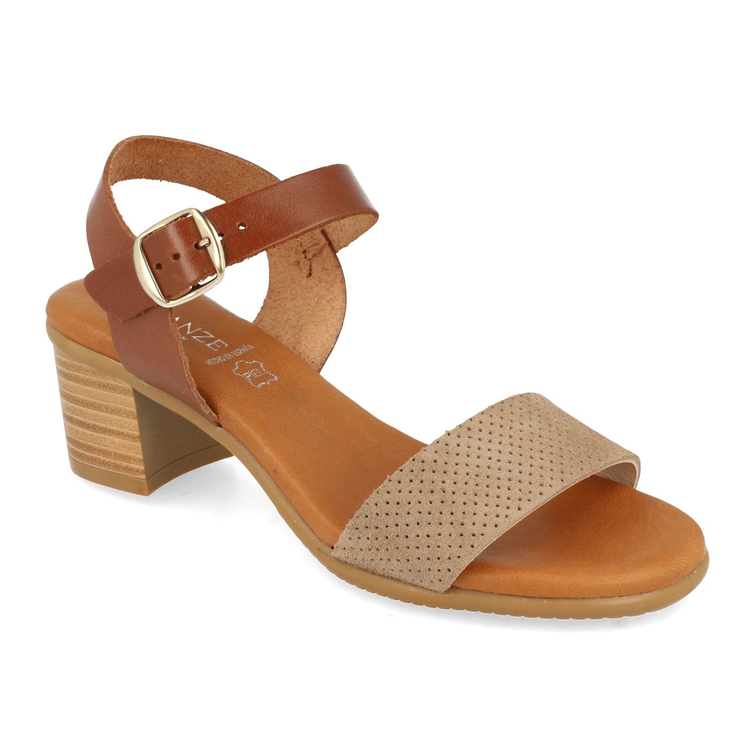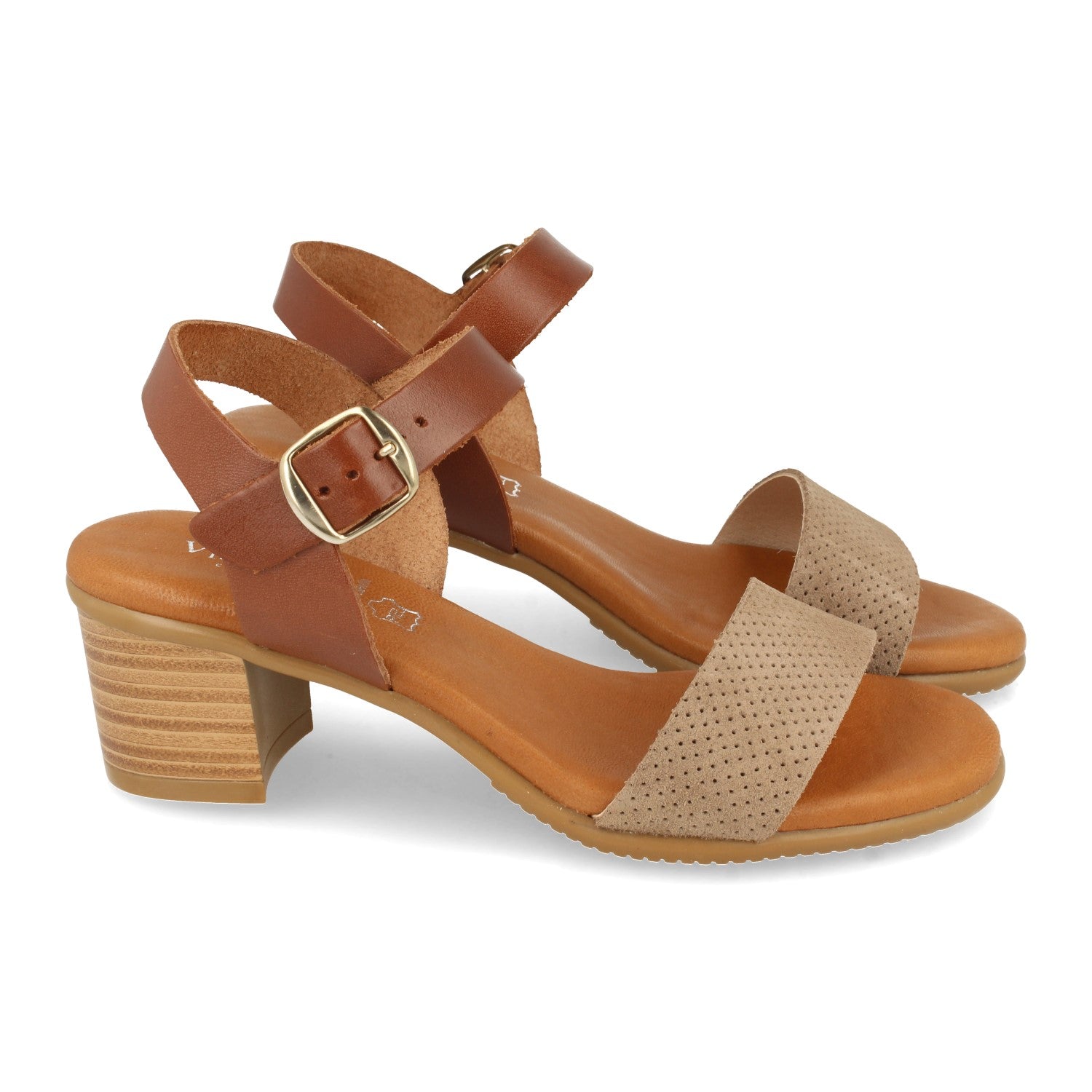 Sandalia de Tacón para Mujer Estilo Casual Pala Simple con Calados y Cierre de Hebilla Fabricado con Piel Primavera Verano 2021