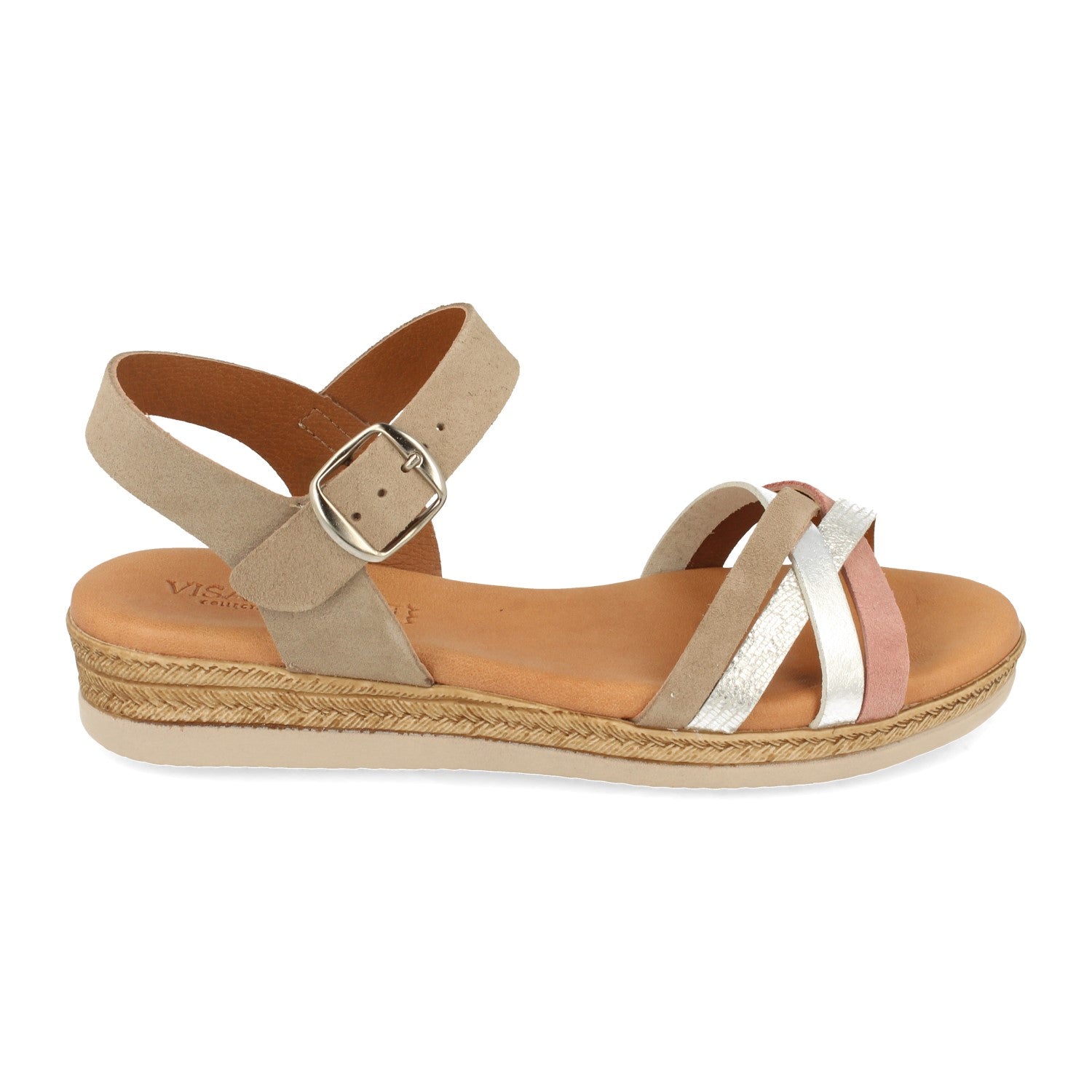 Sandalia Plana para Mujer con Palas Cruzadas con Estampado y Cierre de Hebilla Fabricado con Piel Primavera Verano 2021