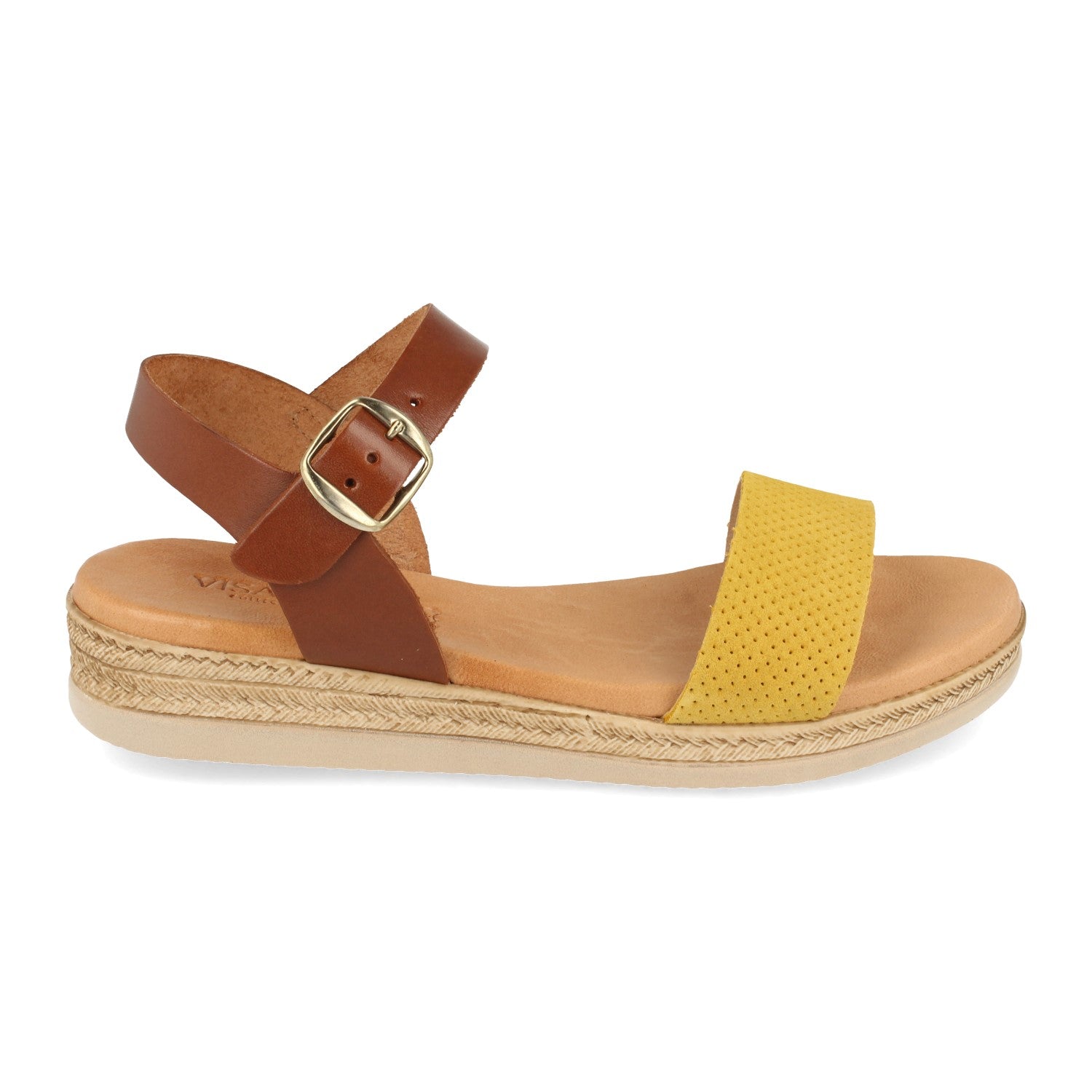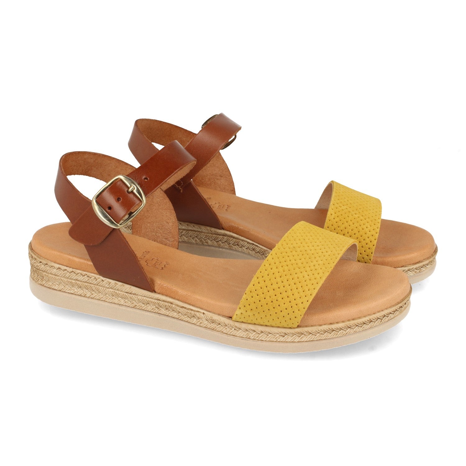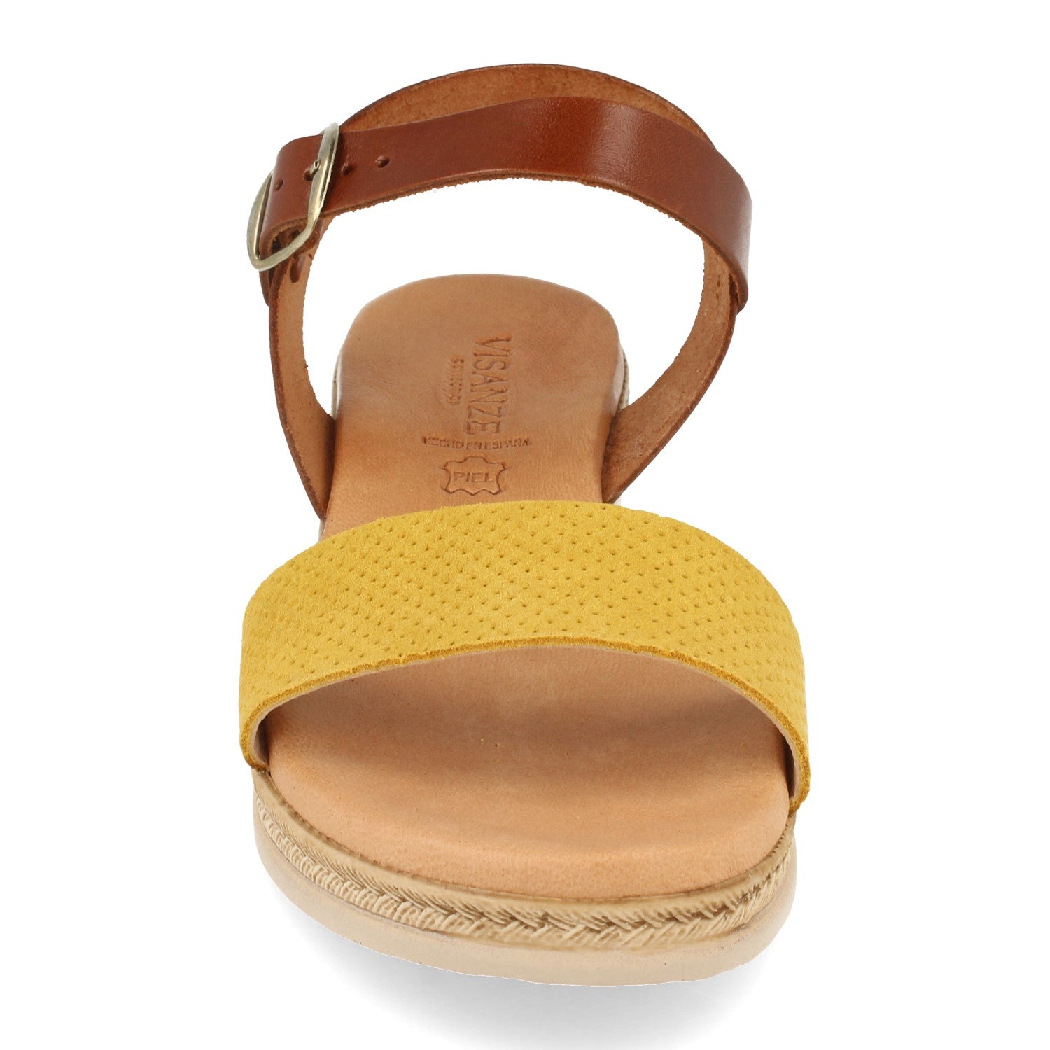 Sandalia Plana para Mujer Comodas Pala con Perforado Mil Puntos y Cierre de Hebilla Fabricado con Piel Primavera Verano 2021