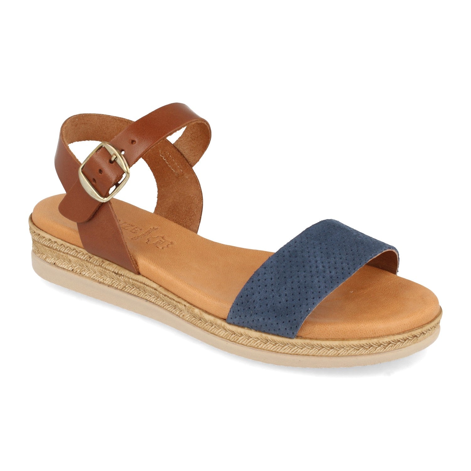 Sandalia Plana para Mujer Comodas Pala con Perforado Mil Puntos y Cierre de Hebilla Fabricado con Piel Primavera Verano 2021