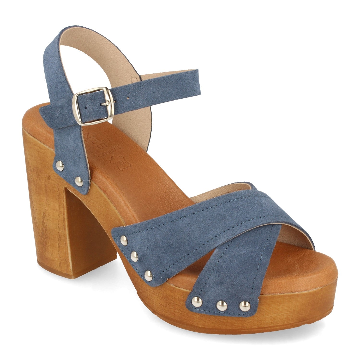 Sandalia de Tacón para Mujer Comodas con Palas Cruzadas Tachuelas de Sujeción y Cierre de Hebilla Fabricado con Piel Primavera Verano 2021