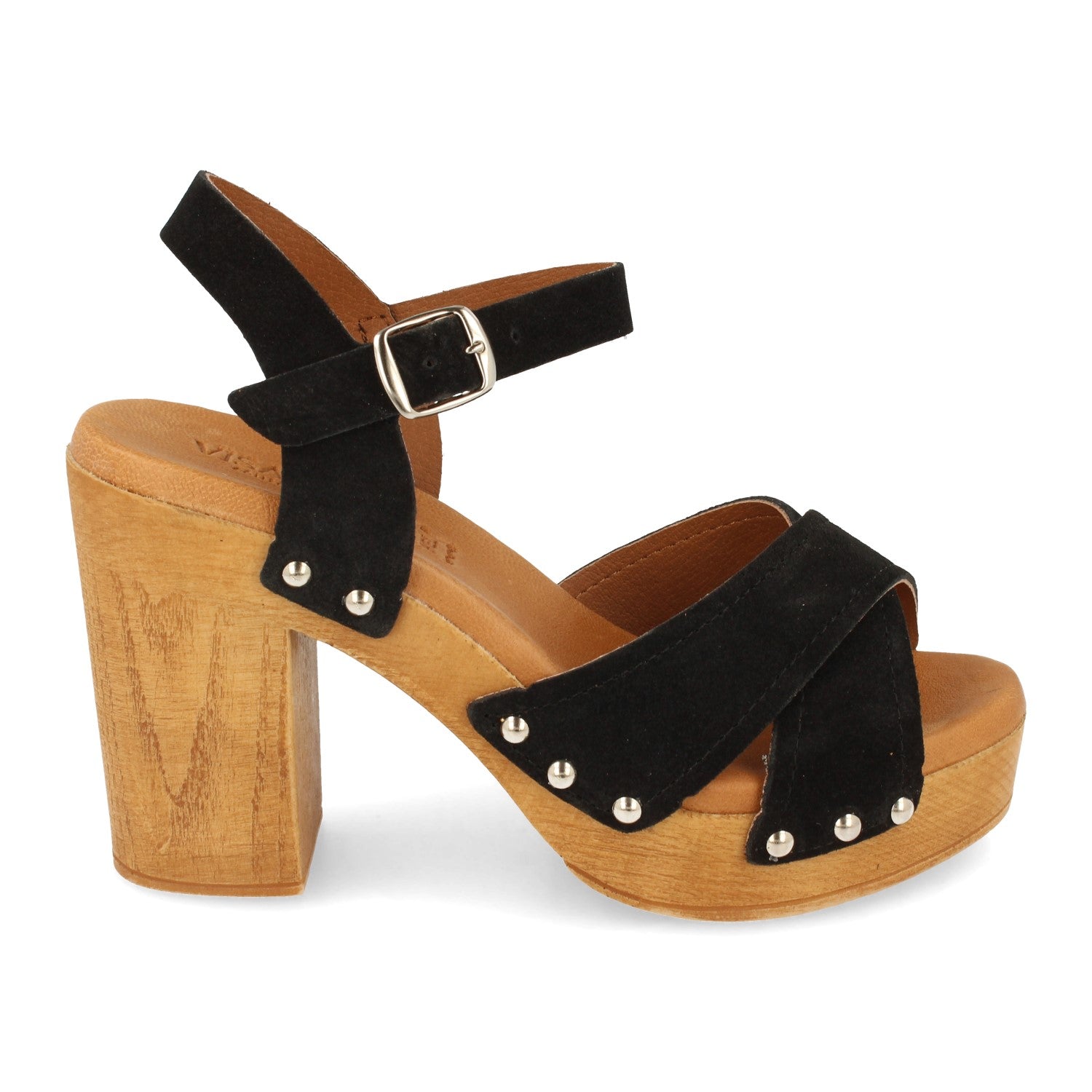 Sandalia de Tacón para Mujer Comodas con Palas Cruzadas Tachuelas de Sujeción y Cierre de Hebilla Fabricado con Piel Primavera Verano 2021