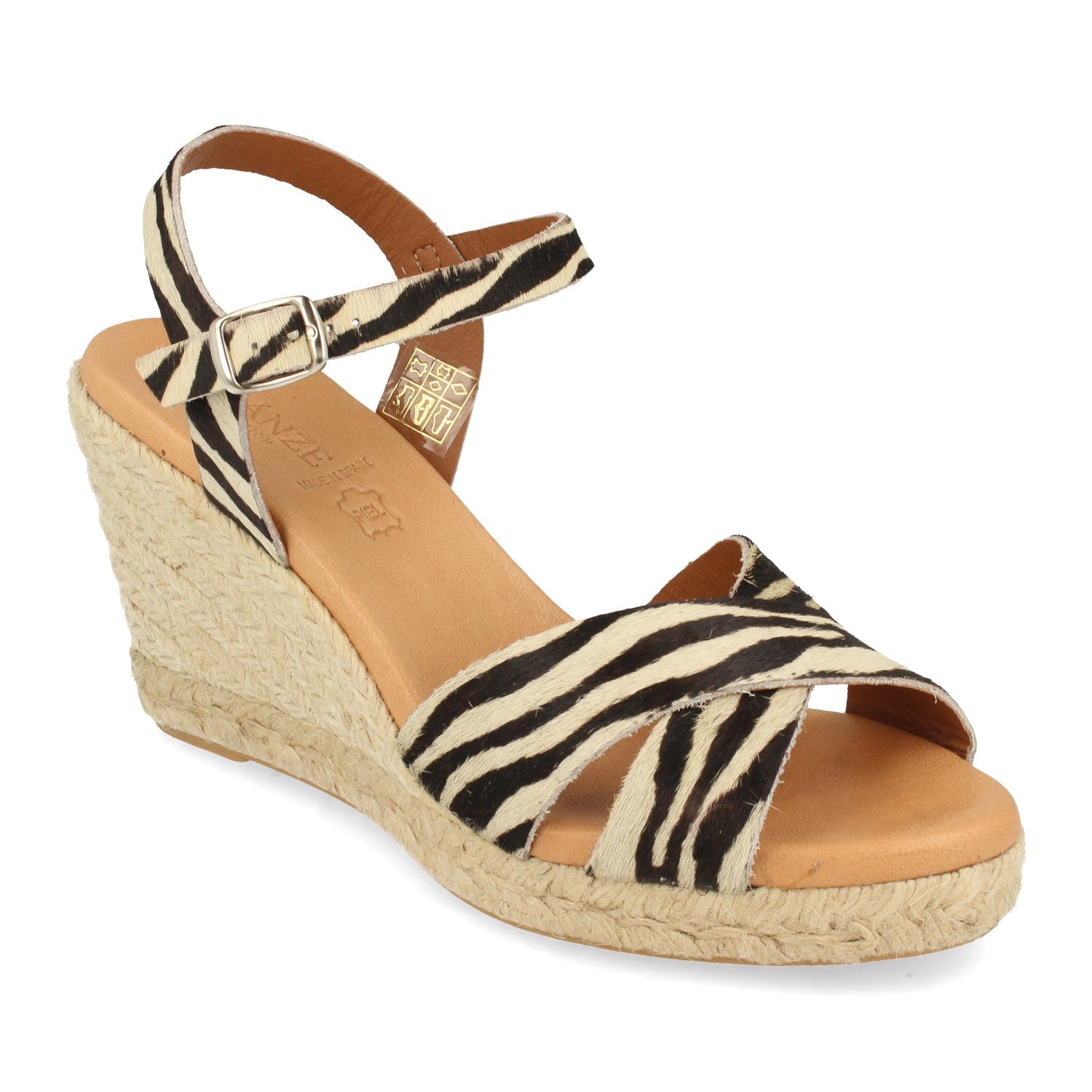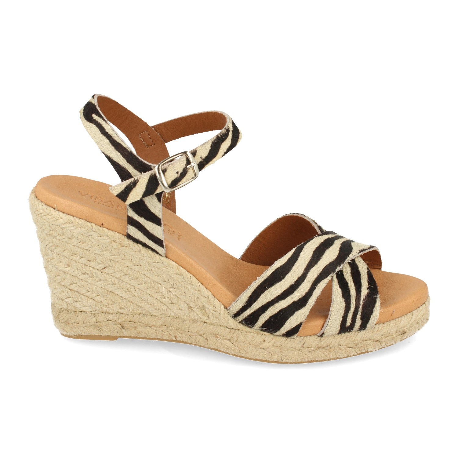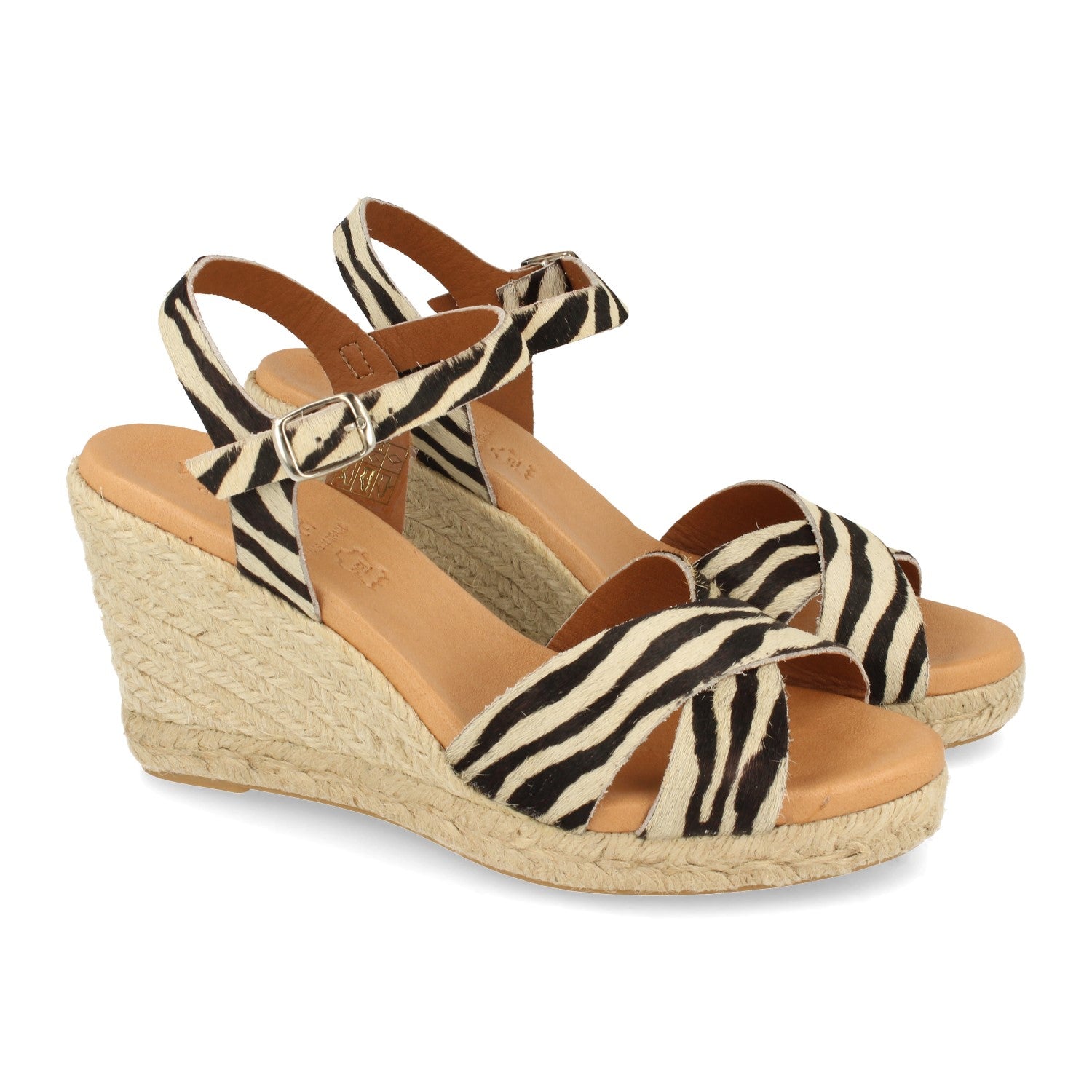 Sandalia de Cuña para Mujer Forrado con Yute Pala Cruzada Estampado de Cebra y Cierre de Hebilla Fabricado con Piel Primavera Verano 2021