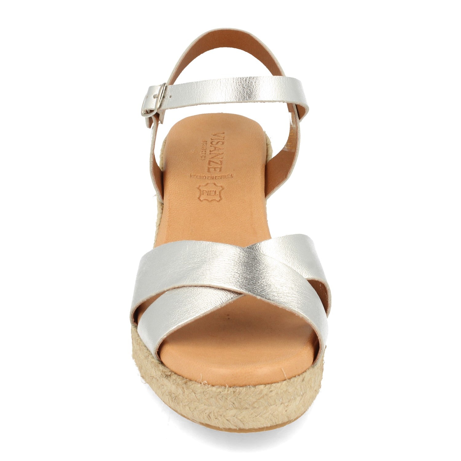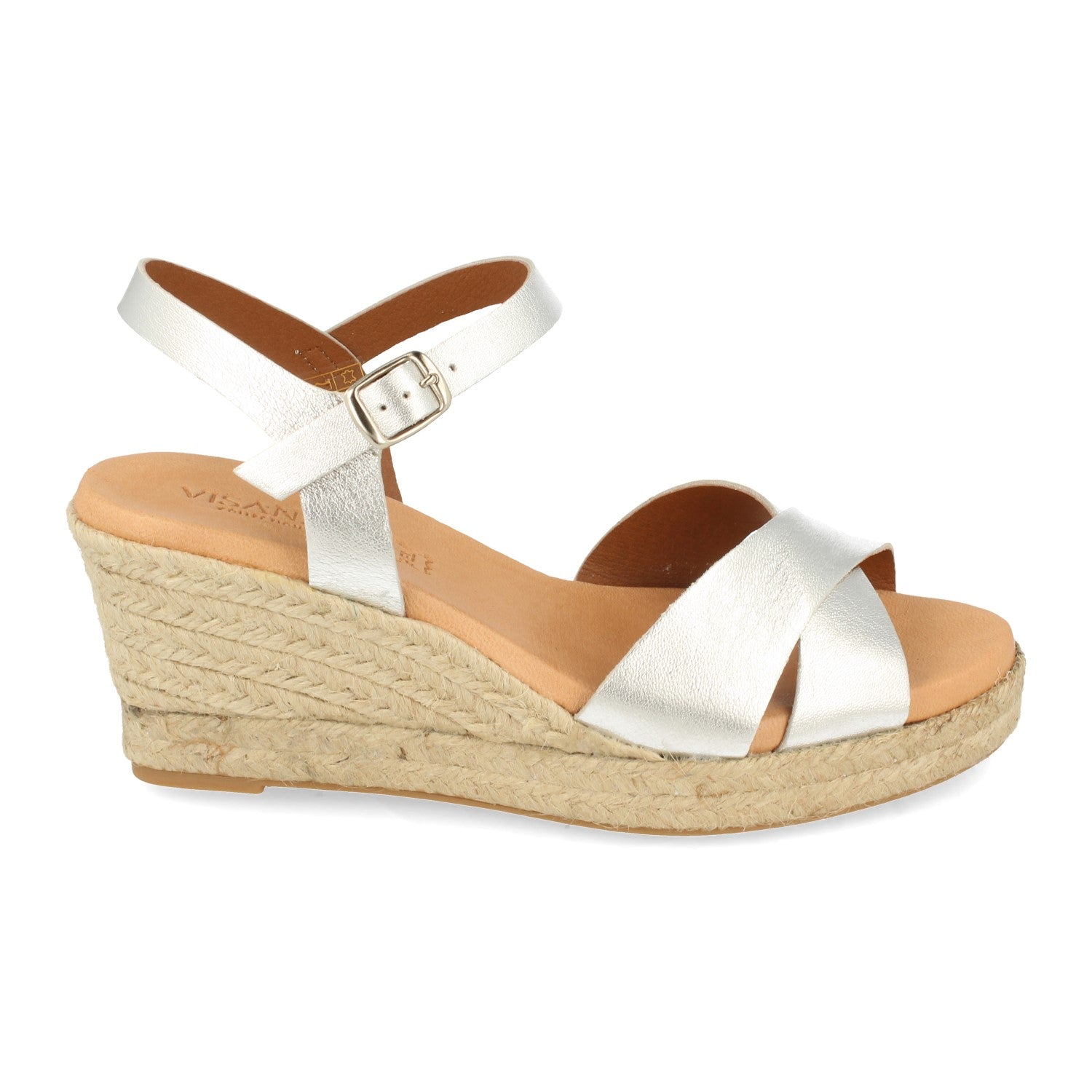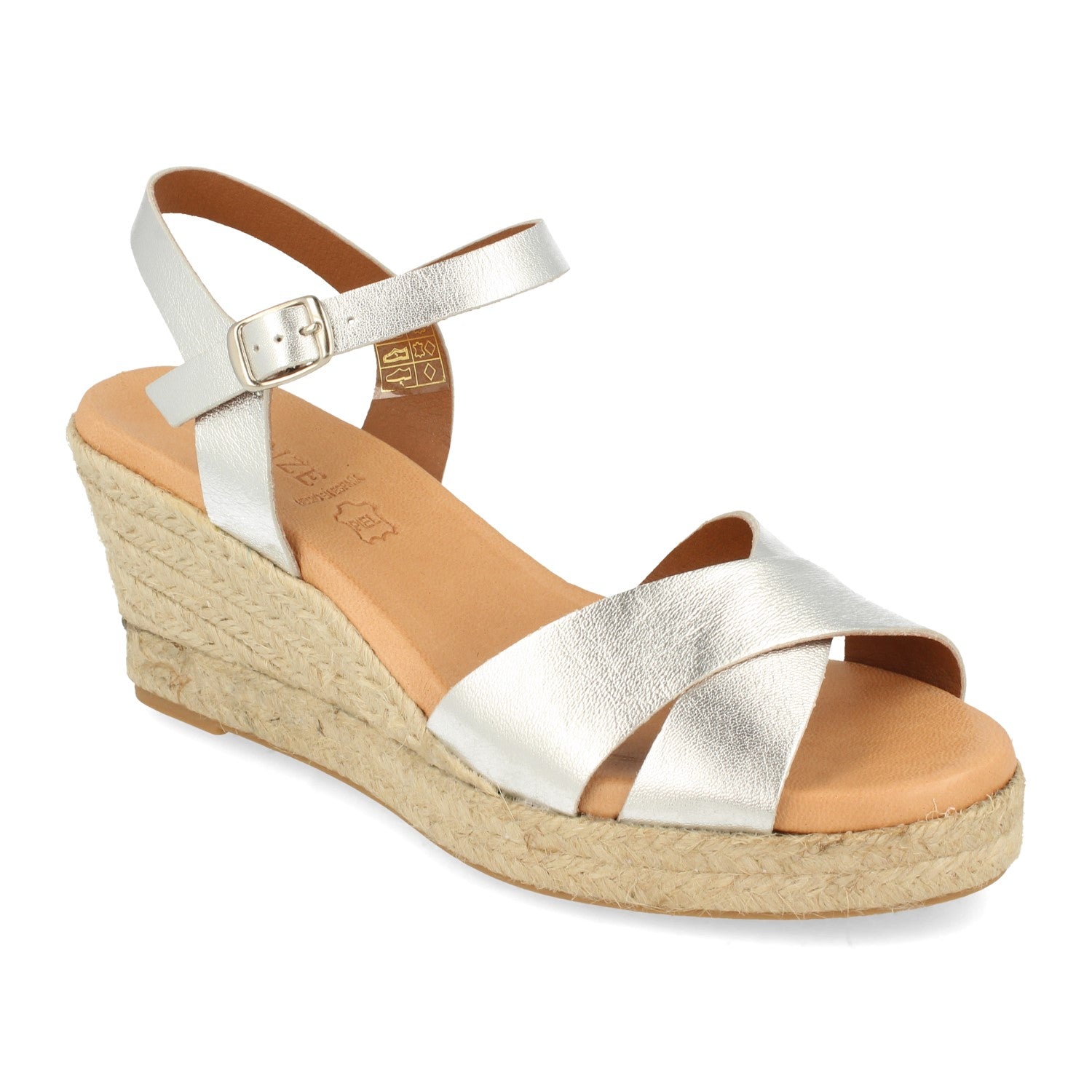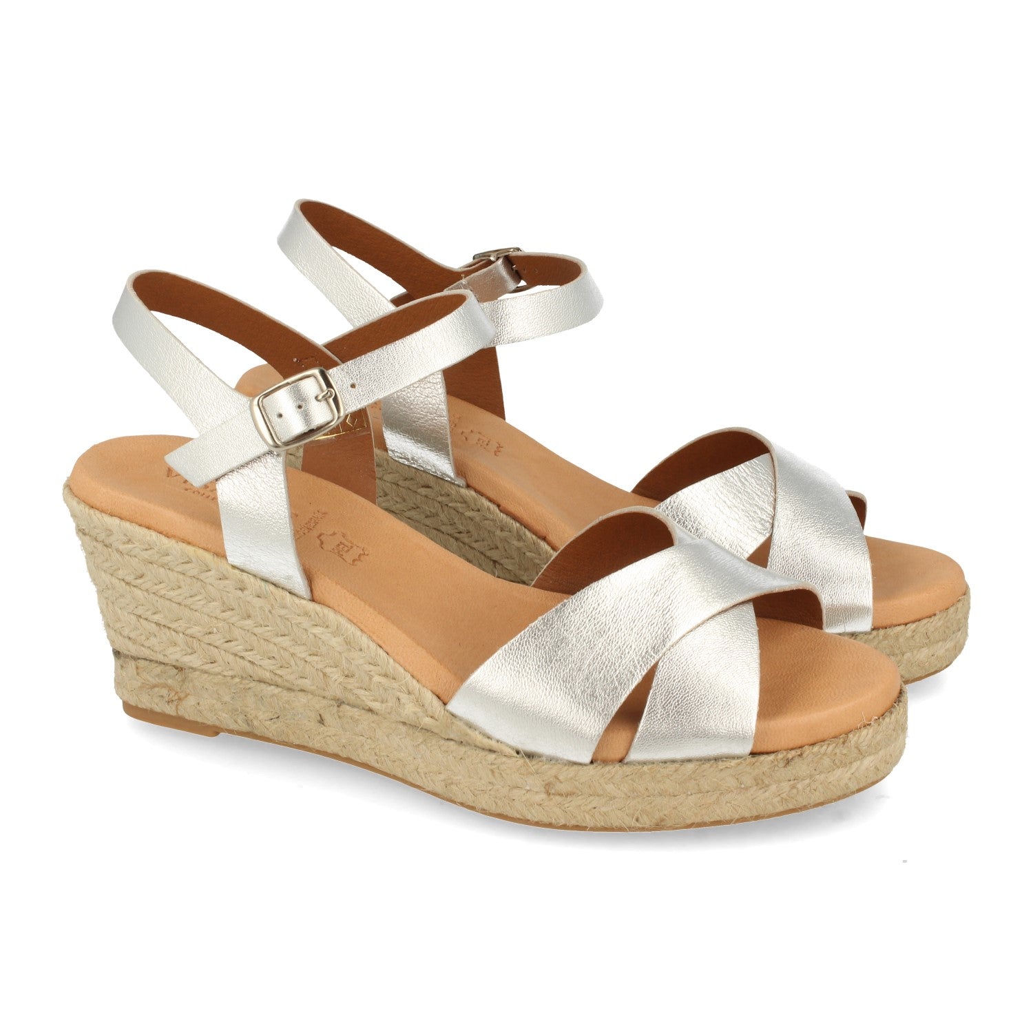 Sandalia de Cuña para Mujer Forrado con Yute Palas Cruzada y Cierre de Hebilla Fabricado con Piel Primavera Verano 2021