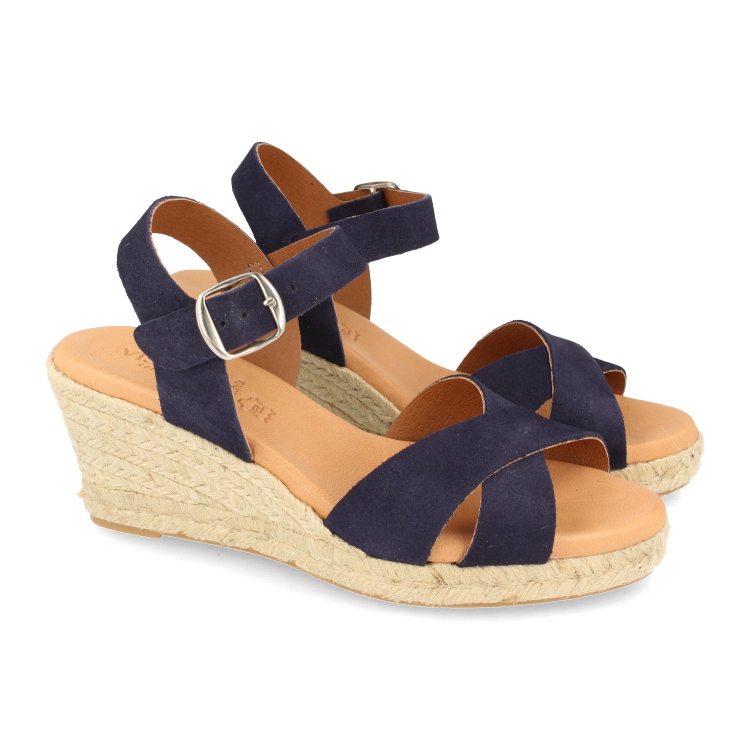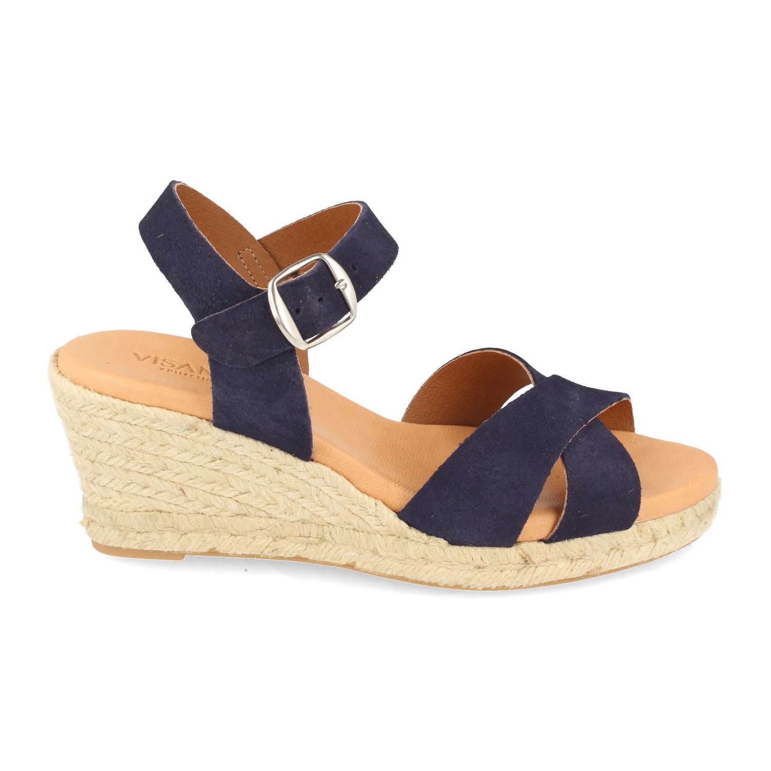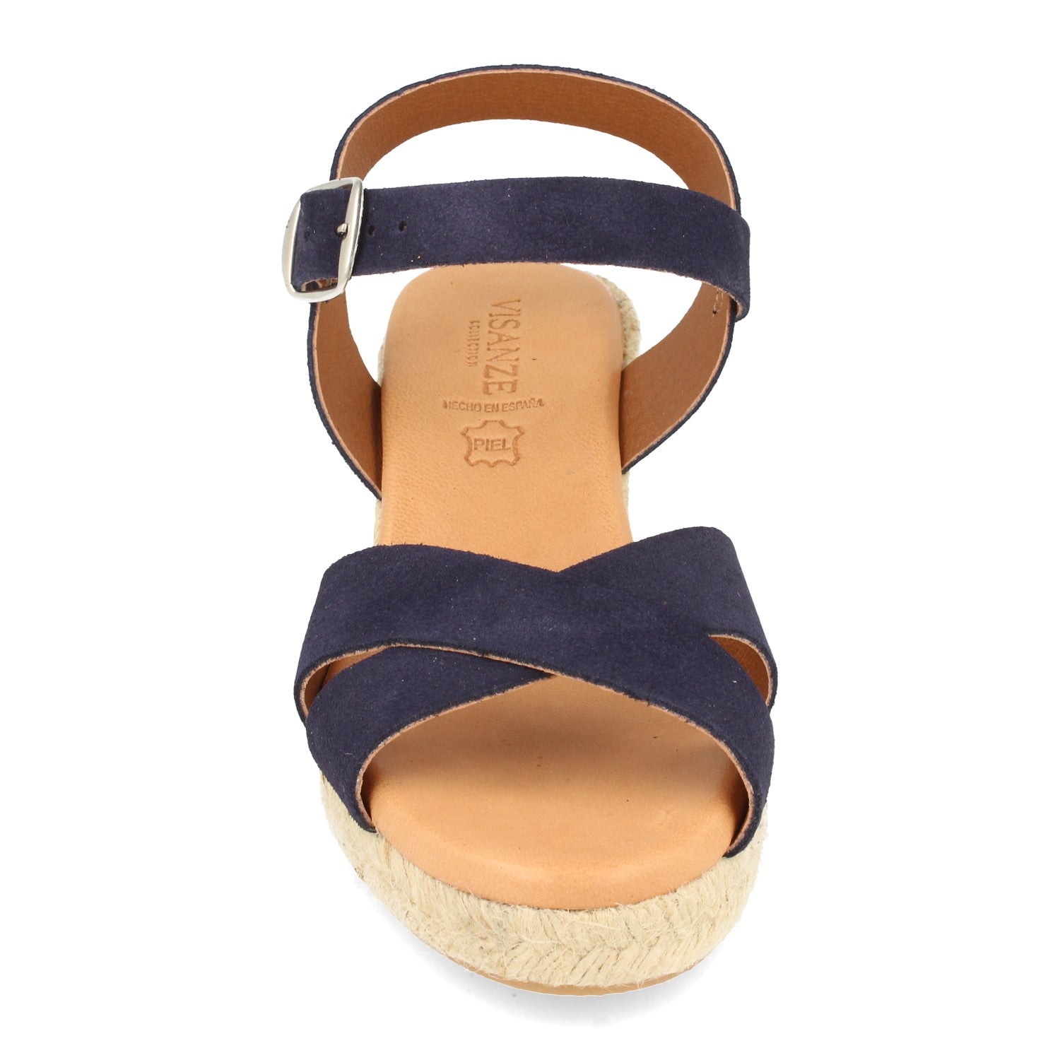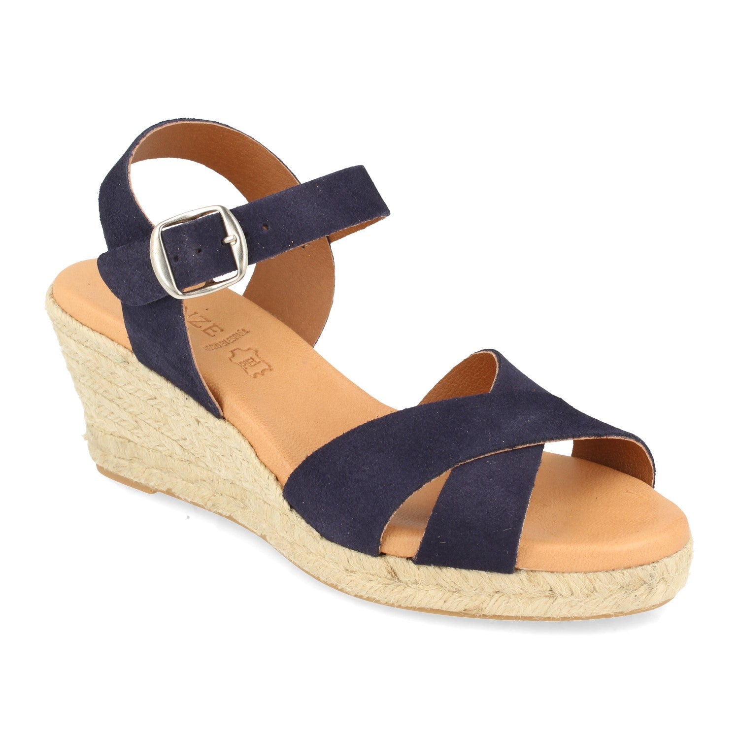 Sandalia de Cuña para Mujer Comodas Forrado con Yute Palas Cruzadas y Cierre de Hebilla Fabricado con Piel Primavera Verano 2021