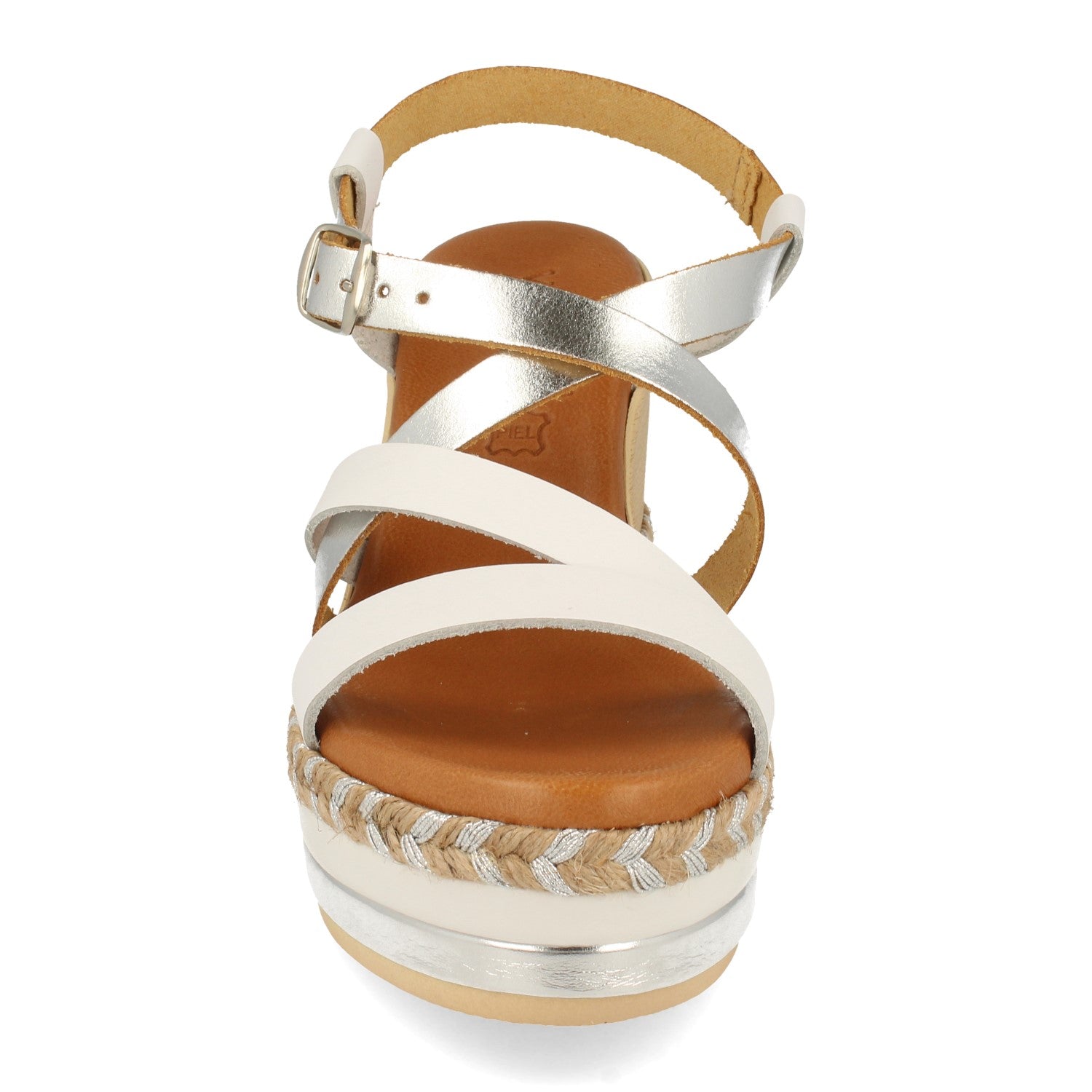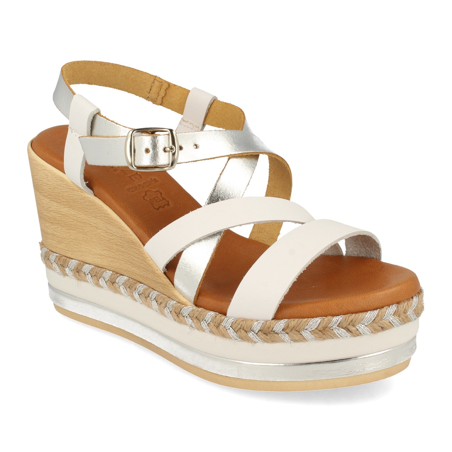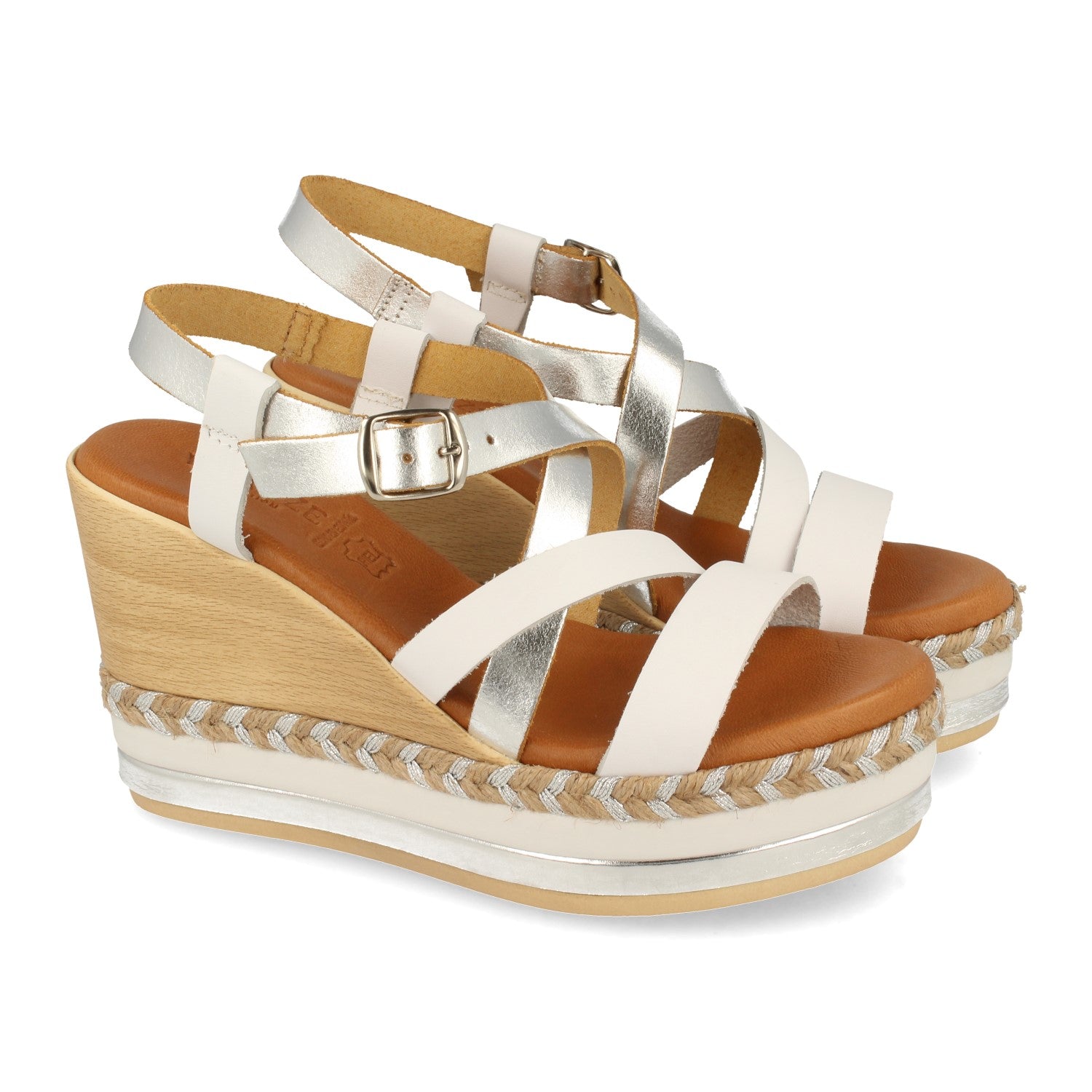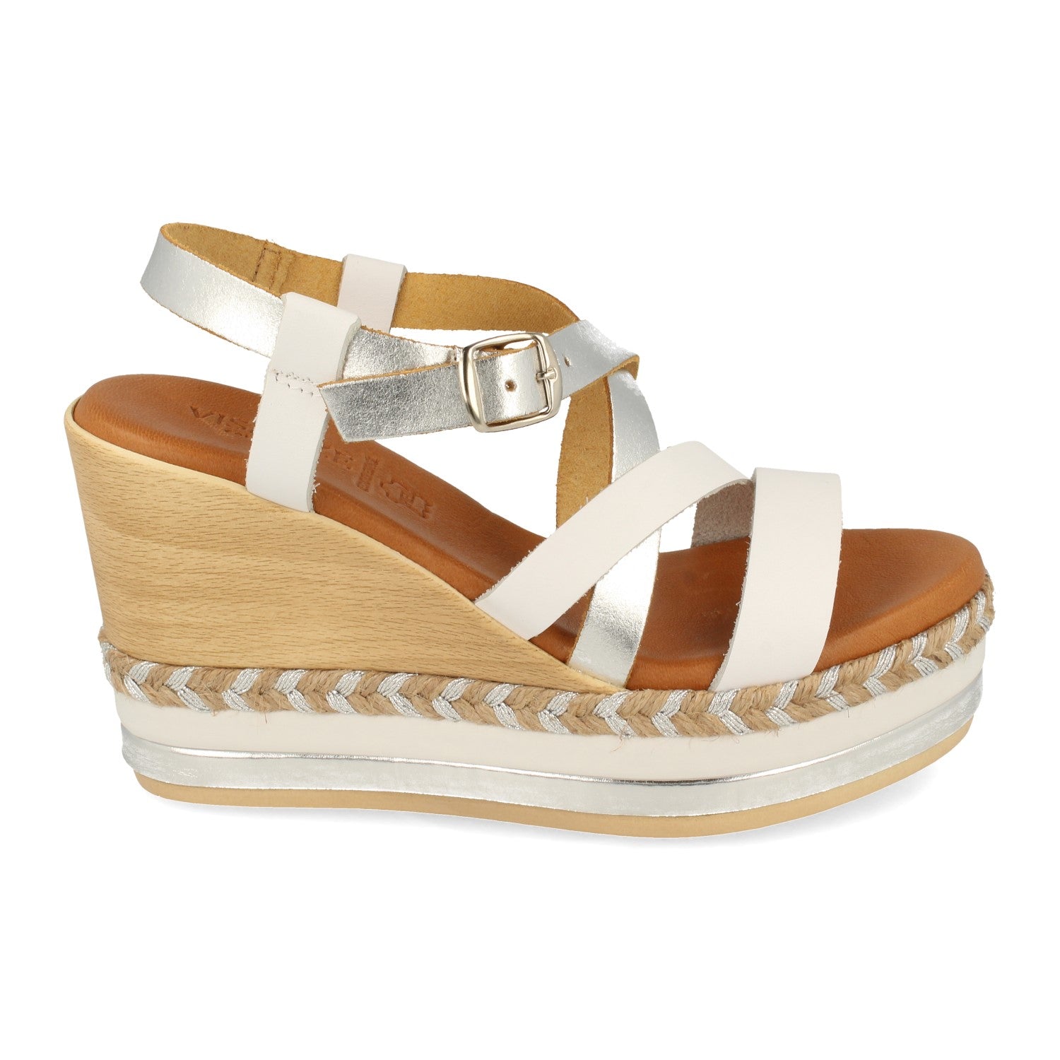 Sandalia de Cuña para Mujer Comodas Forrado Multicolor Palas Cruzadas y Cierre de Hebilla Fabricado con Piel Primavera Verano 2021