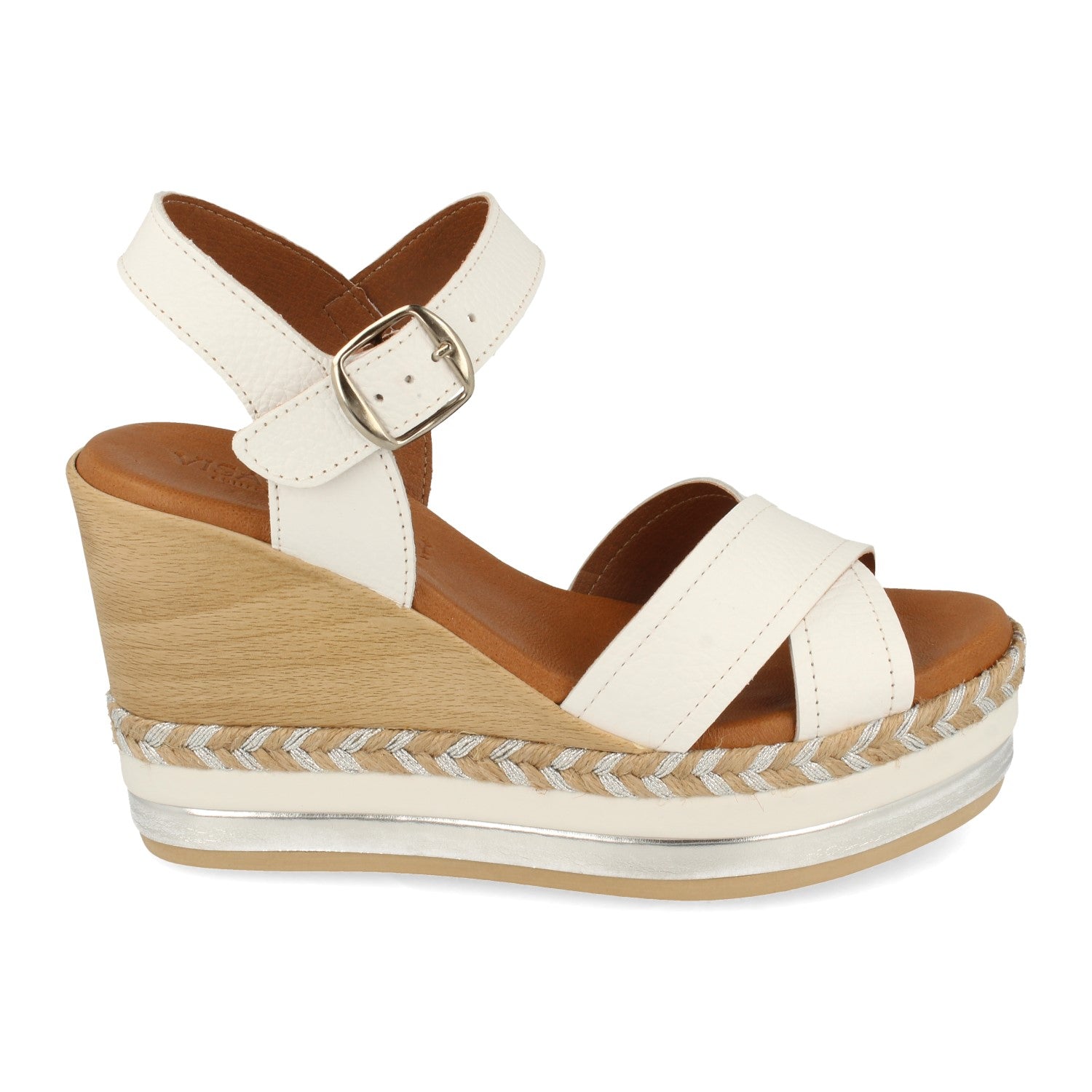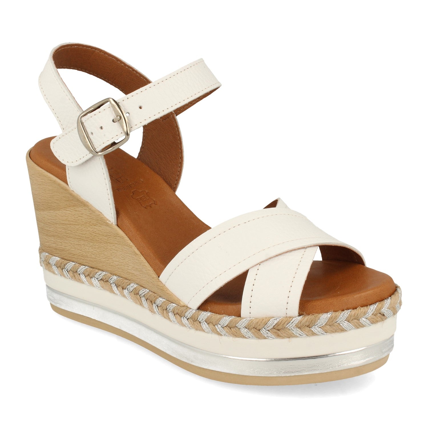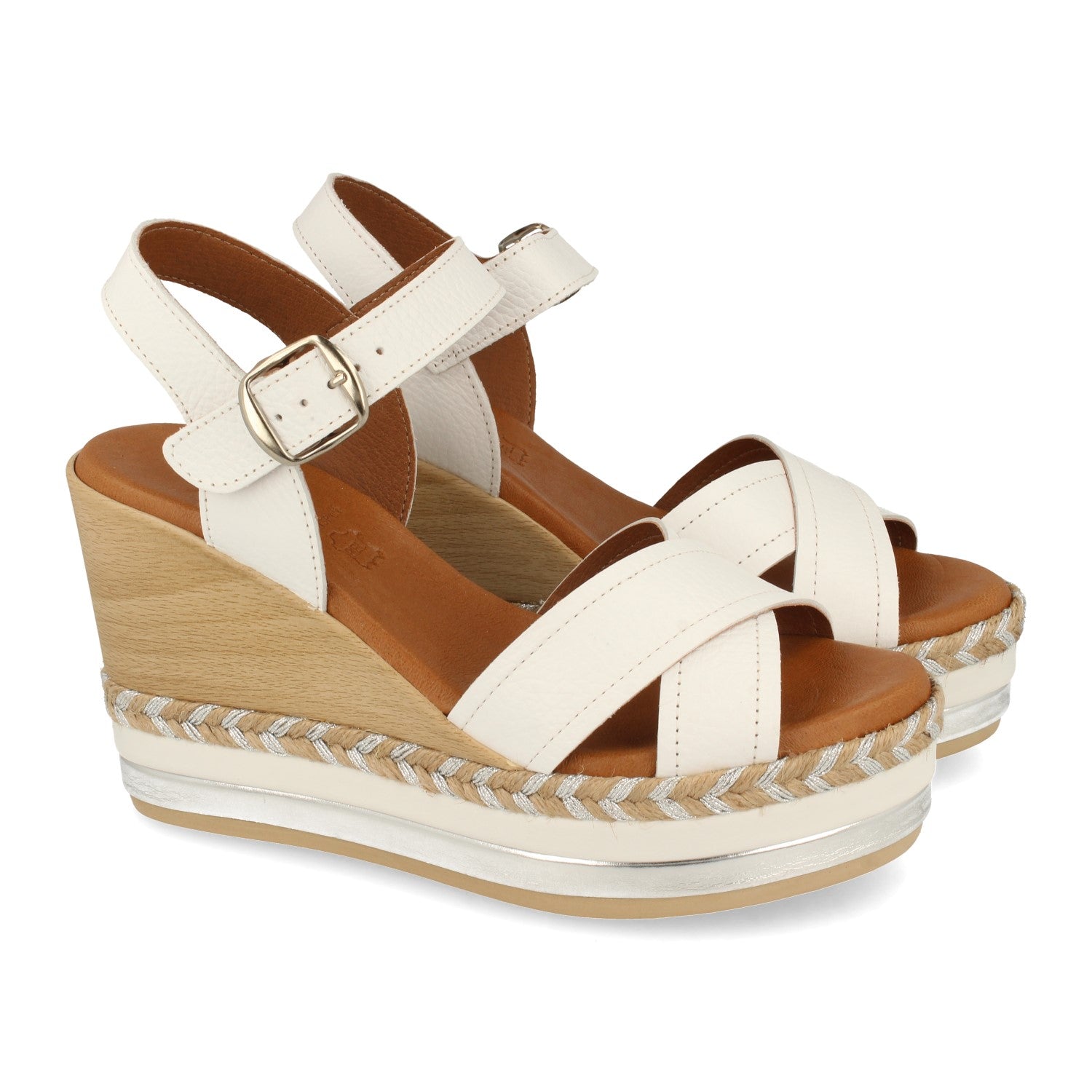 Sandalia de Cuña para Mujer Comodas Forrado Multicolor Palas Cruzadas y Cierre de Hebilla Fabricado con Piel Primavera Verano 2021
