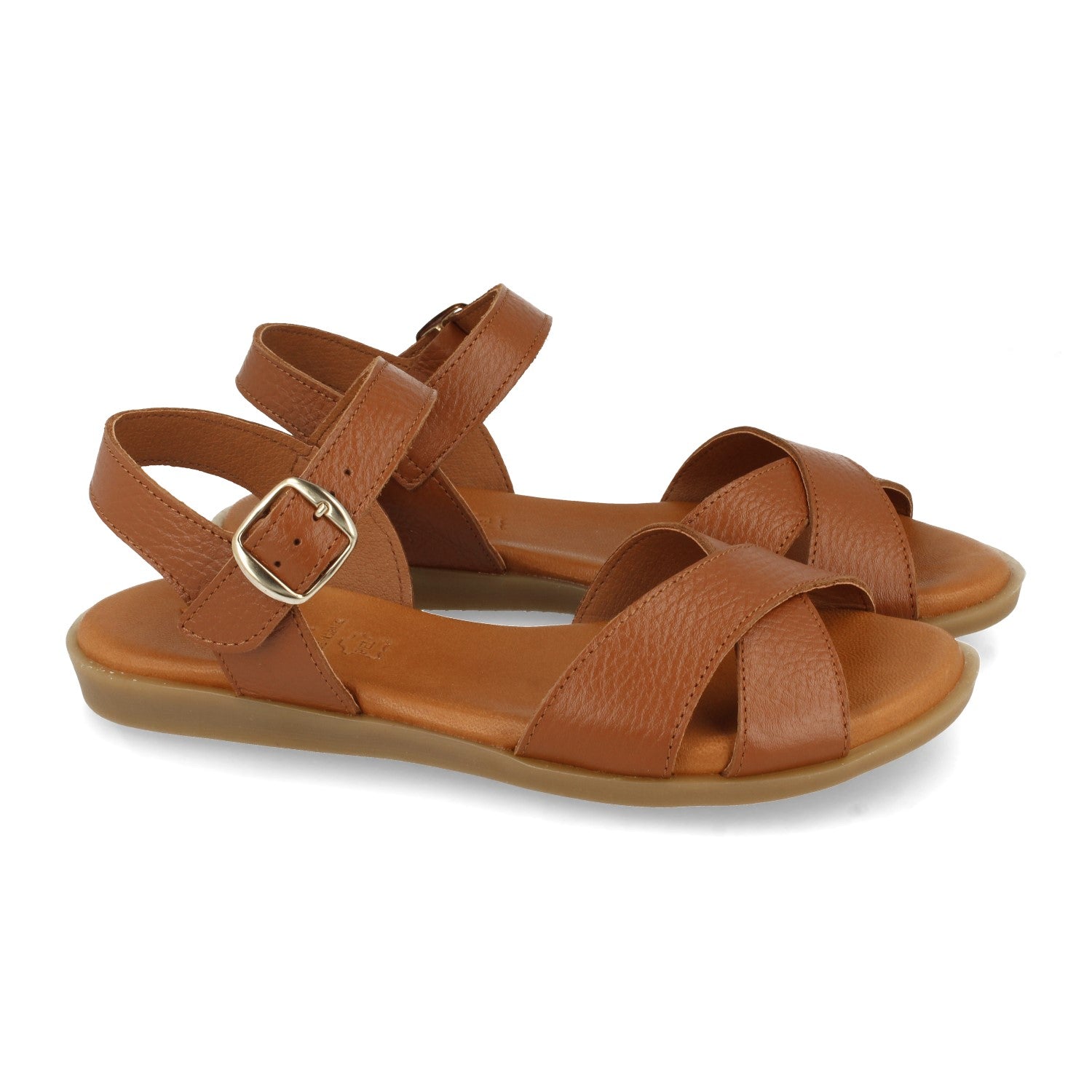 Sandalia de Plana para Mujer Comodas con Palas Cruzadas y Cierre de Hebilla Fabricado con Piel Primavera Verano 2021