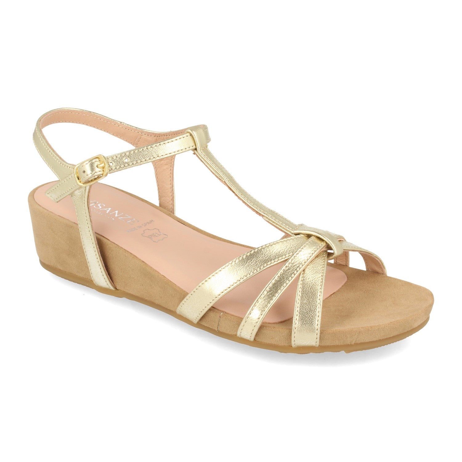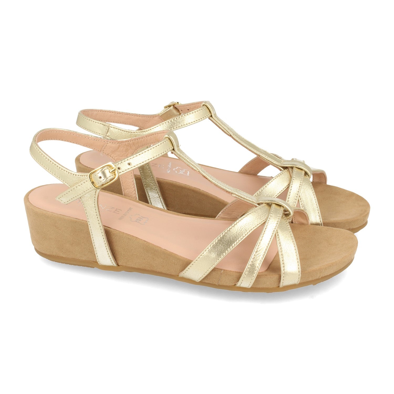 Sandalia de Cuña para Mujer Comodas con Triple Pala Fina y Cierre de Hebilla Fabricado con Piel Primavera Verano 2021