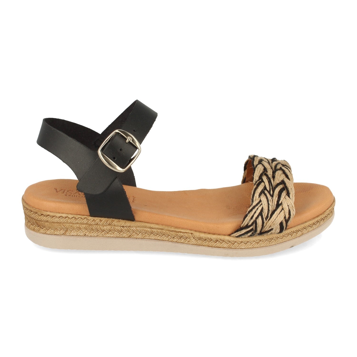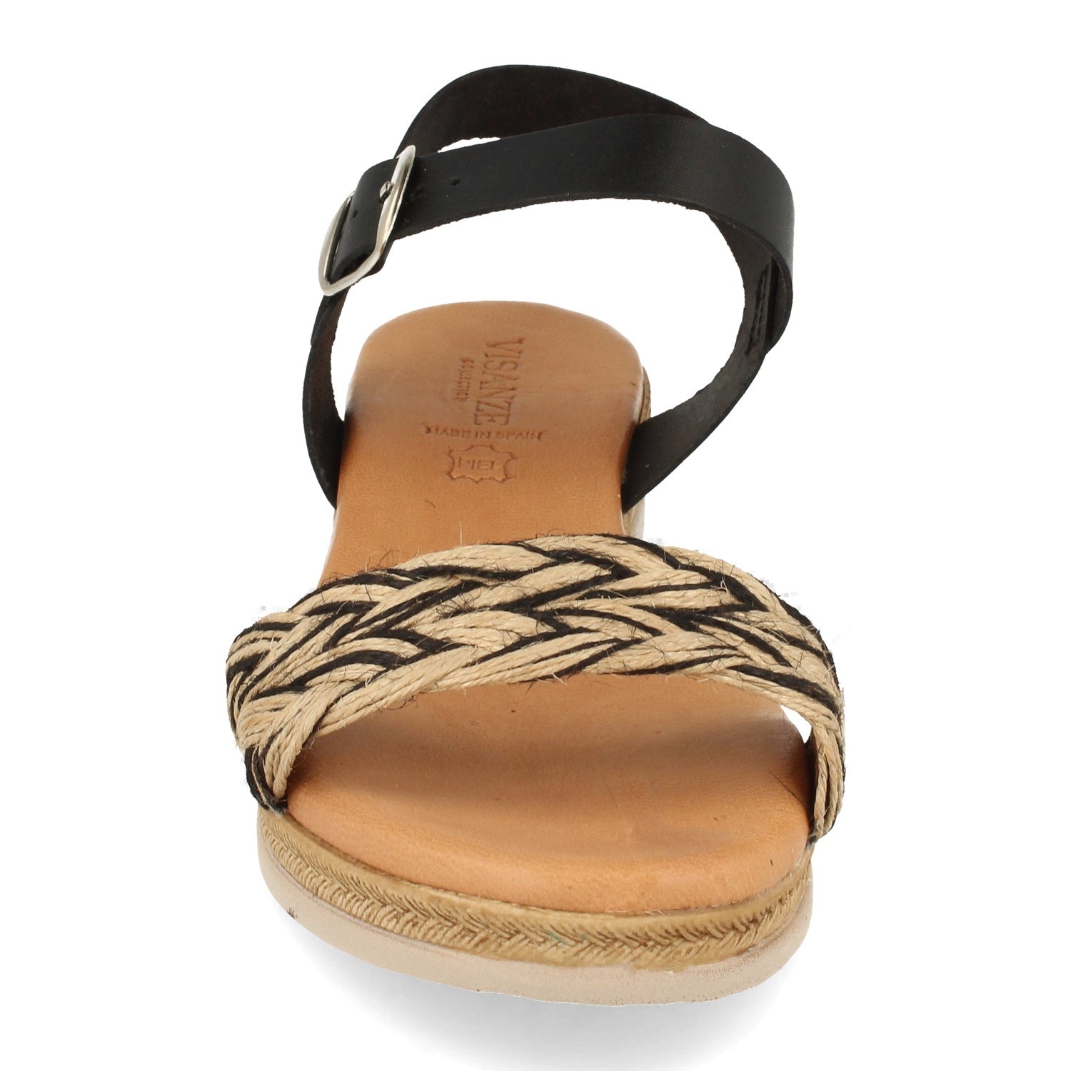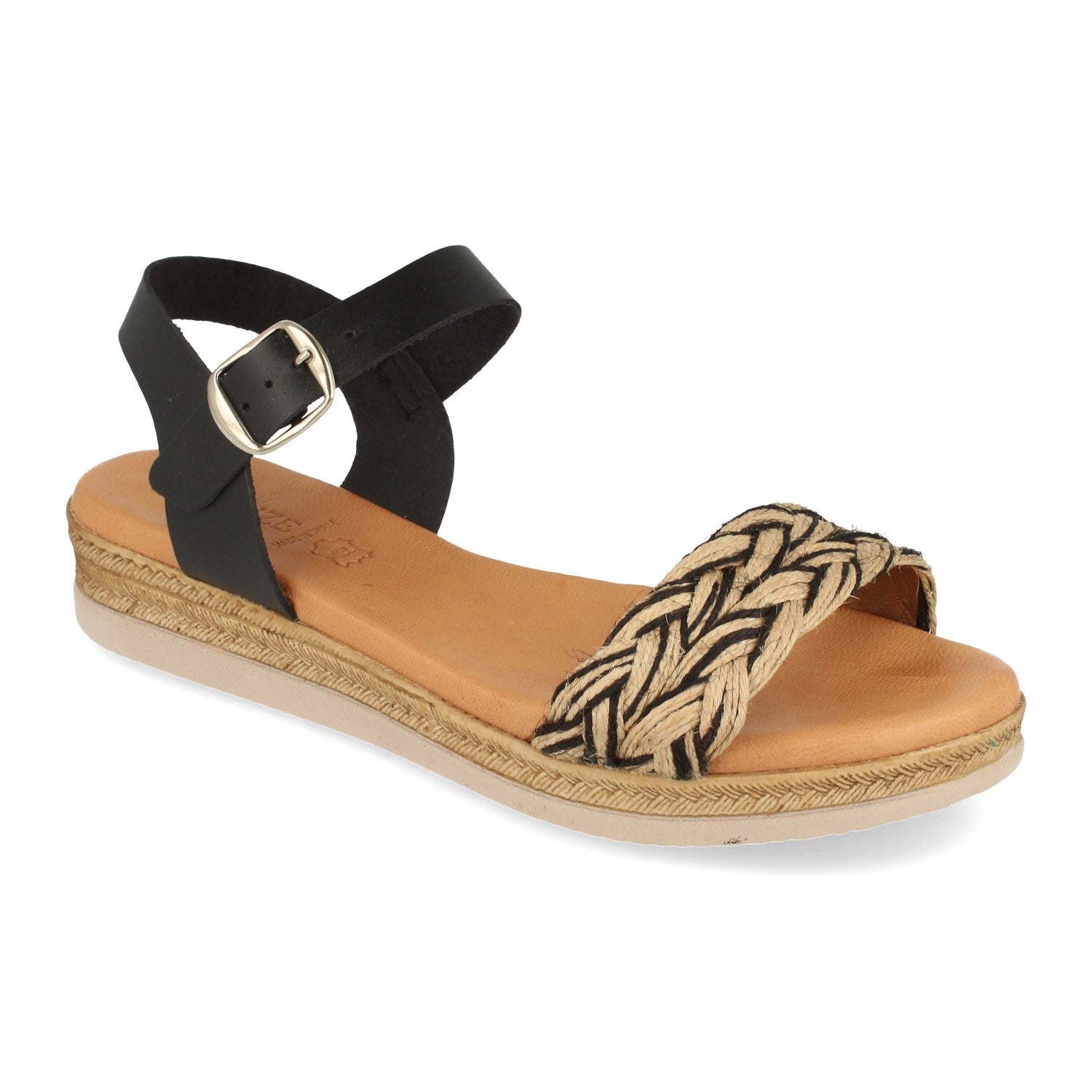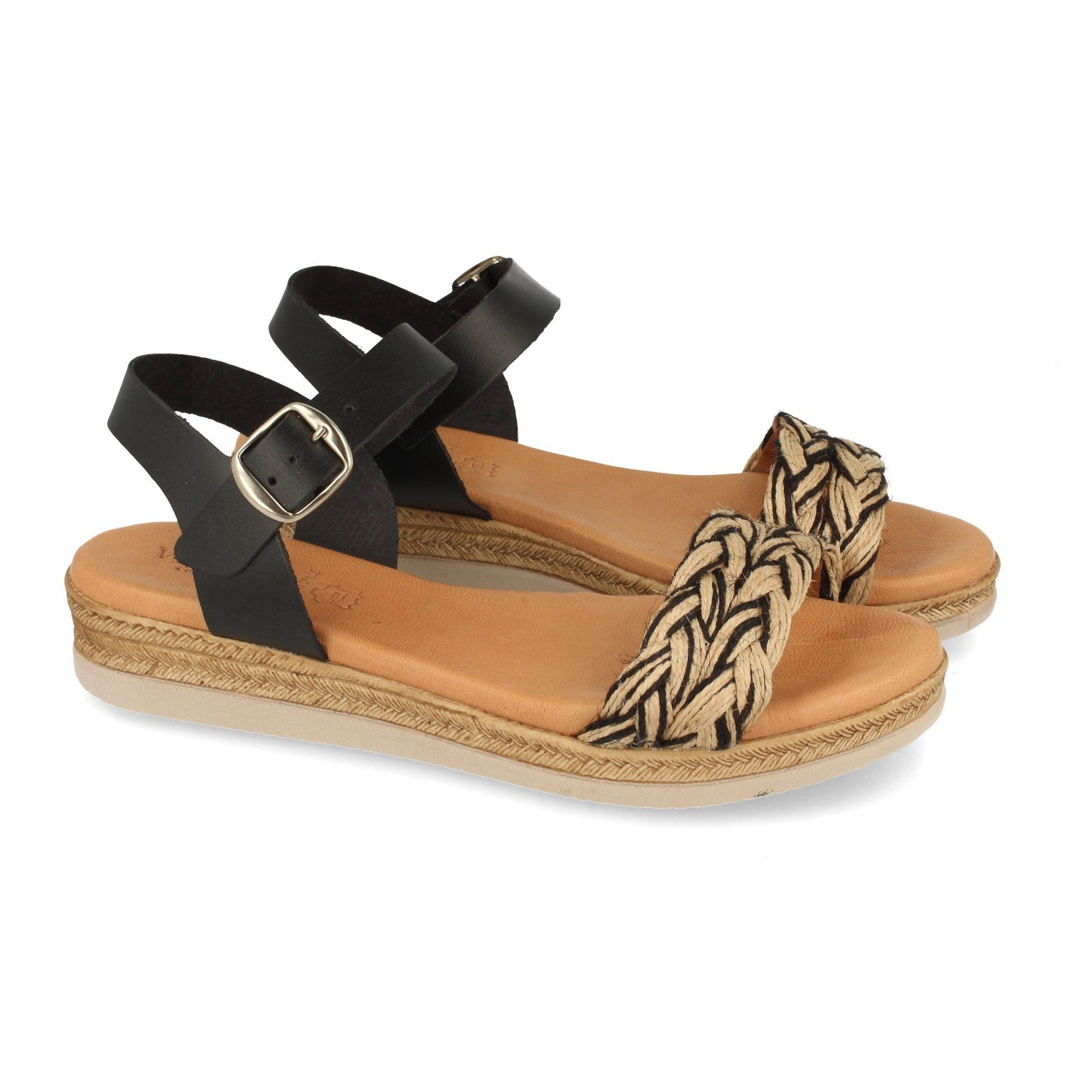 Sandalia Plana para Mujer Comodas Pala de Rafia con Estampado Cierre de Hebilla Fabricado con Piel Primavera Verano 2021