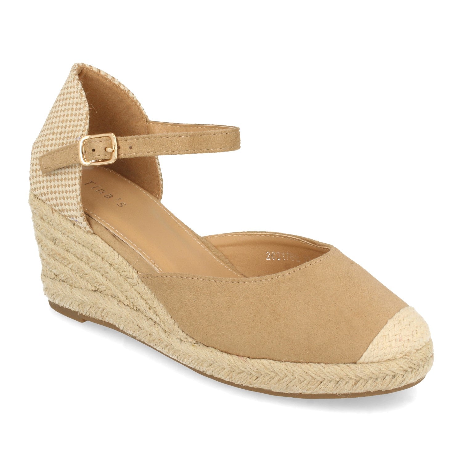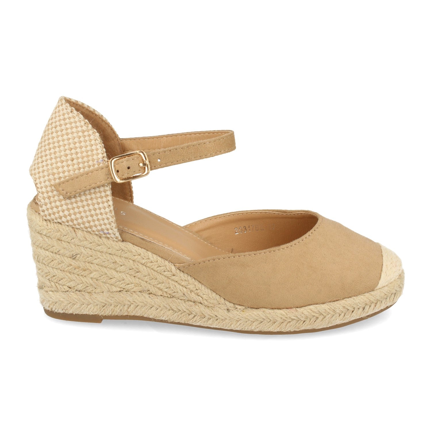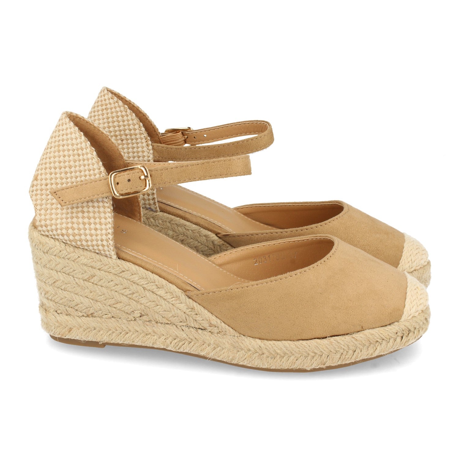 Sandalia de Cuña para Mujer Forrado de Yute Estilo Valenciana con Pala Cerrada y Cierre de Hebilla Primavera Verano 2021