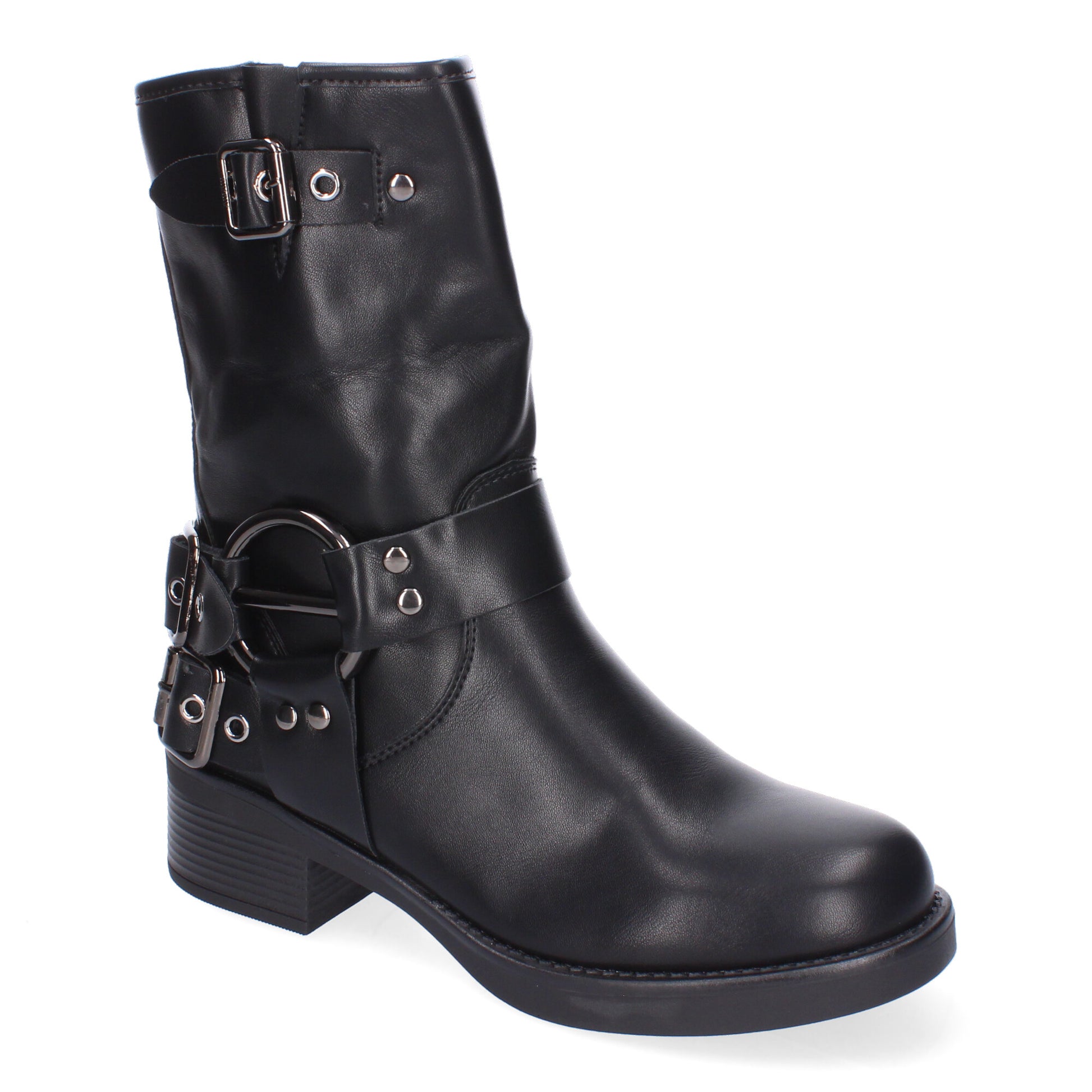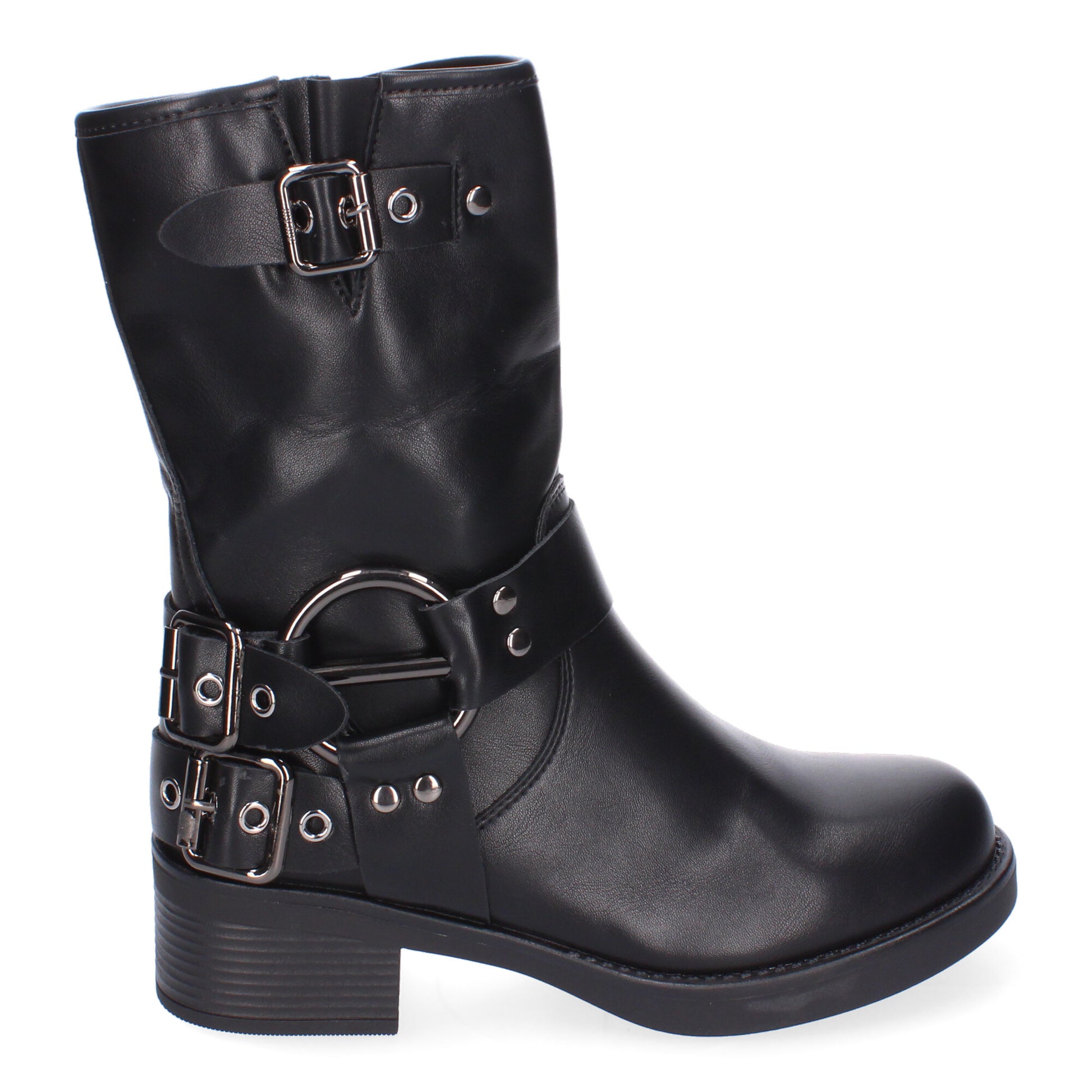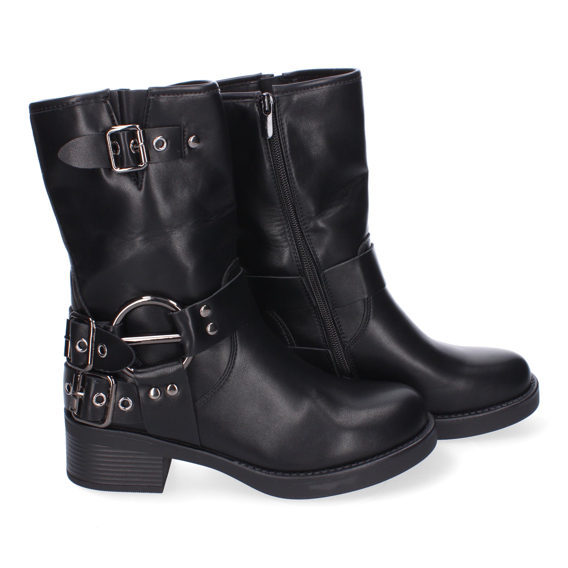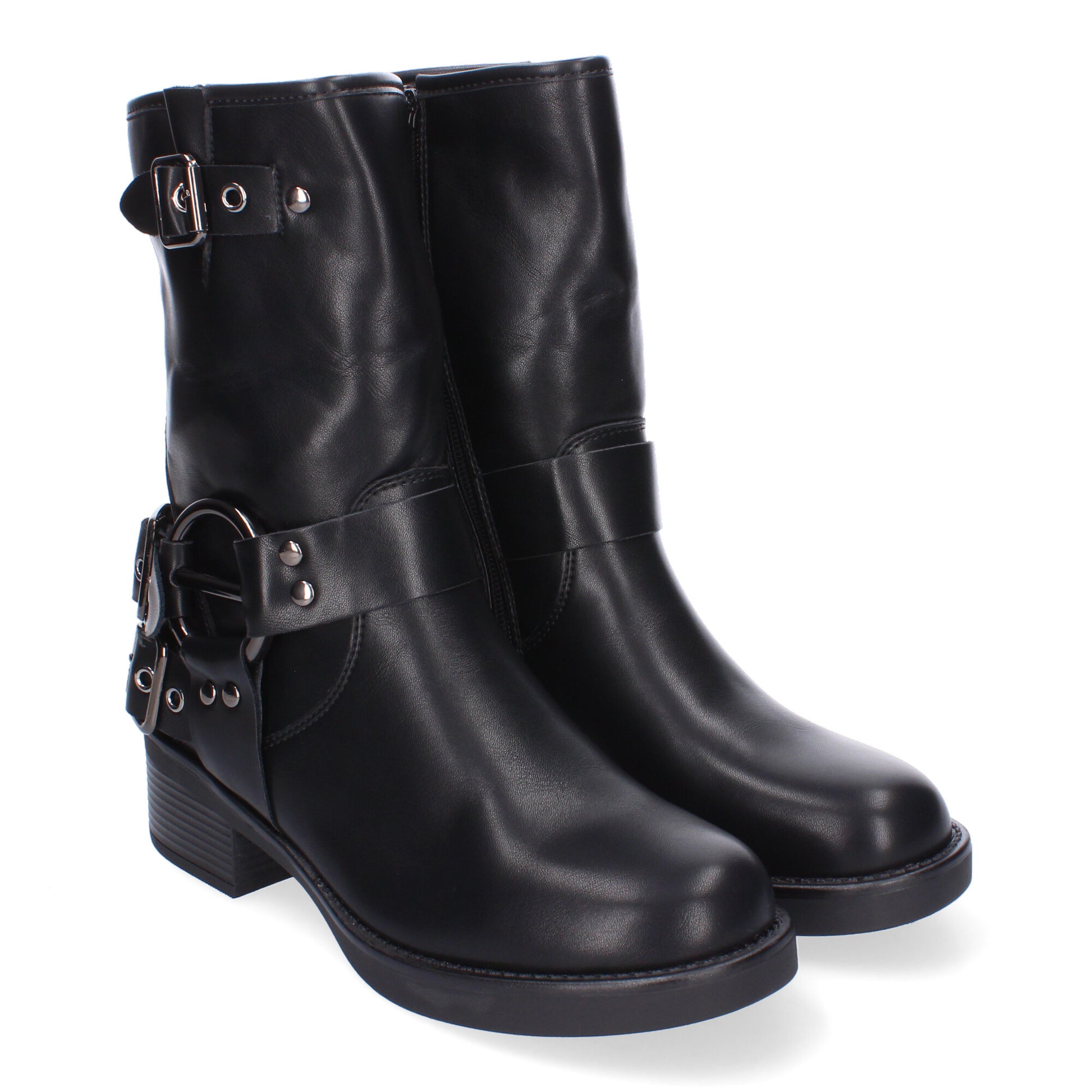 Botines Moteros para Mujer Comodos y Elegantes Detalles de Hebillas Punta Redonda Cremallera Lateral Ideales para Otoño-Invierno.