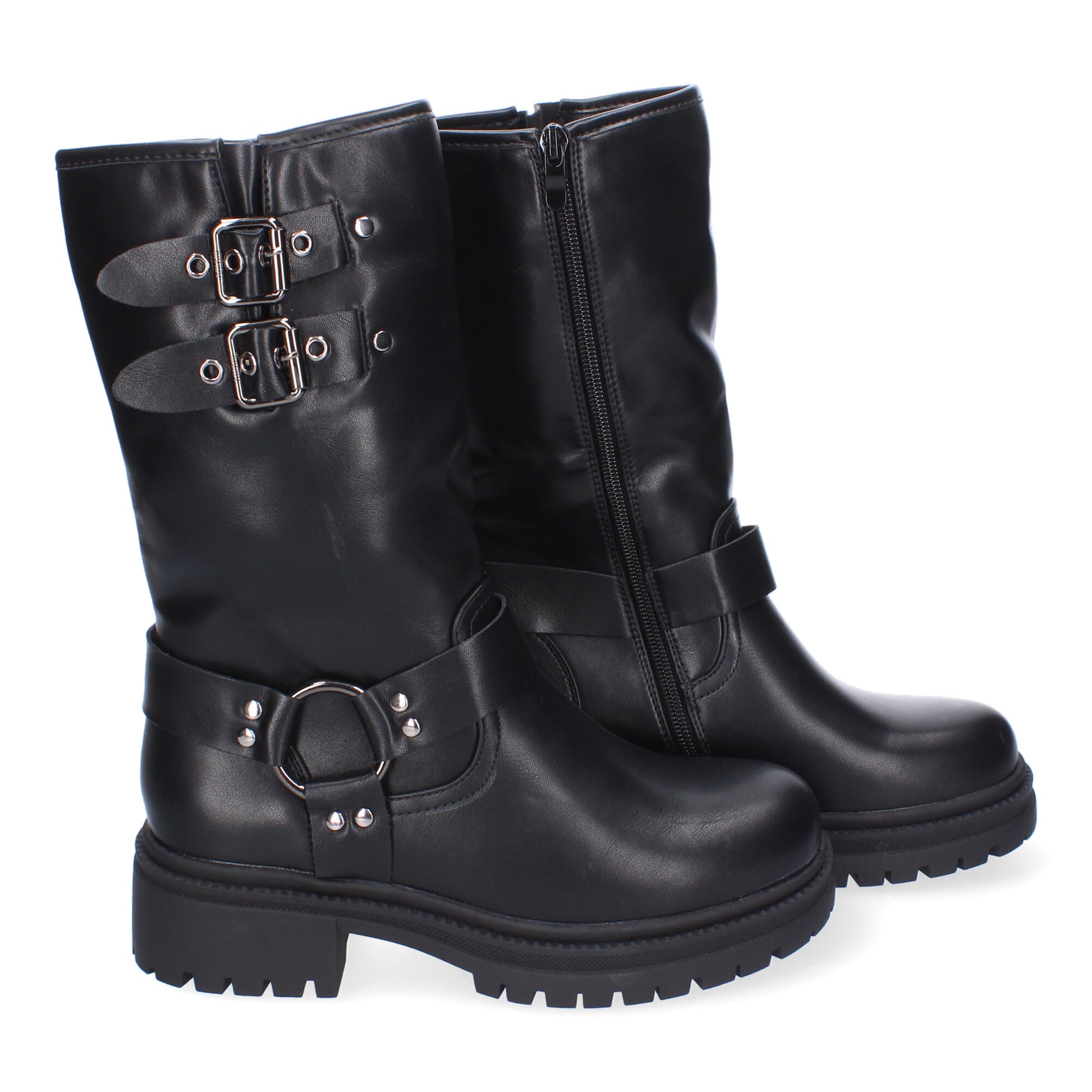 Botas de Tacón para Mujer Estilo Motero Comodos y Elegantes Detalles de Hebillas Metálicas Ideales para Otoño-Invierno.