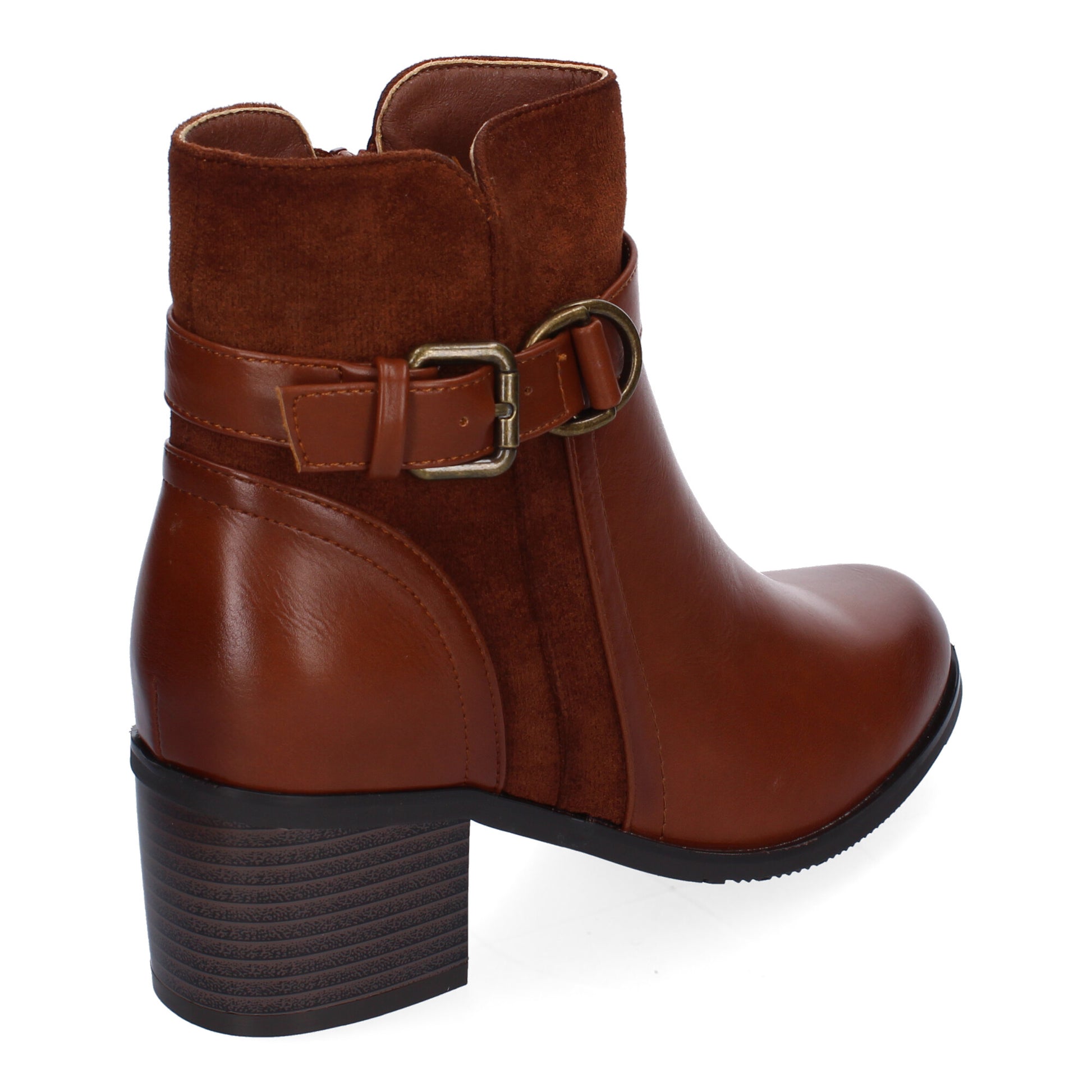 Botines de Tacón para Mujer Comodos y Elegantes con Detalle de Hebilla Punta Redonda y Cierre de Cremallera Lateral Ideales para Otoño-Invierno.