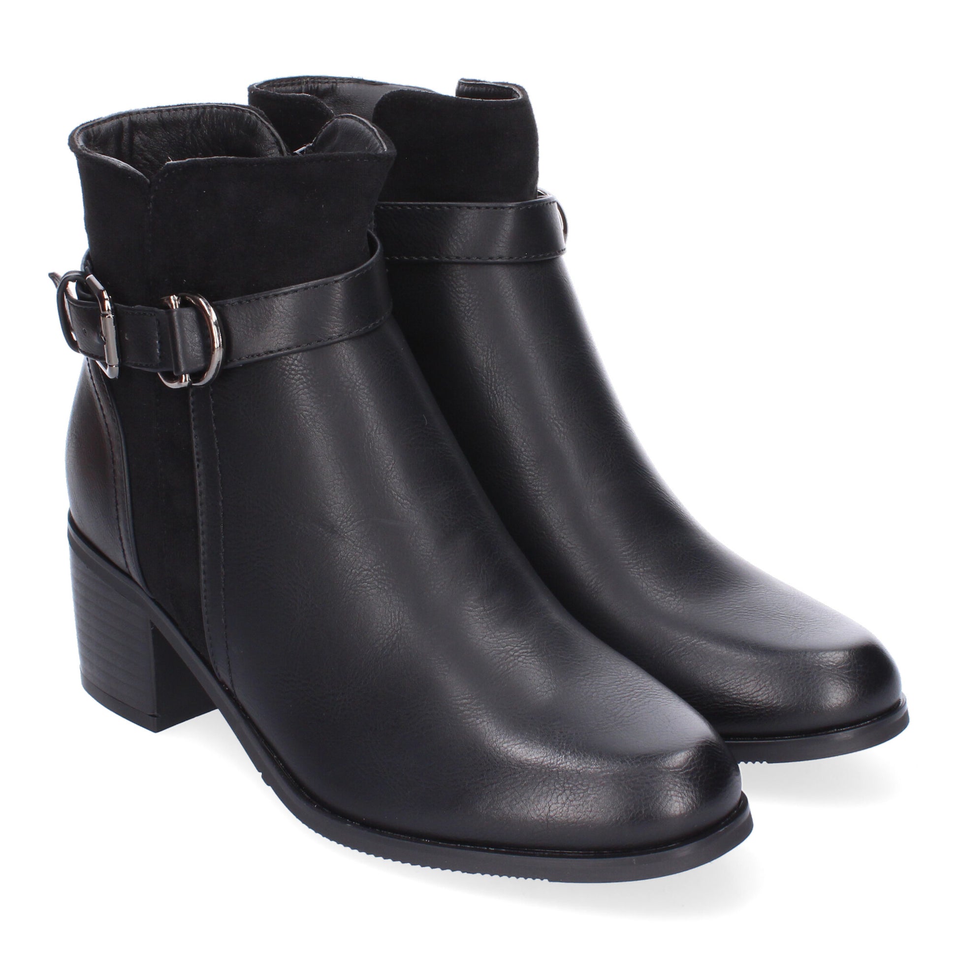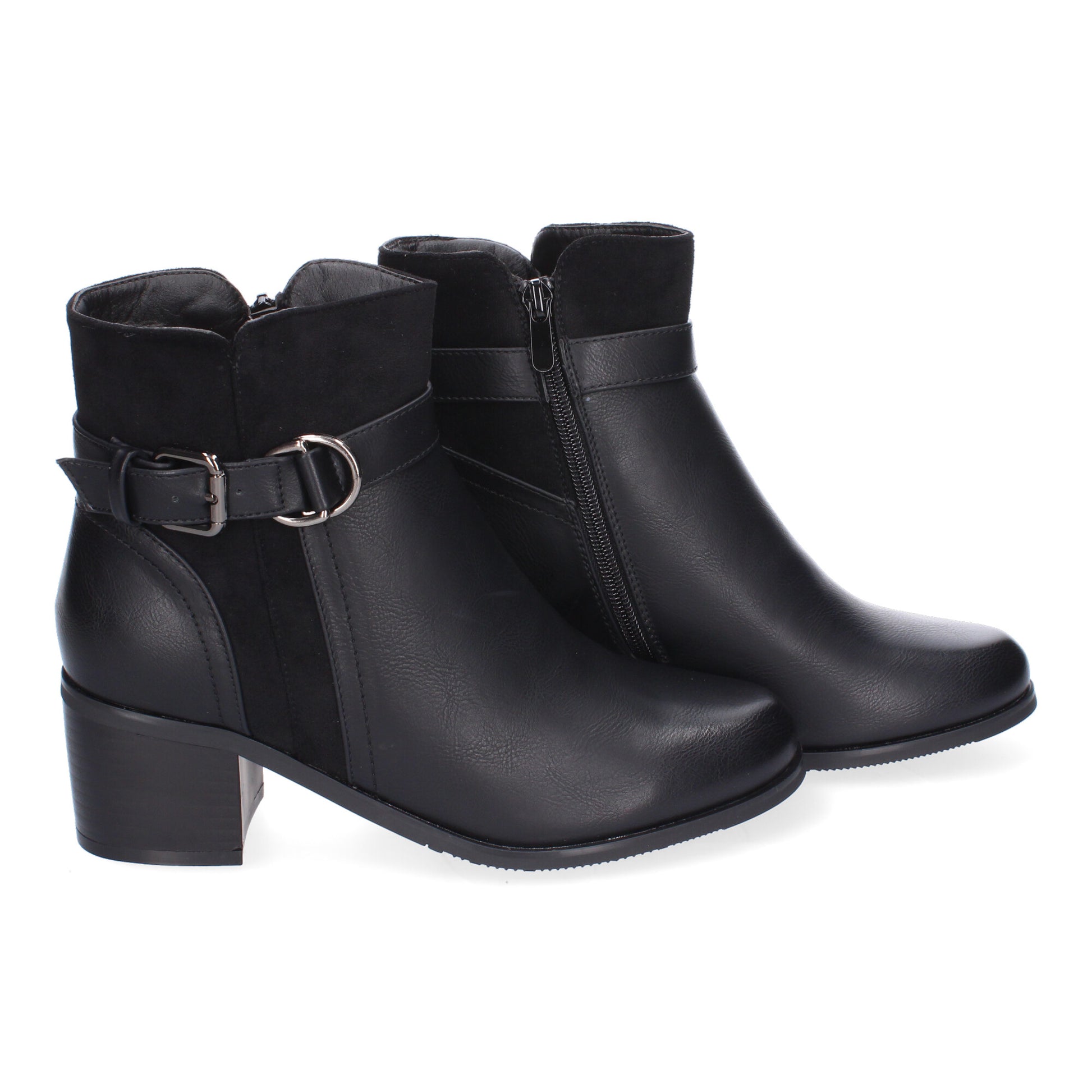 Botines de Tacón para Mujer Comodos y Elegantes con Detalle de Hebilla Punta Redonda y Cierre de Cremallera Lateral Ideales para Otoño-Invierno.