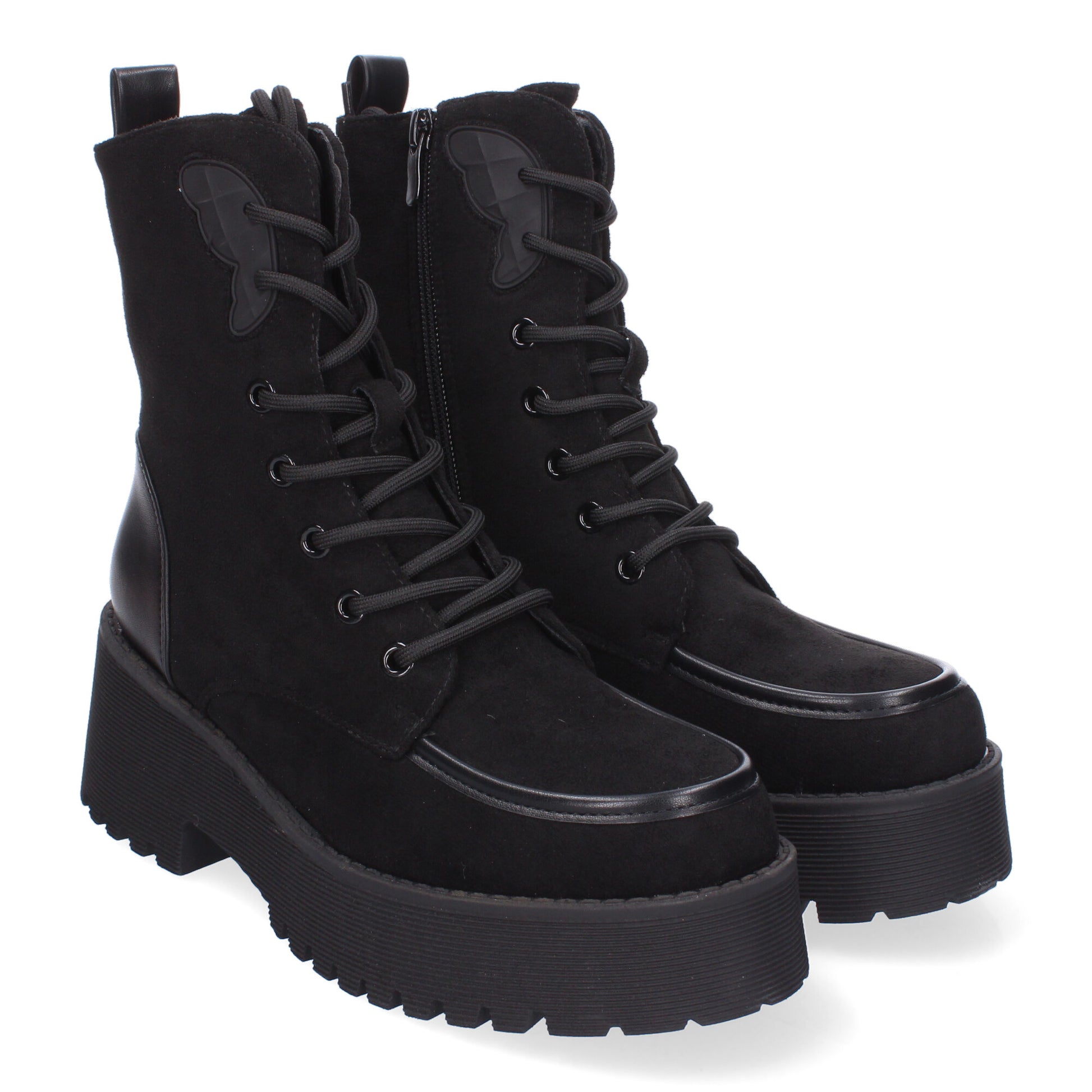 Botines de Tacón para Mujer Comodos y Elegantes con Suela Dentada Punta Redonda Cierre de Cordones y Cremallera Lateral Ideales para Otoño-Invierno.
