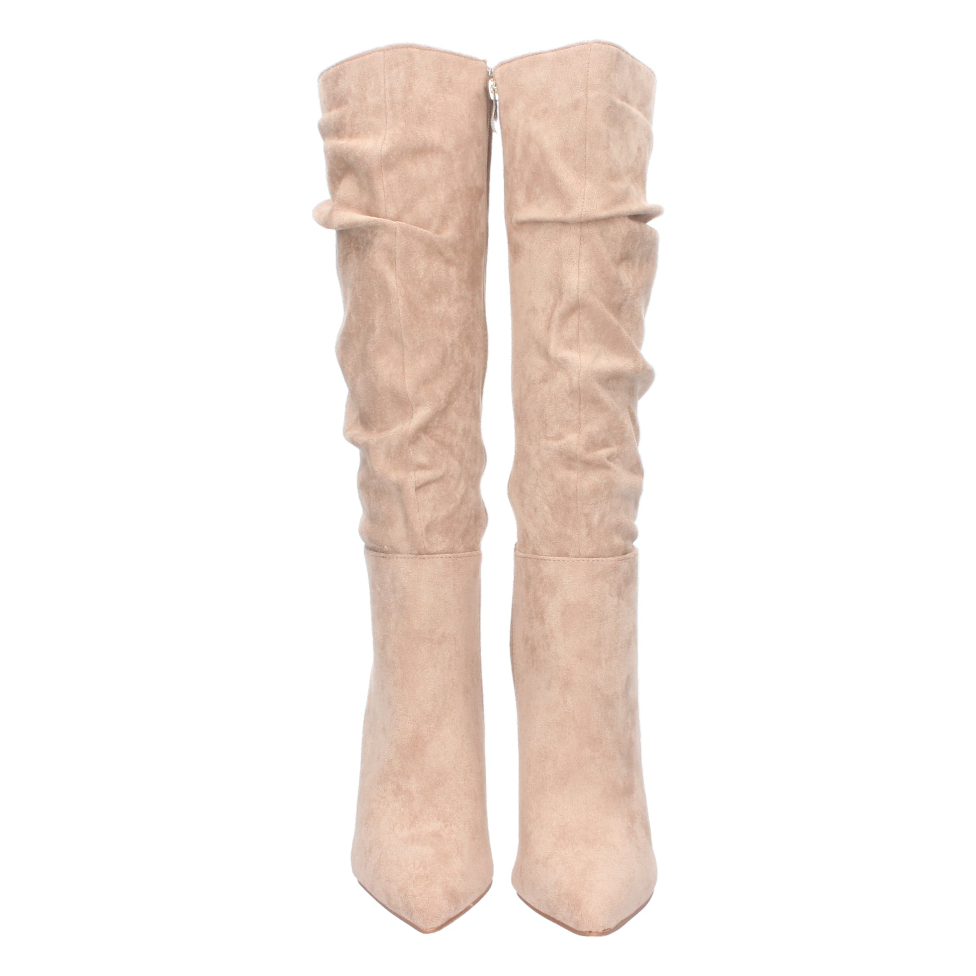 Bota con Tacon Fino para Mujer con Punta Fina Caña Arrugada y Cierre de Cremallera Otoño Invierno 2022