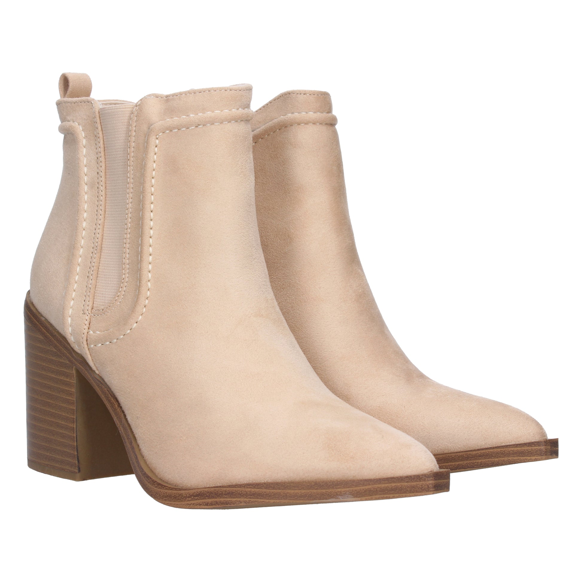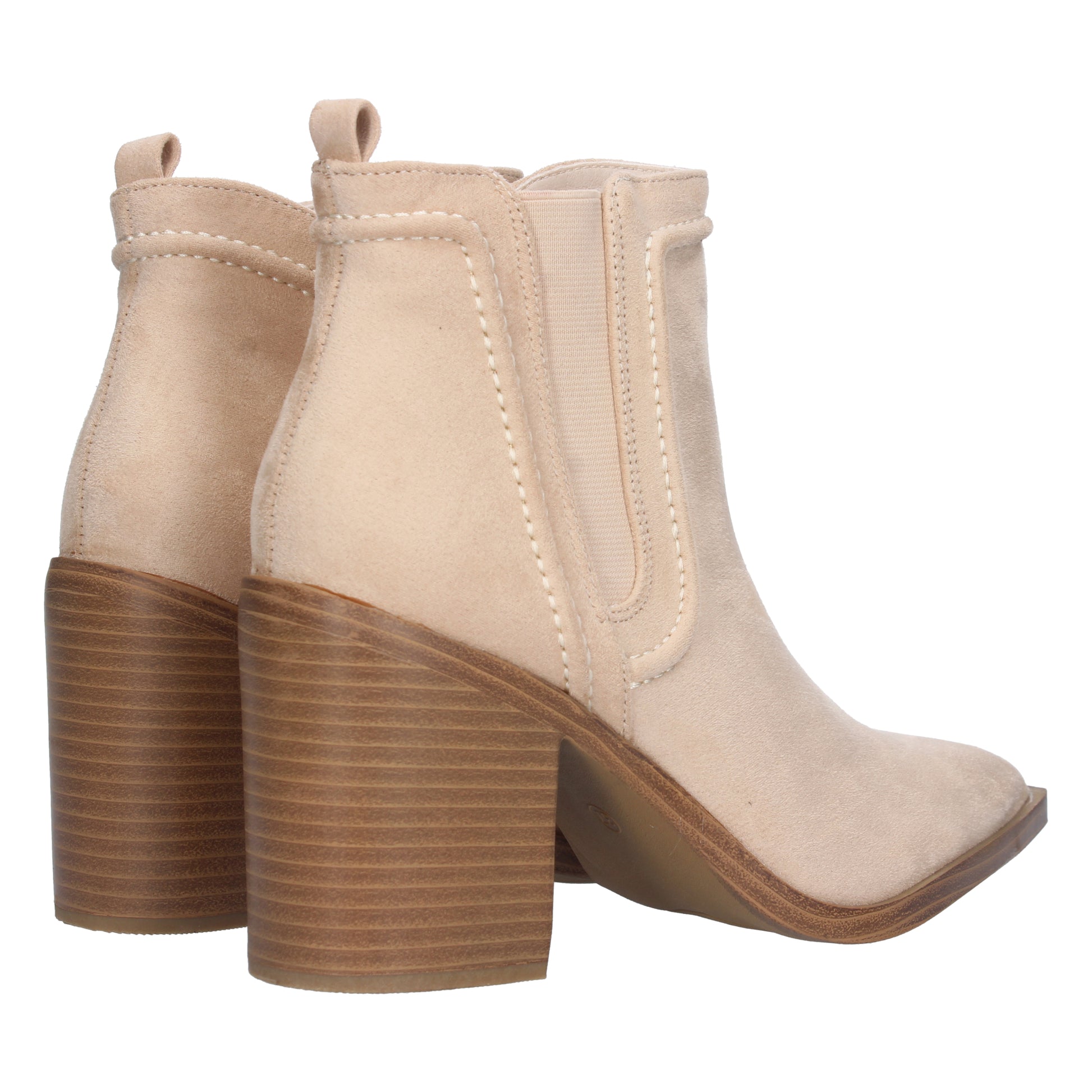 Botin de Tacon Ancho para Mujer Comodo con Estampado Liso material elastico y Cierre de Cremallera.