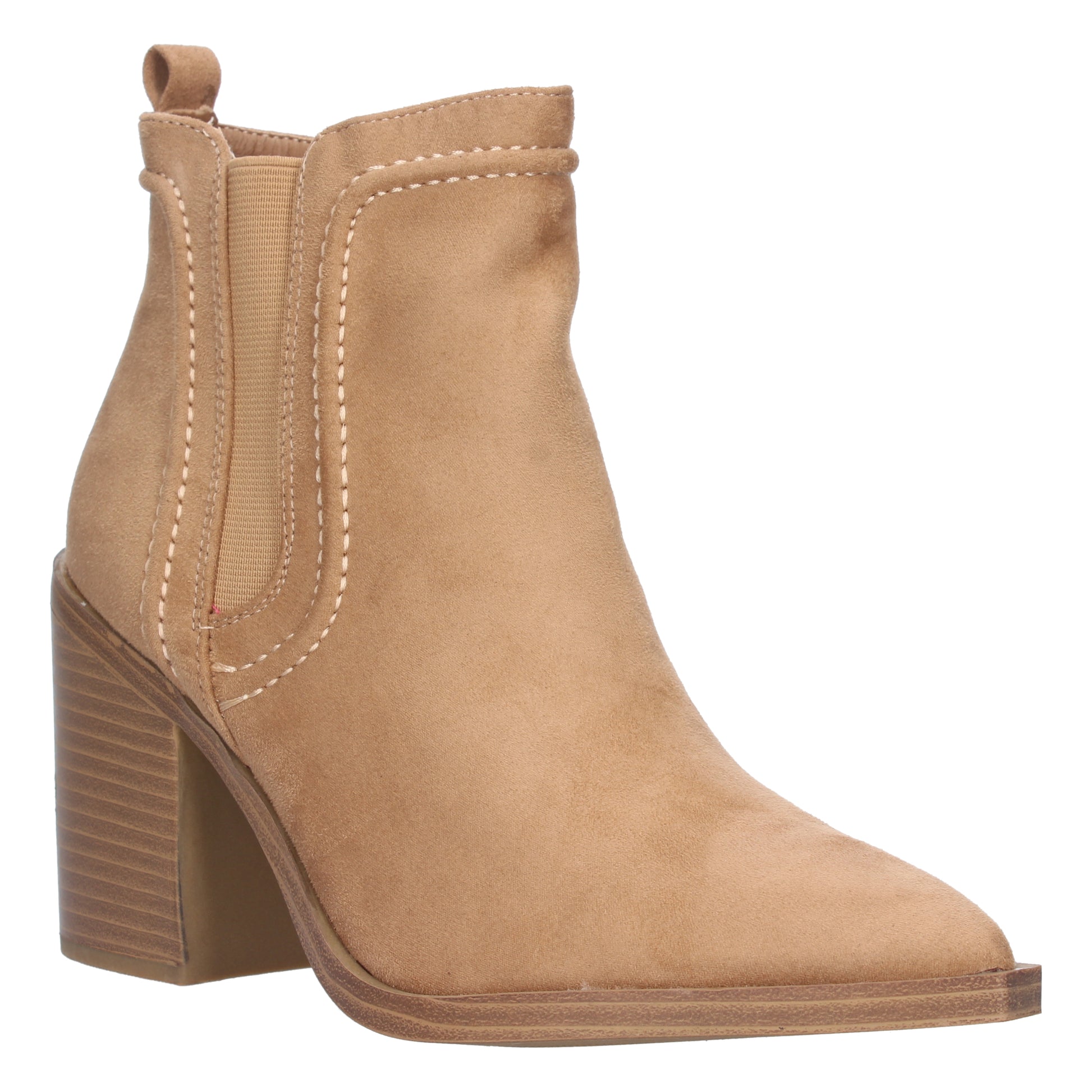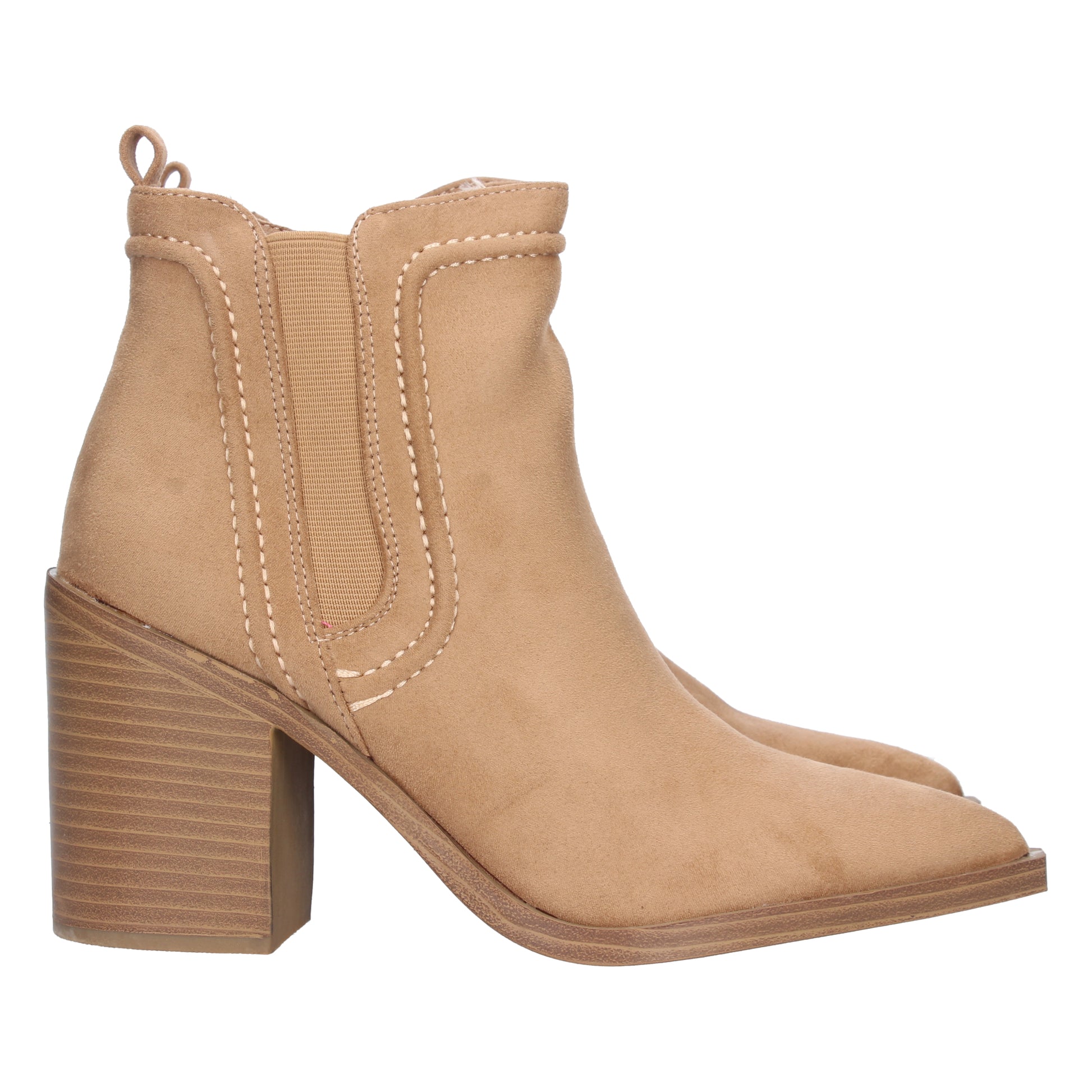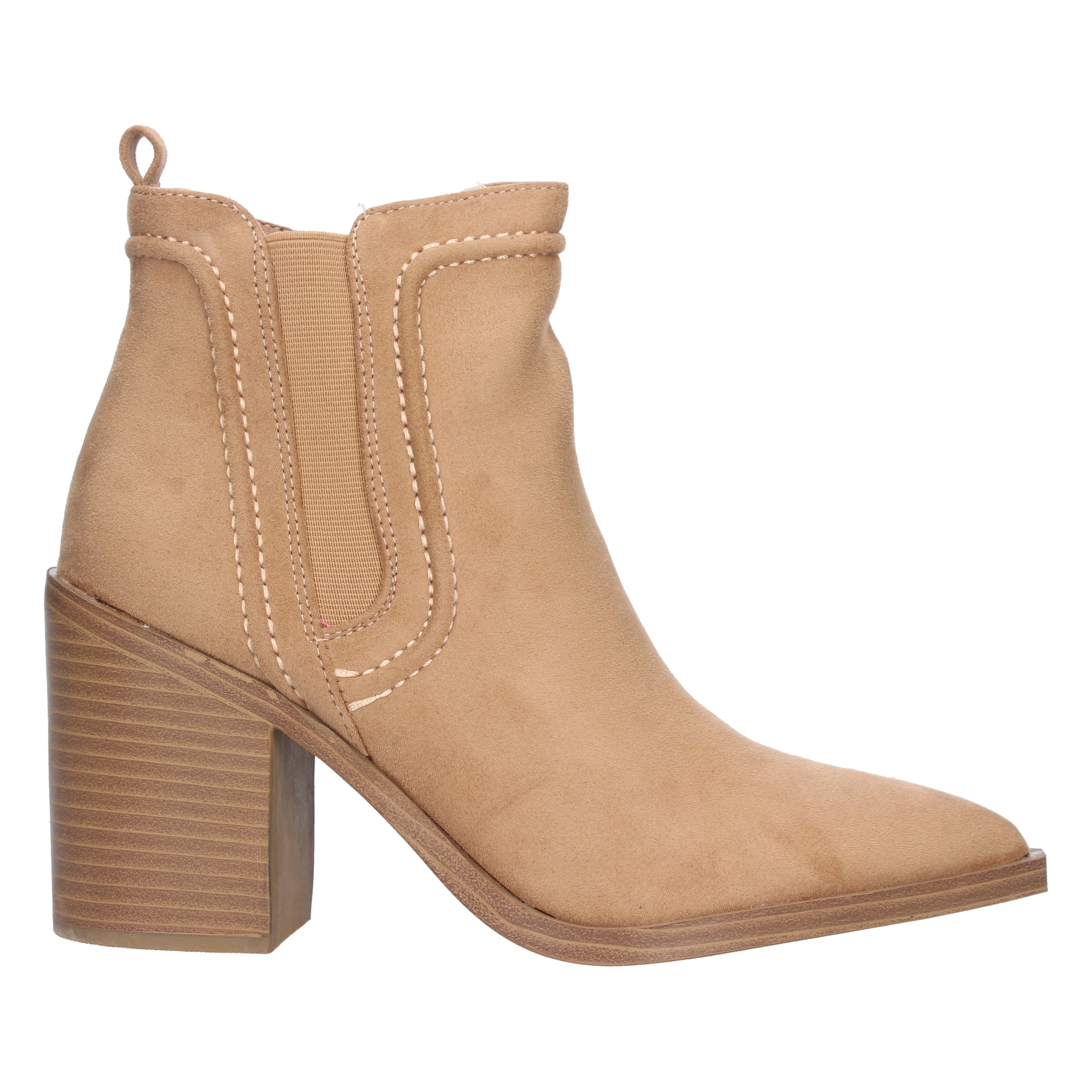 Botin de Tacon Ancho para Mujer Comodo con Estampado Liso material elastico y Cierre de Cremallera.