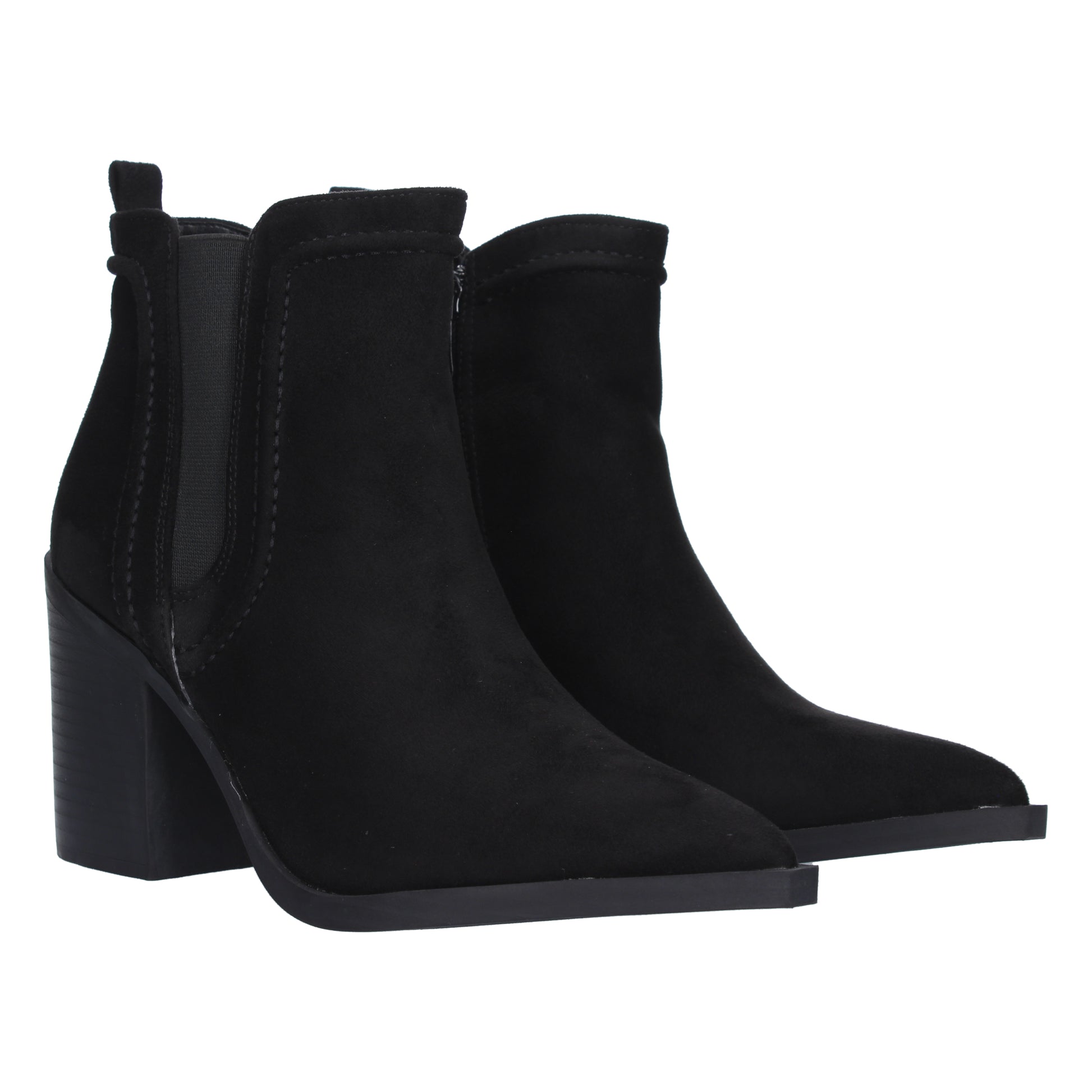 Botin de Tacon Ancho para Mujer Comodo con Estampado Liso material elastico y Cierre de Cremallera.