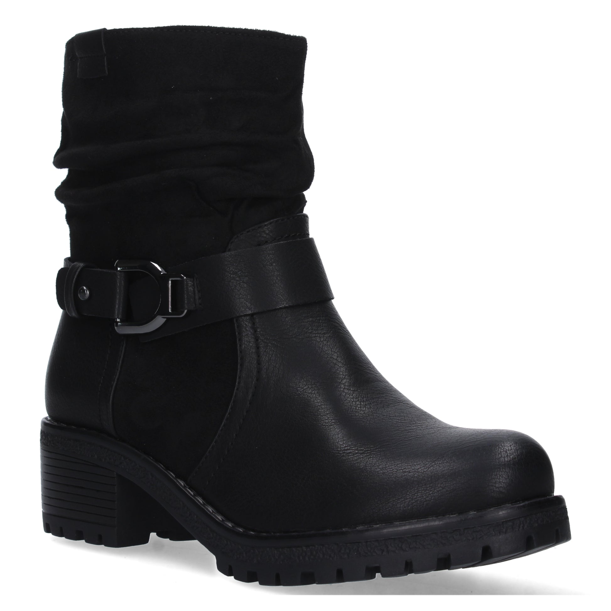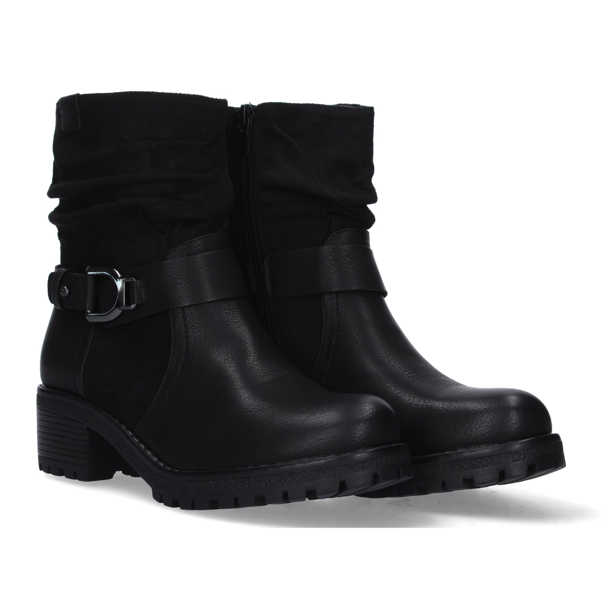 Botin de Tacon Ancho para Mujer Comodo Correa con Hebilla y Cierre de Cremallera.