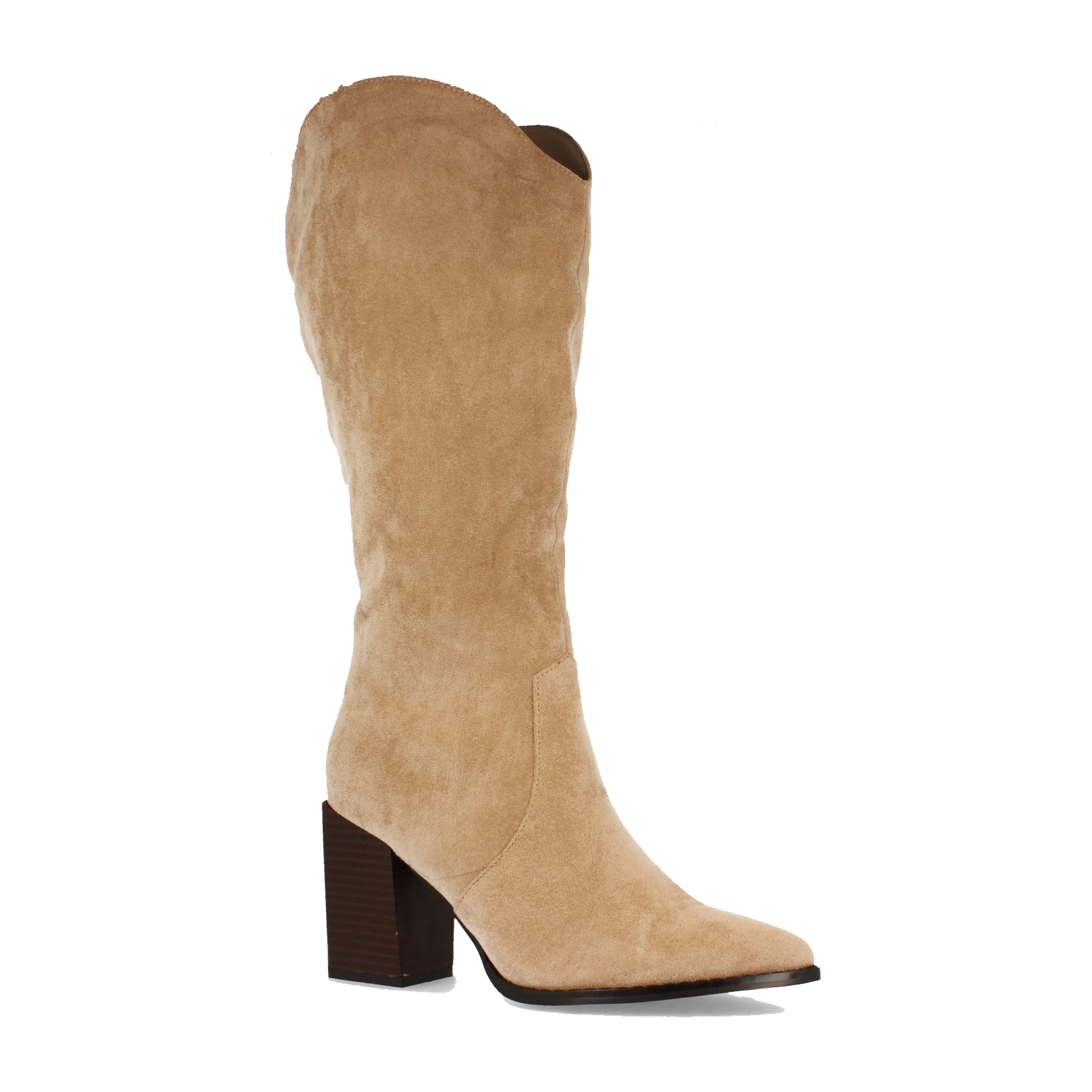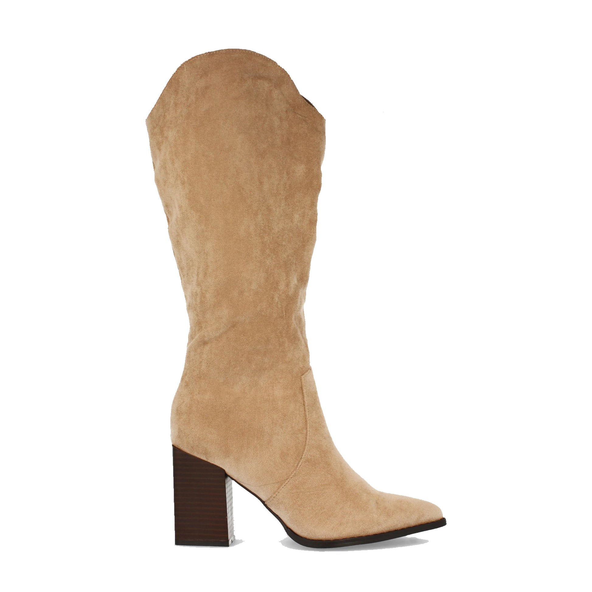 Bota de Mujer con Tacón Alto Cuadrado de Punta Fina Estampado Liso y Cierre de Cremallera Otoño Invierno 2021