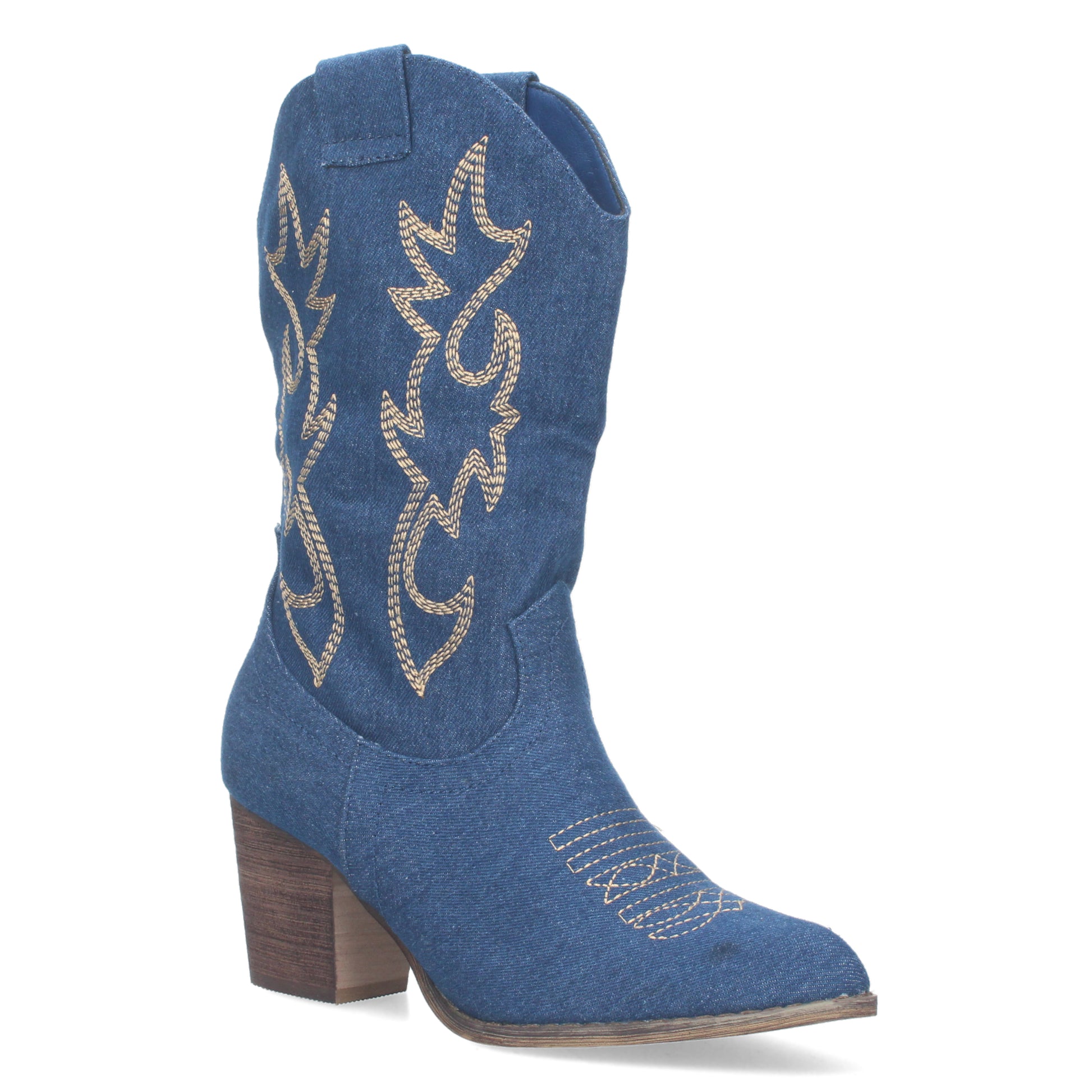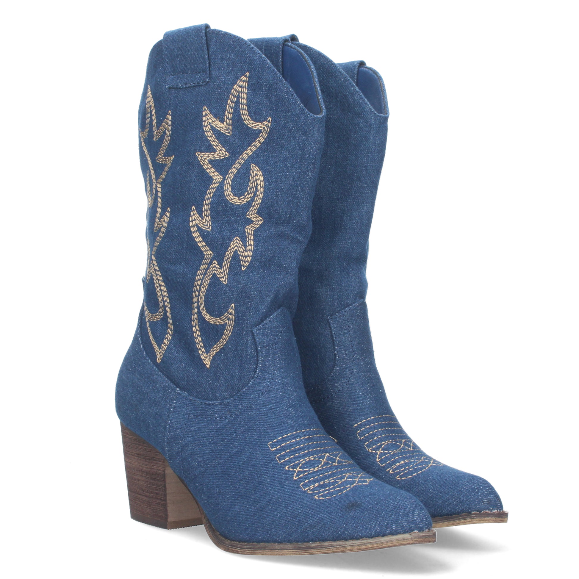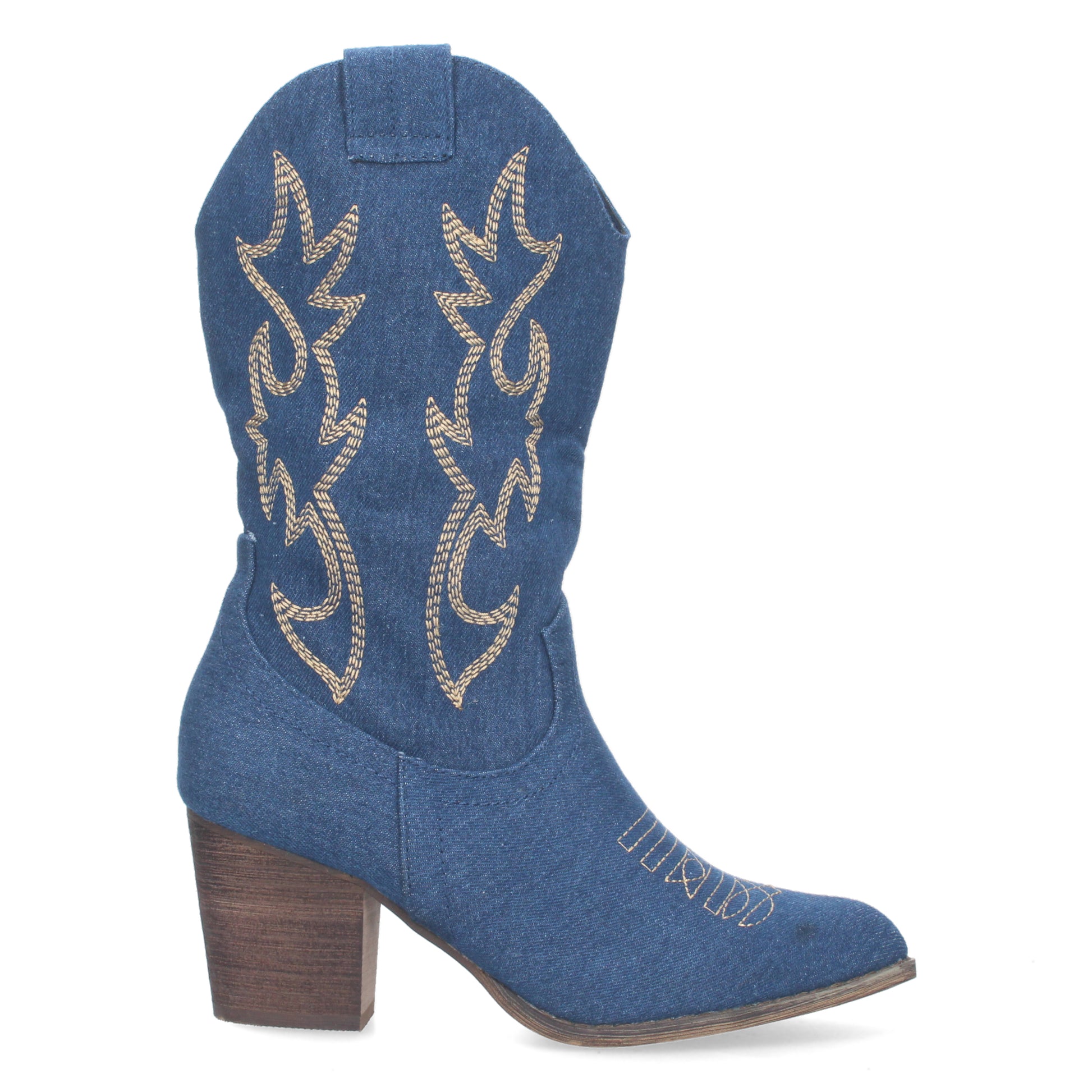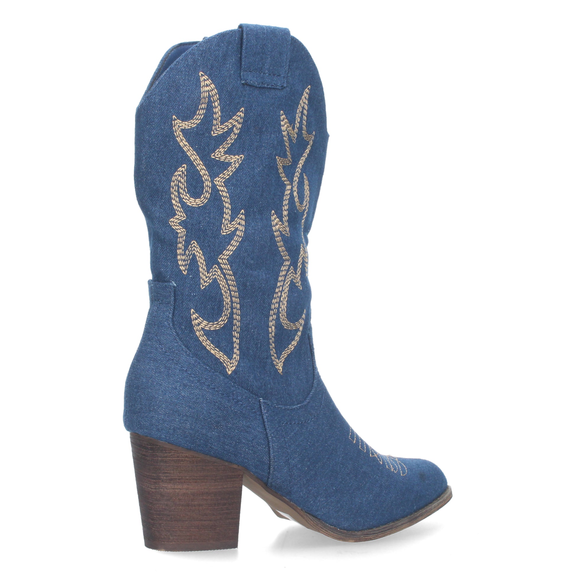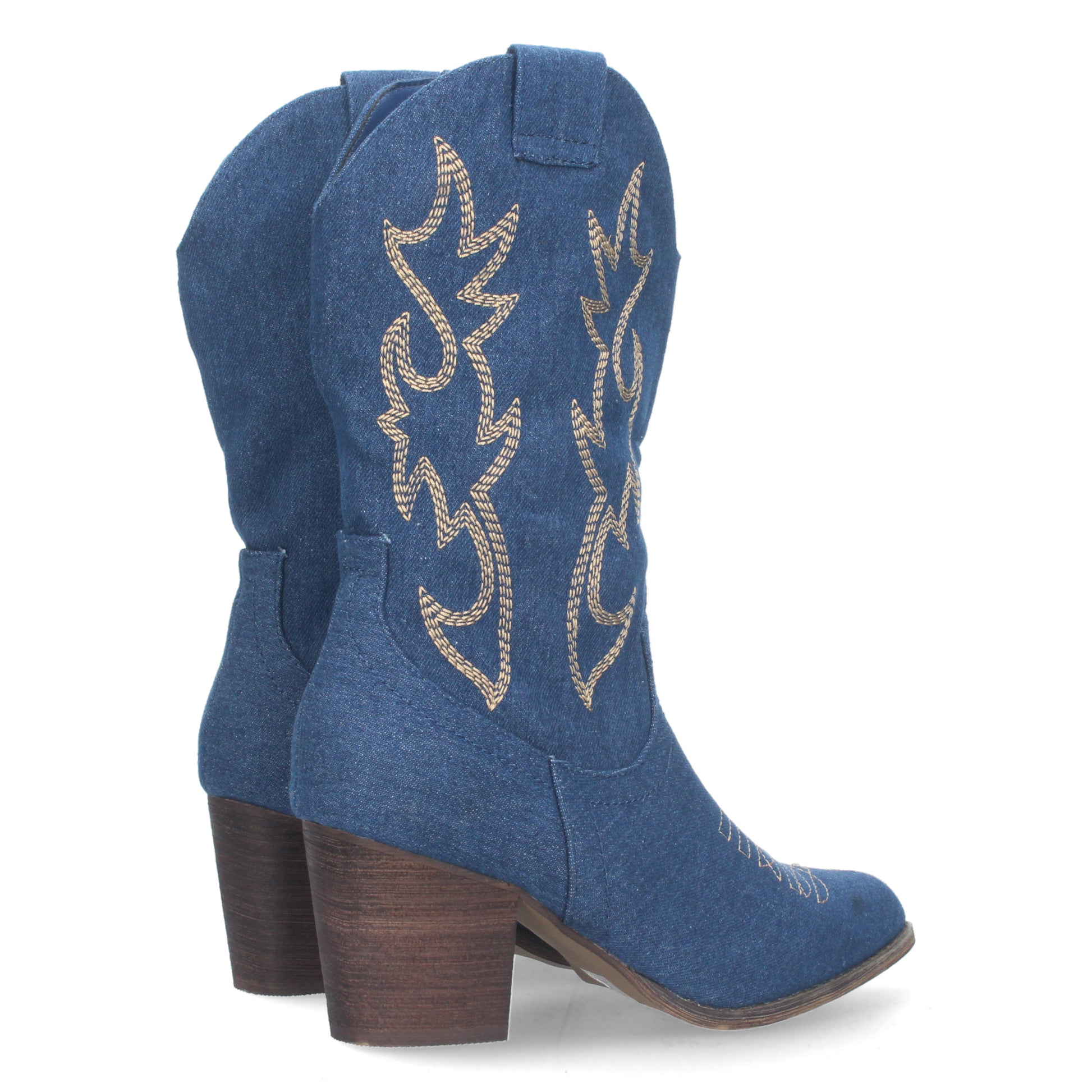 Bota Campera con Tacón Comodas Bordado Dorado en Caña y Empeine Cierre de Cremallera