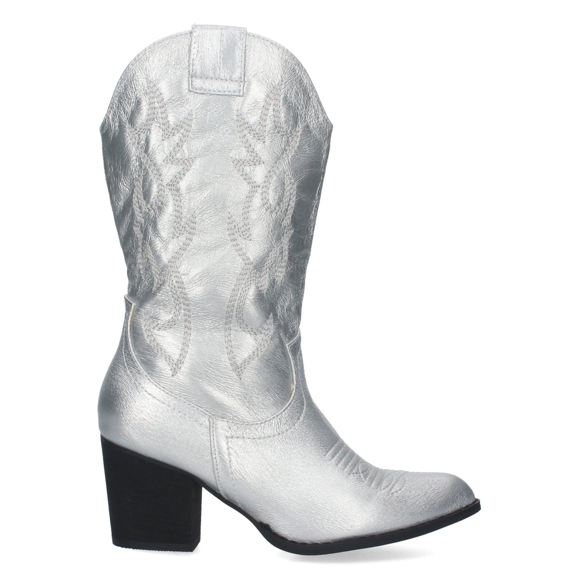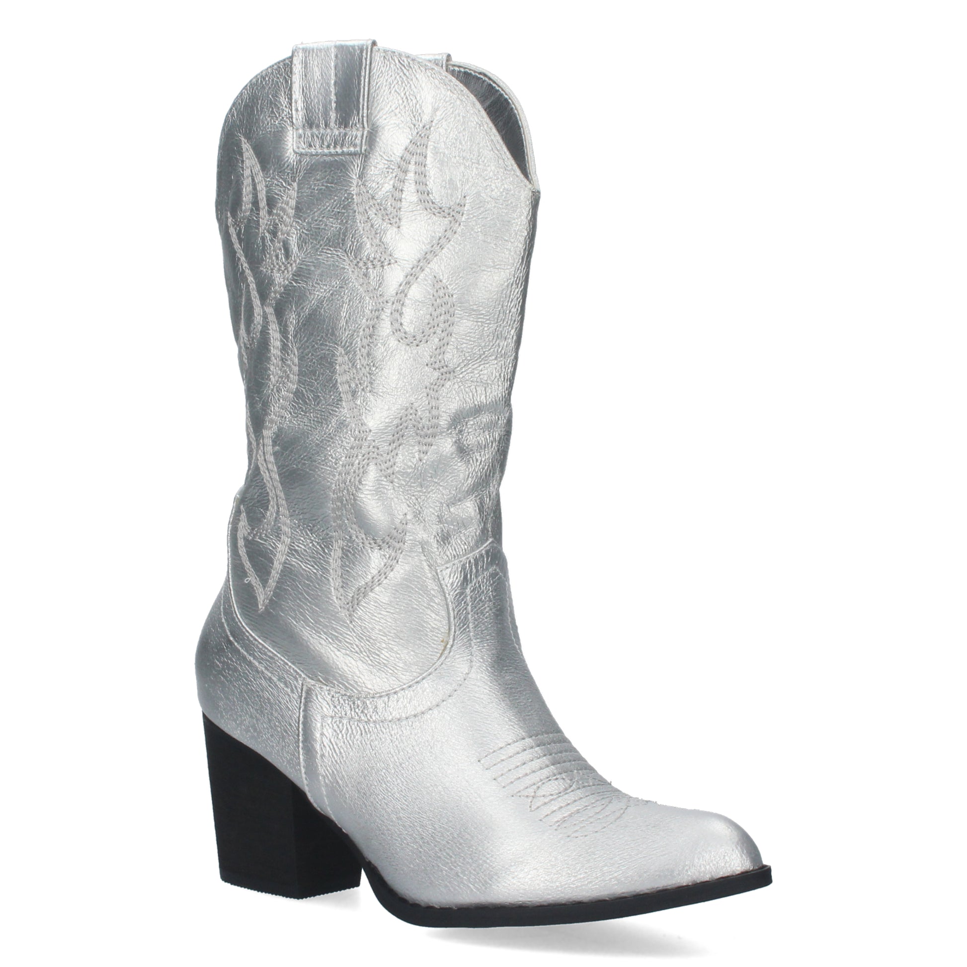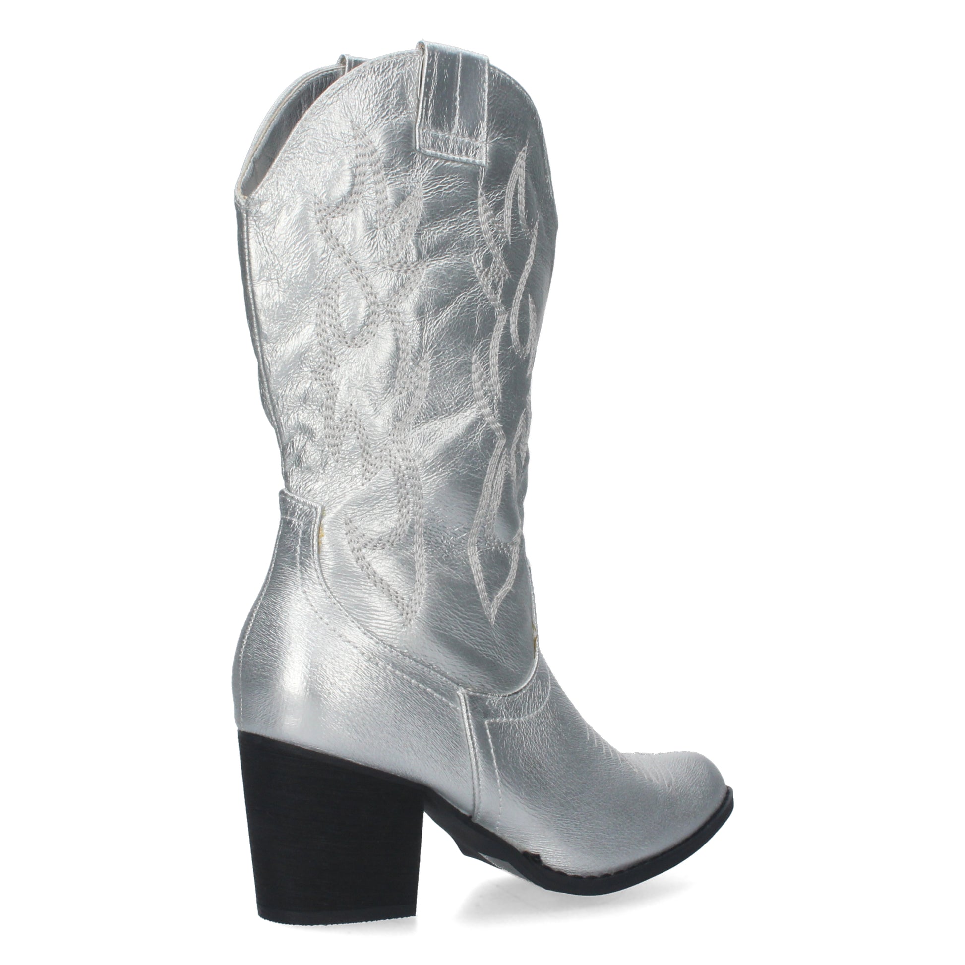 Botín Campera con Tacón Comodas Diseño Metalizado con Bordado en Caña y Empeine y Cierre de Cremallera.