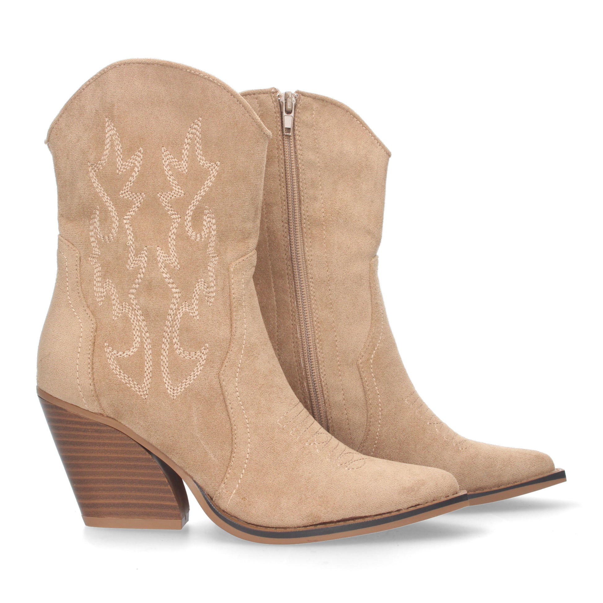 Botin de Tacon Campero para Mujer Bordado en Caña y Empeine y Cierre de Cremallera