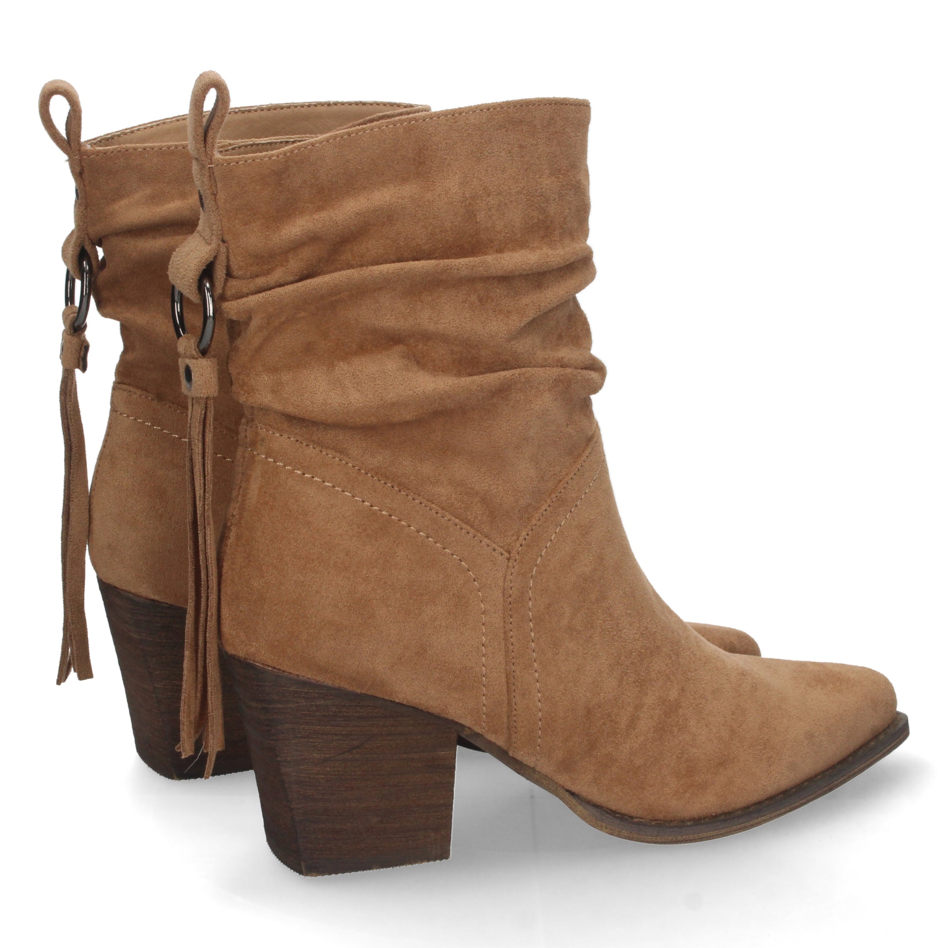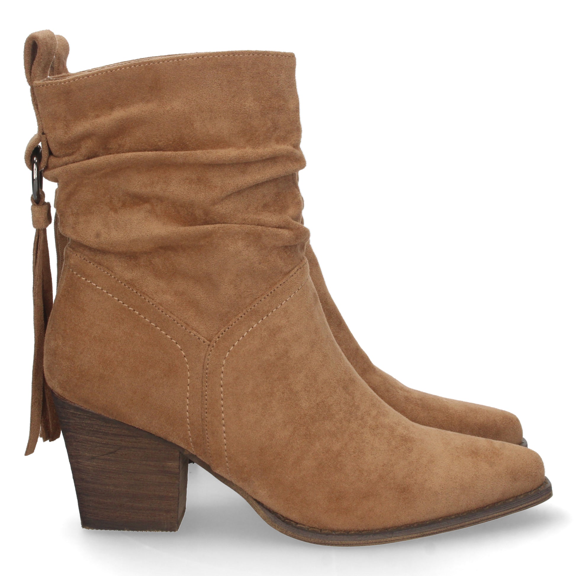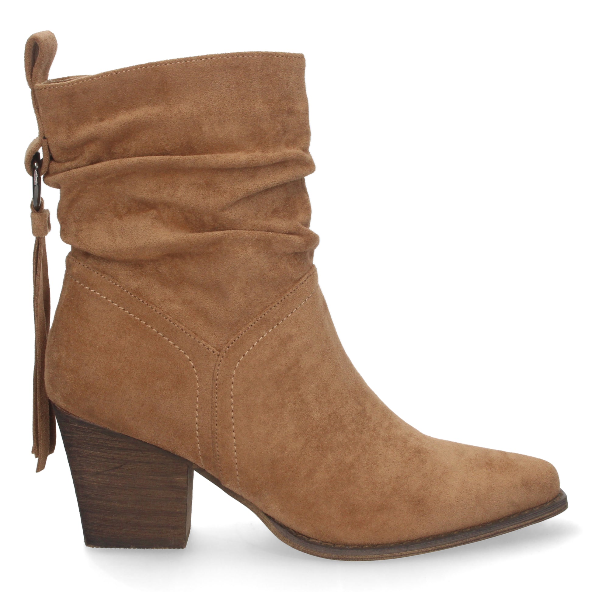 Botin de Tacon para Mujer de Punta Fina Caña Arrugada Flecos en el Talon y Cierre de Cremallera Otoño Invierno 2022
