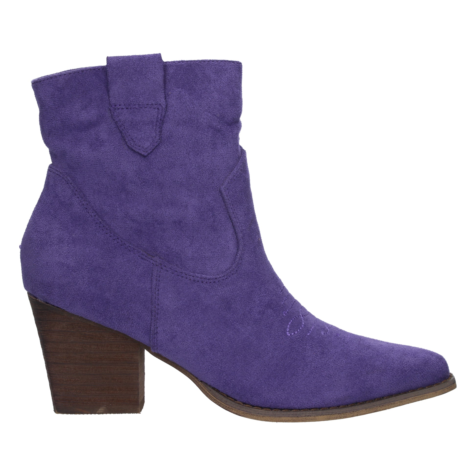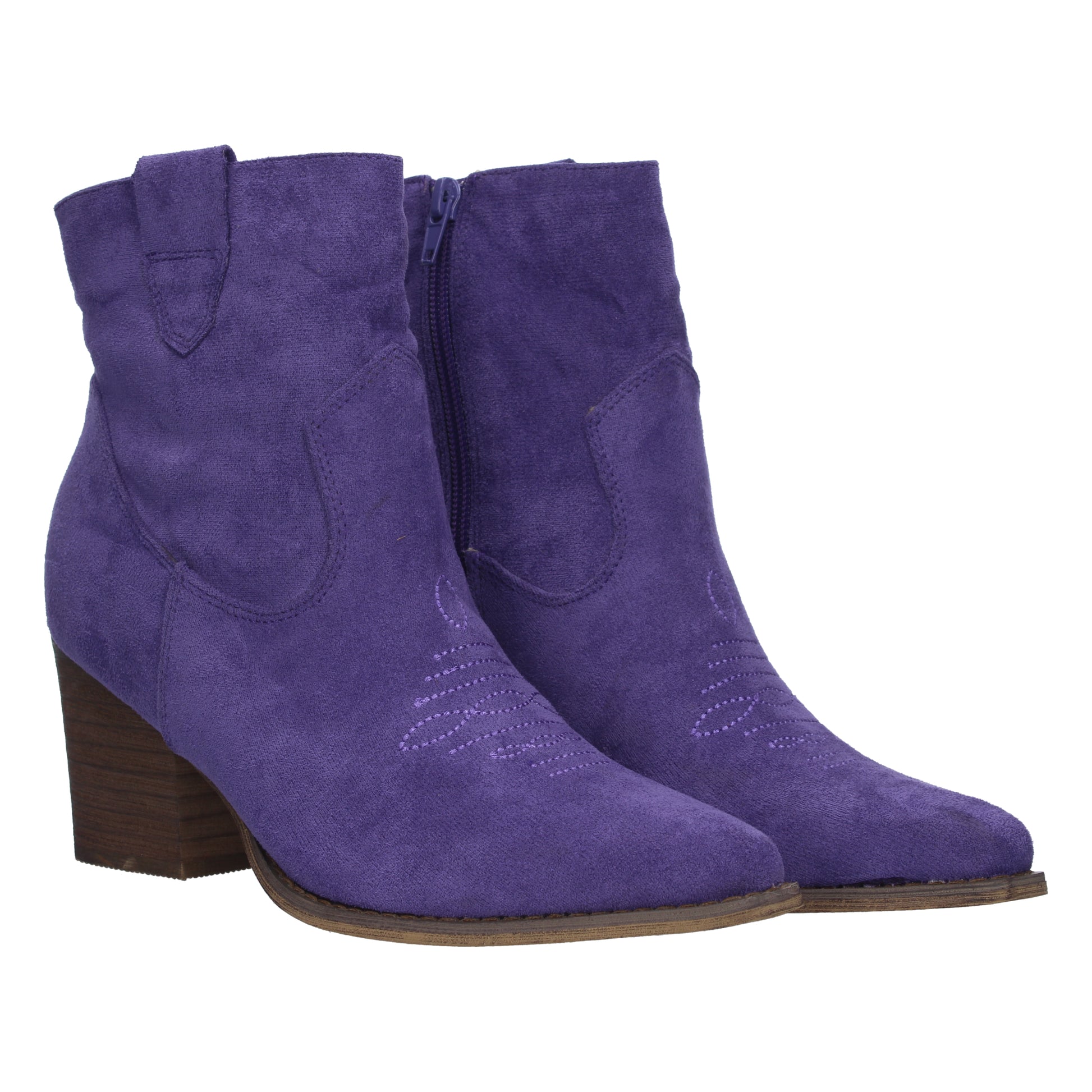 Botín mujer con cierre de cremallera tacón cuadrado y estampado liso. Bordado en empeine y tirador. Temporada otoño invierno 2023