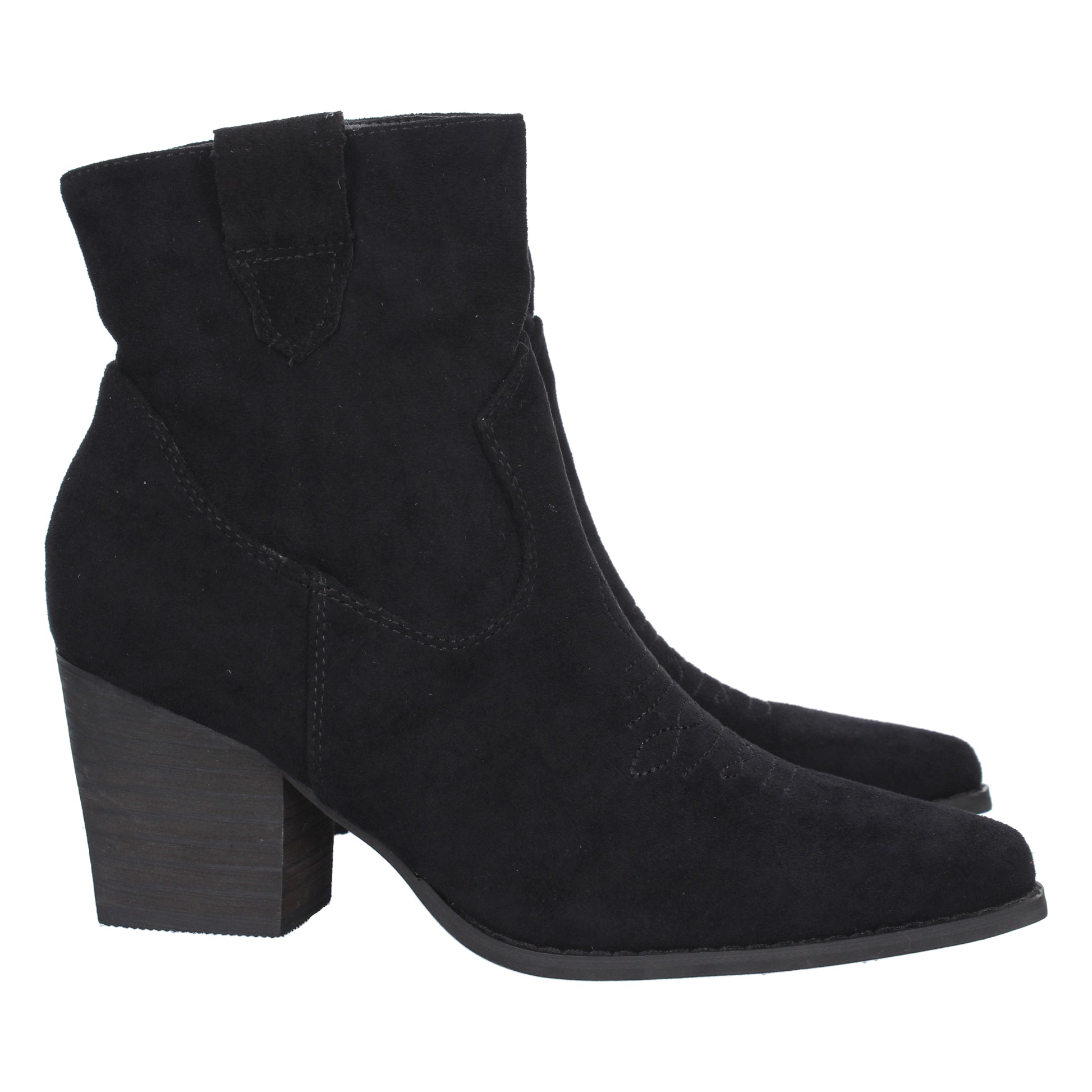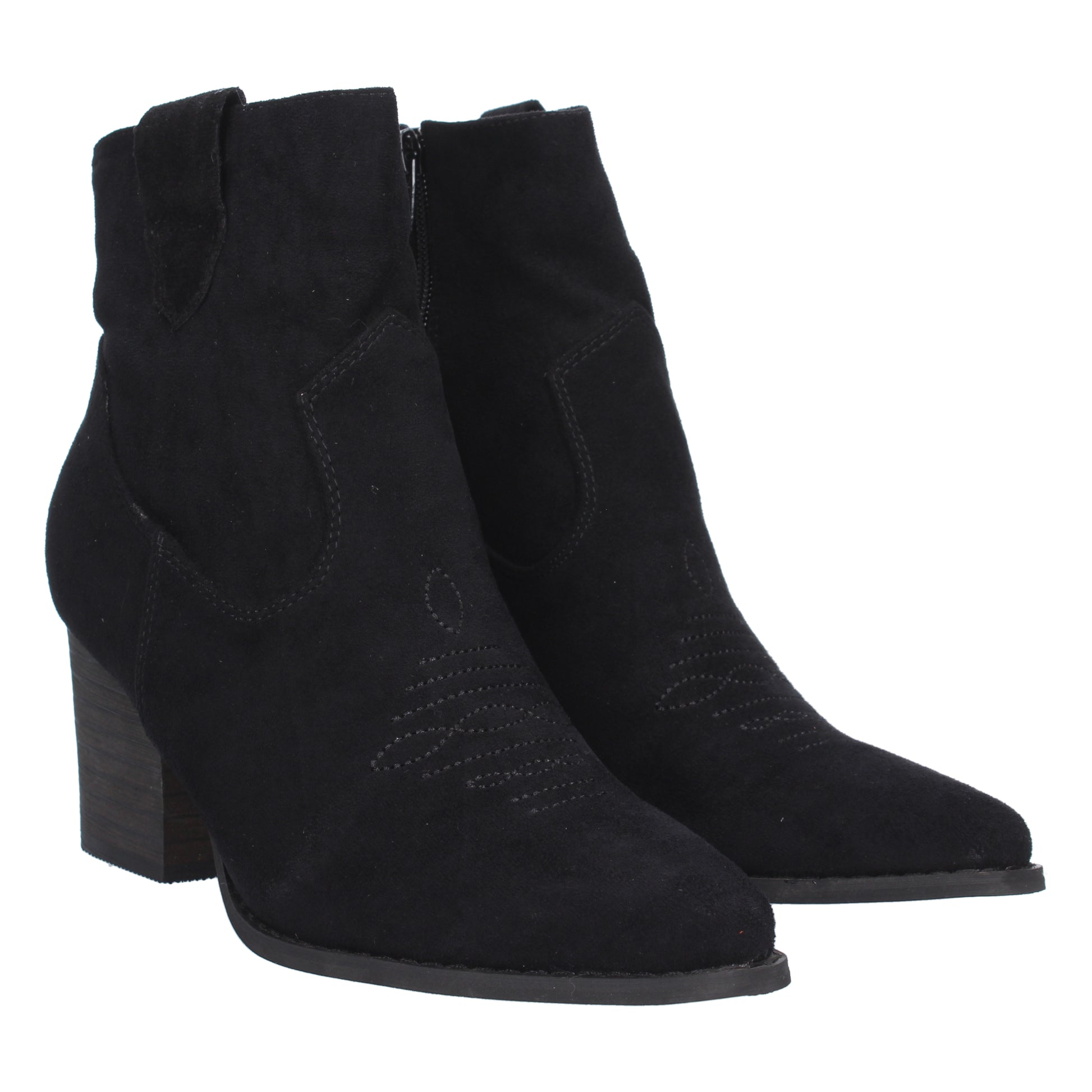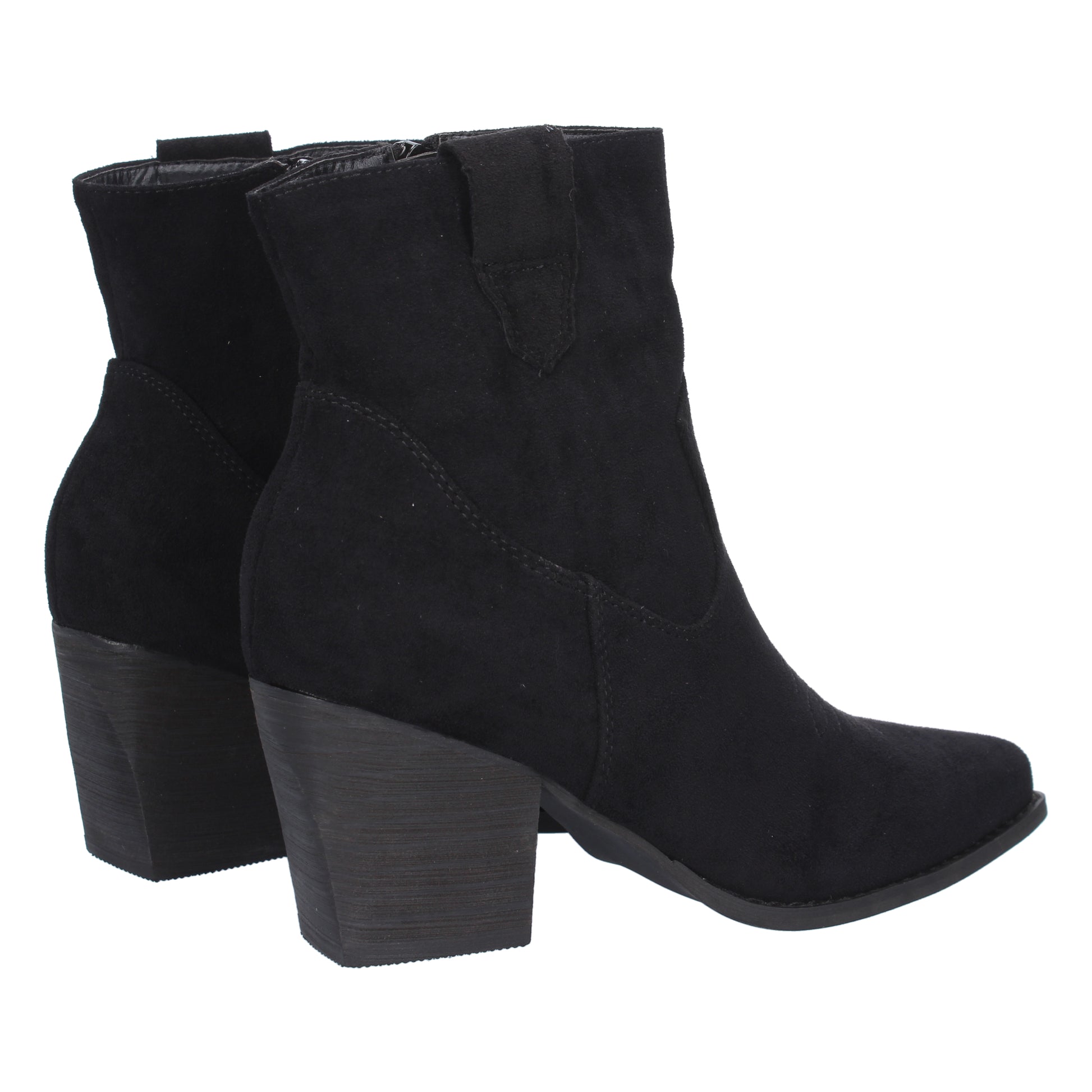 Botín mujer con cierre de cremallera tacón cuadrado y estampado liso. Bordado en empeine y tirador. Temporada otoño invierno 2023