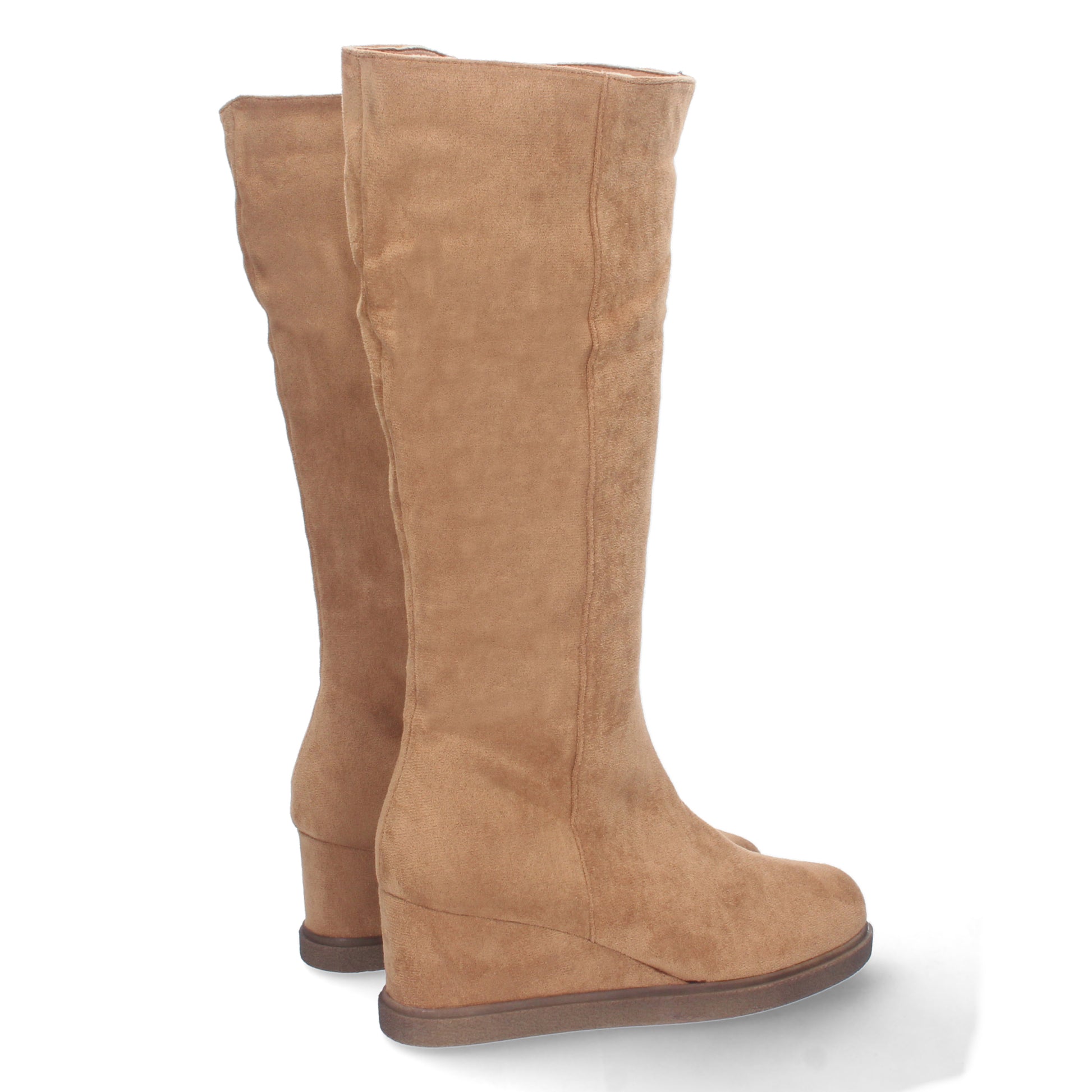 Bota de Cuña para Mujer Comoda con Estampado Liso y Cierre de Cremallera Otoño Invierno 2022