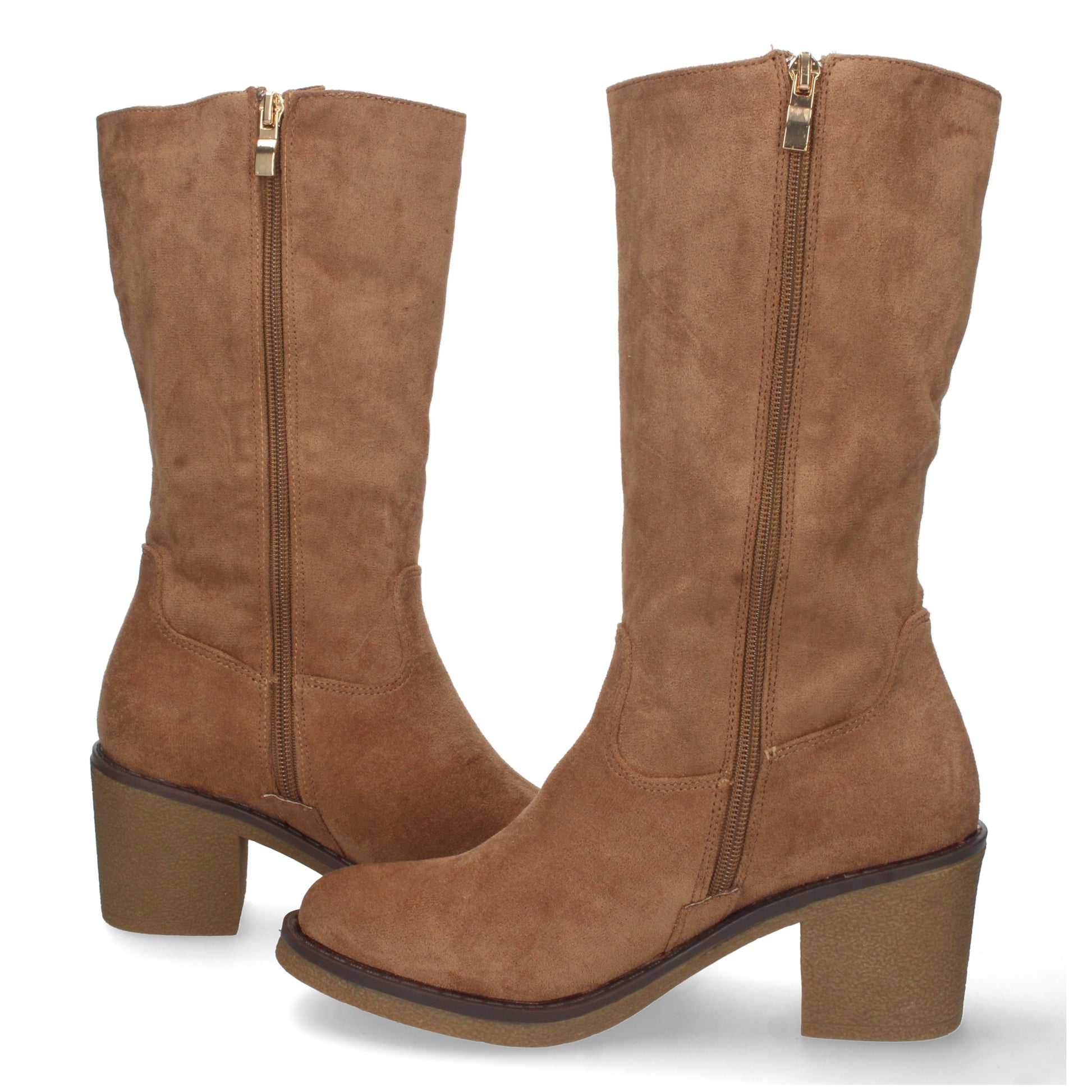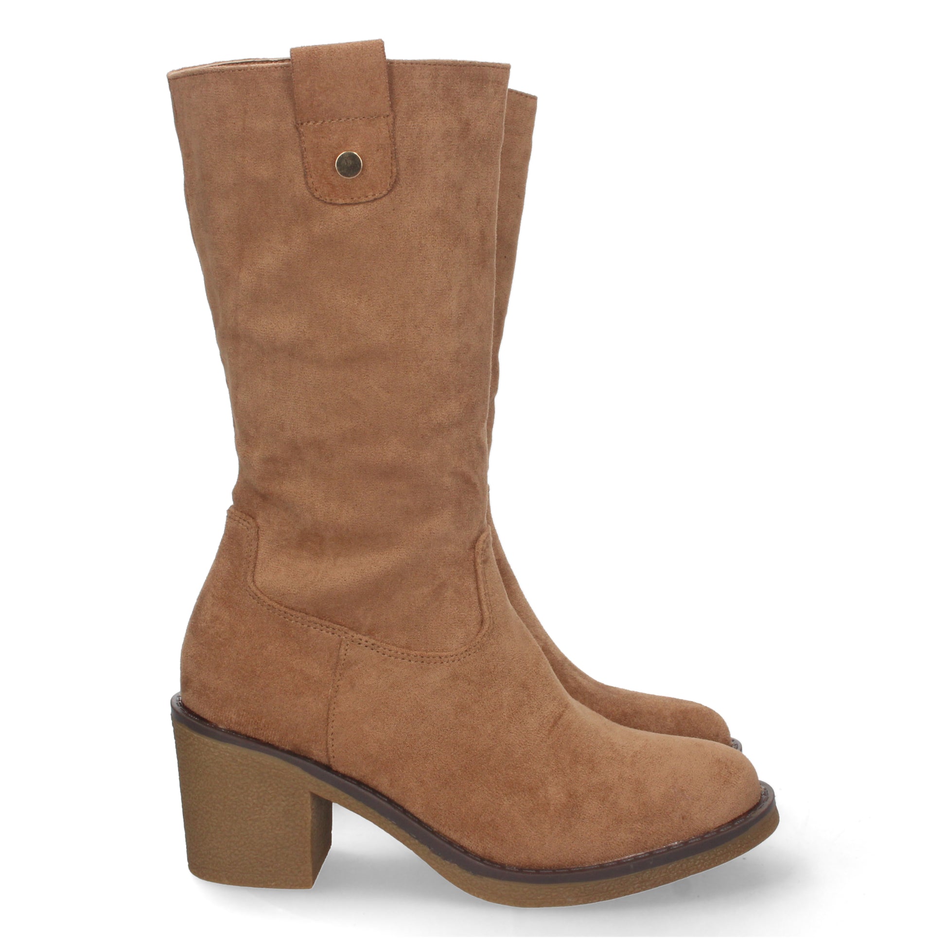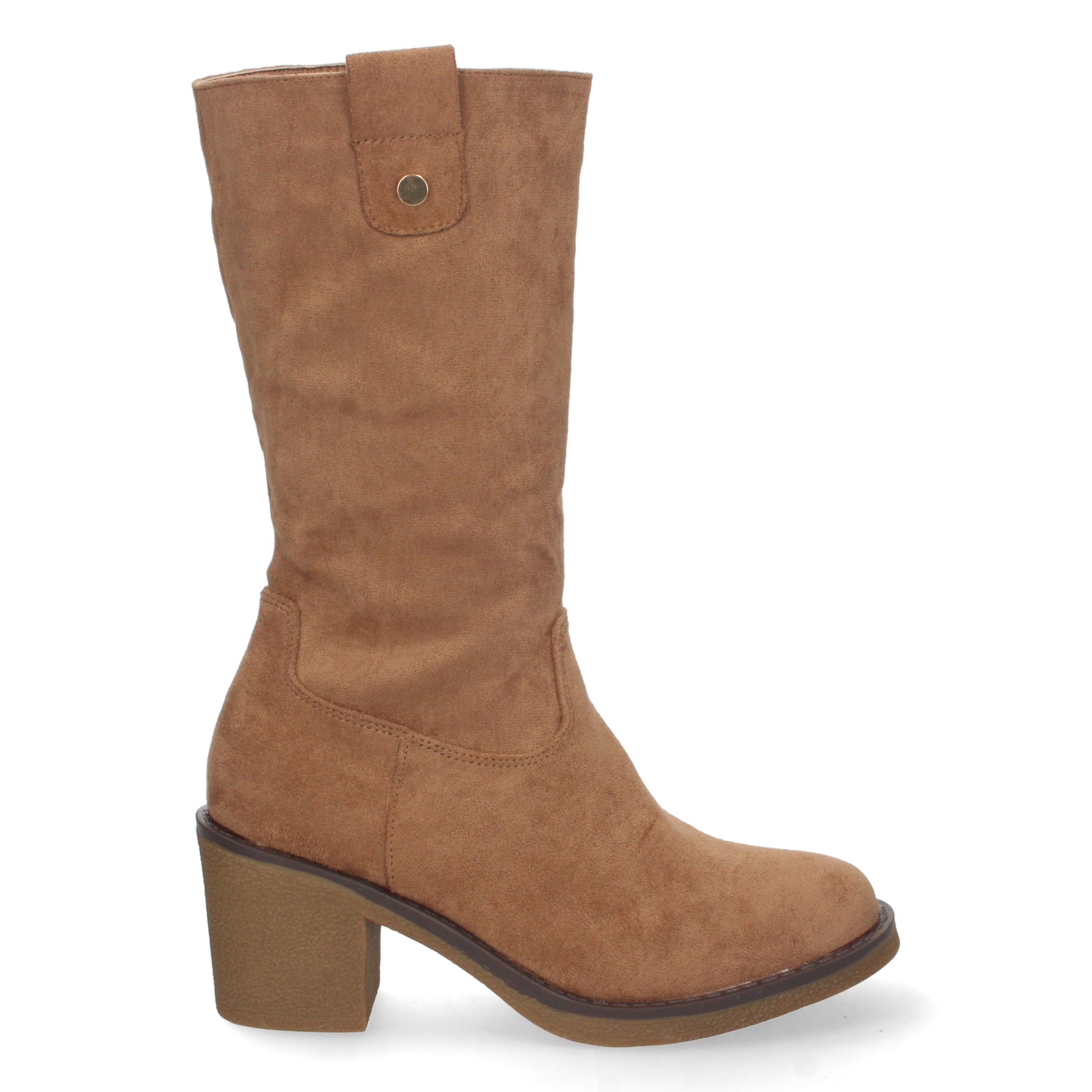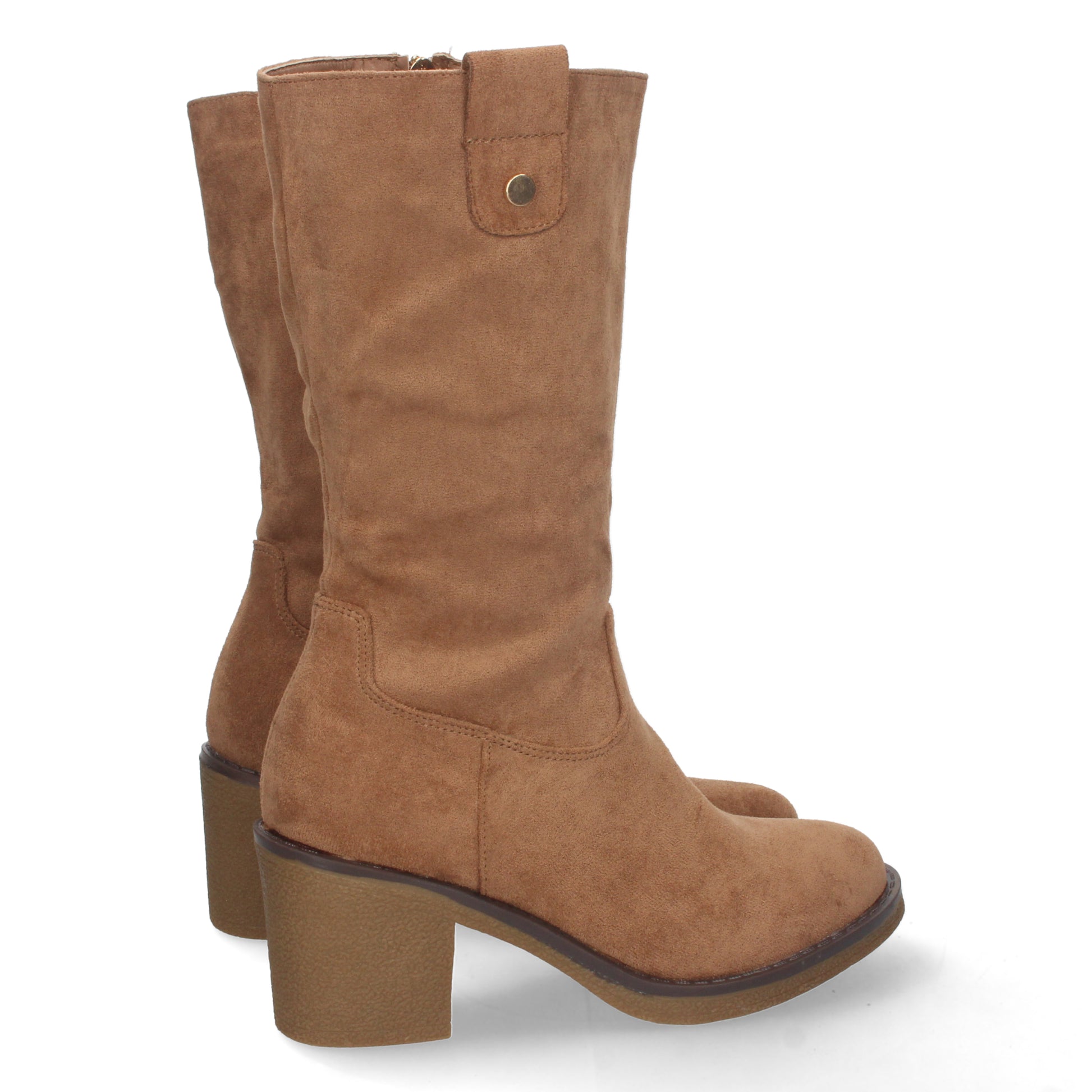 Bota de Tacón para Mujer Comoda con Estampado Liso Tachuela en Caña y Cierre de Cremallera Otoño Invierno 2022
