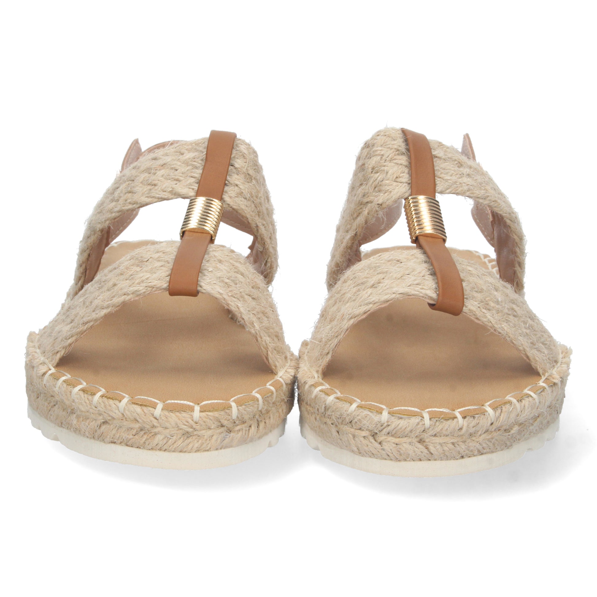 Sandalia Plana para Mujer Comoda Forrada de Yute Doble Pala Talon Abierto y Cierre de Hebilla Primavera Verano 2023