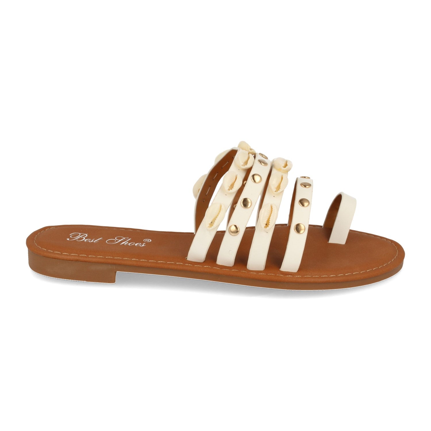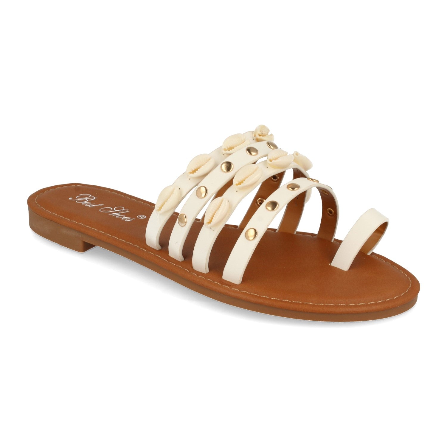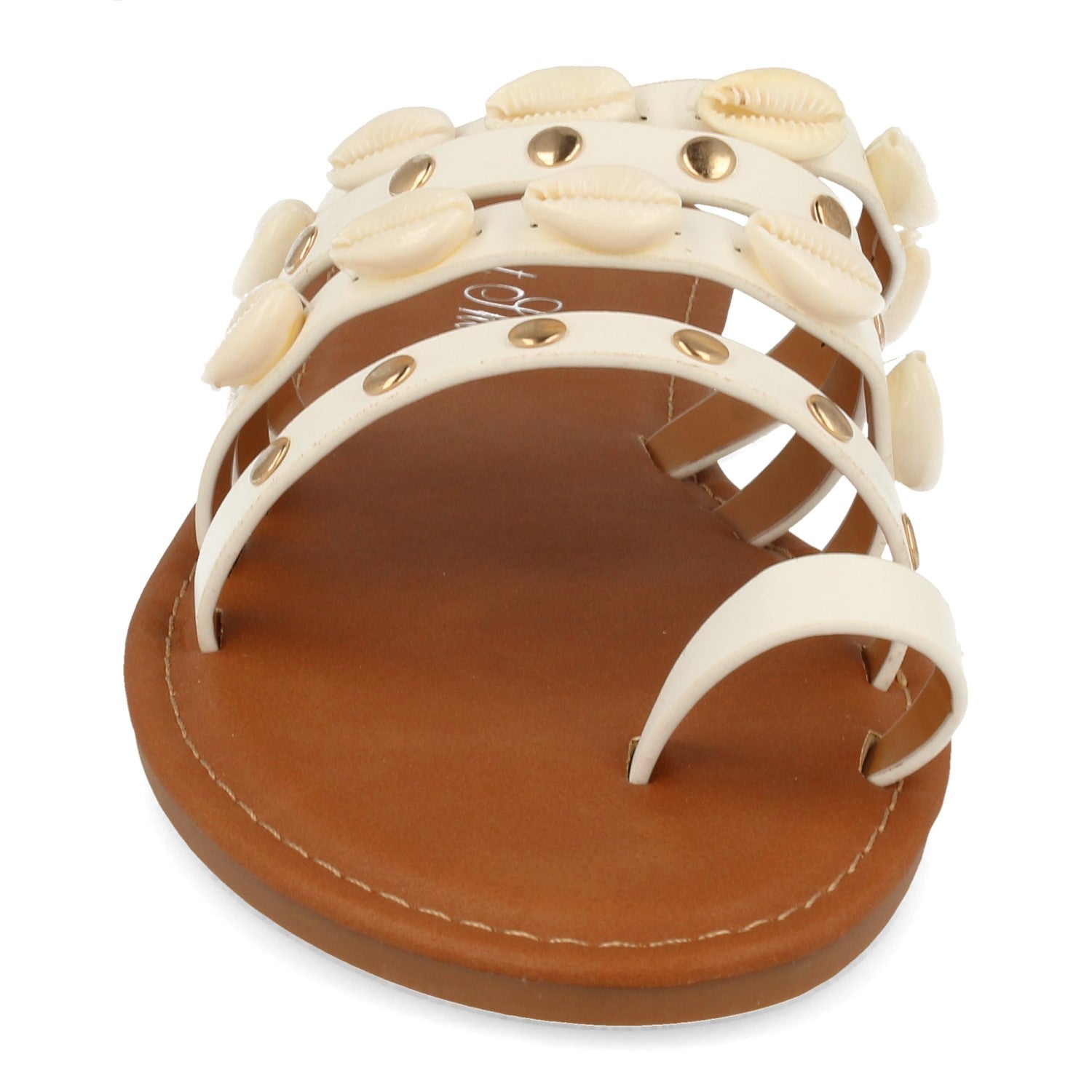 Sandalia Plana de Esclava Estilo Casual Adornado con Conchas Talon Abierto Primavera Verano 2020
