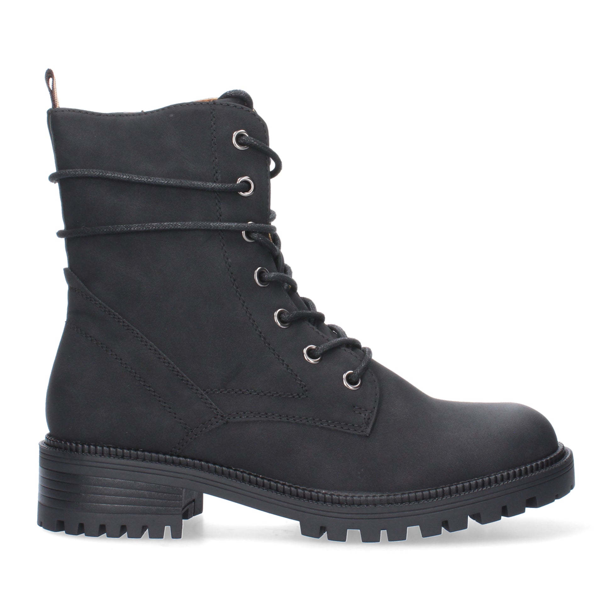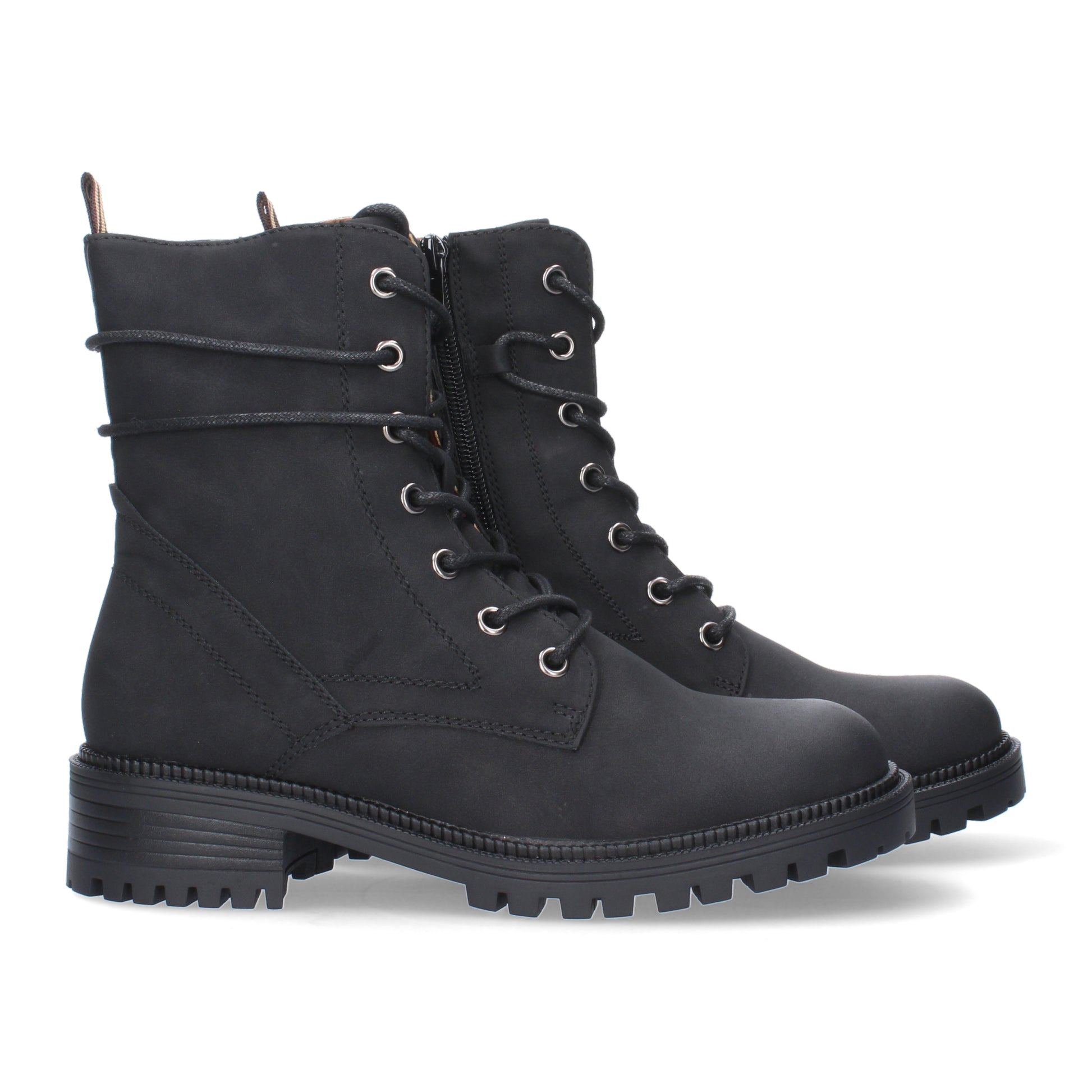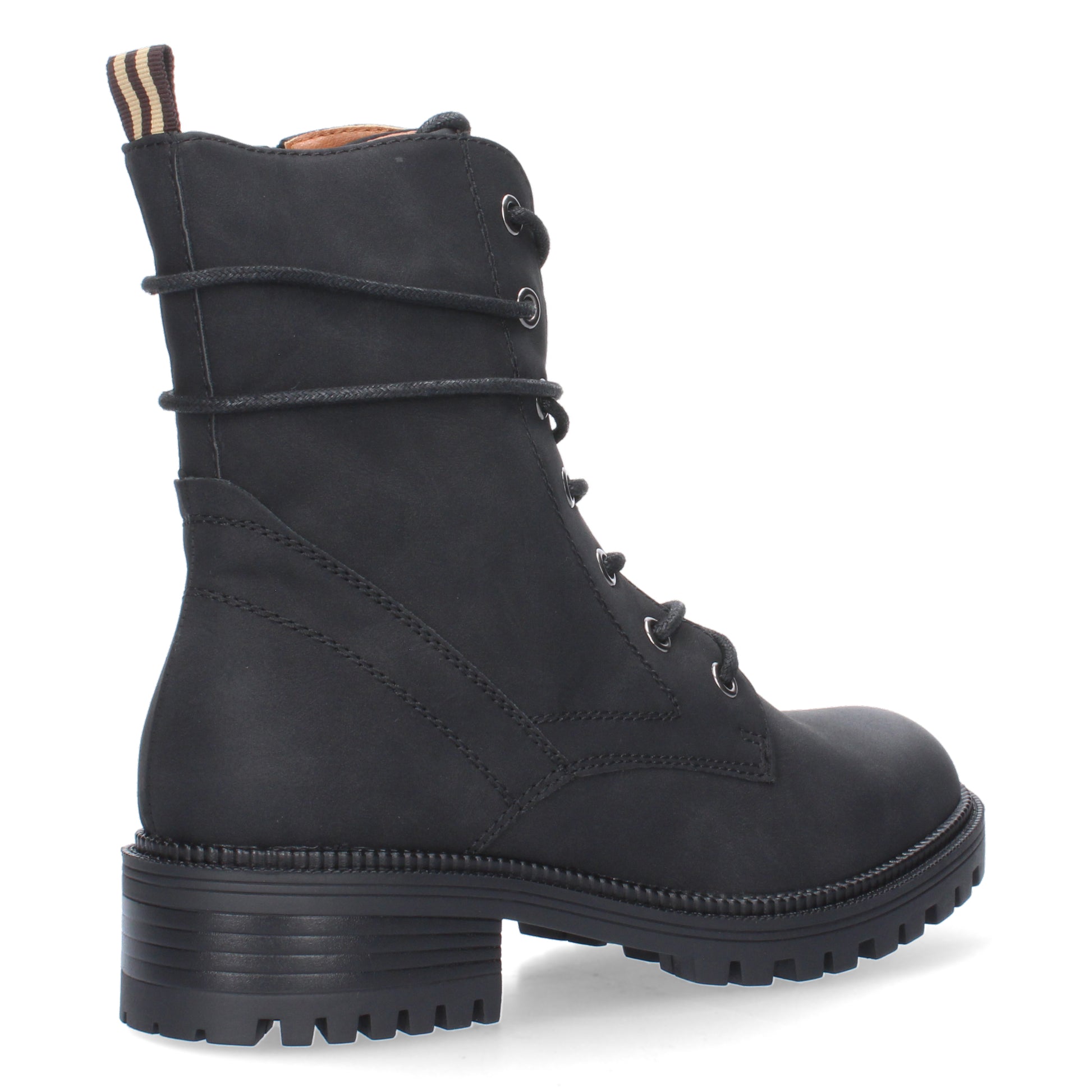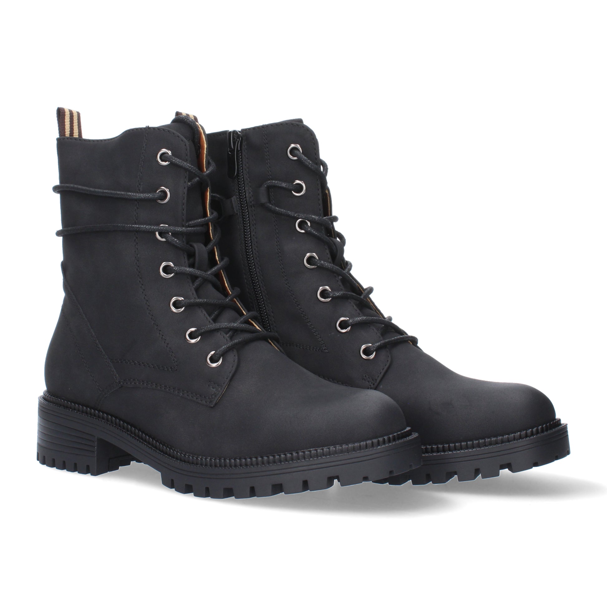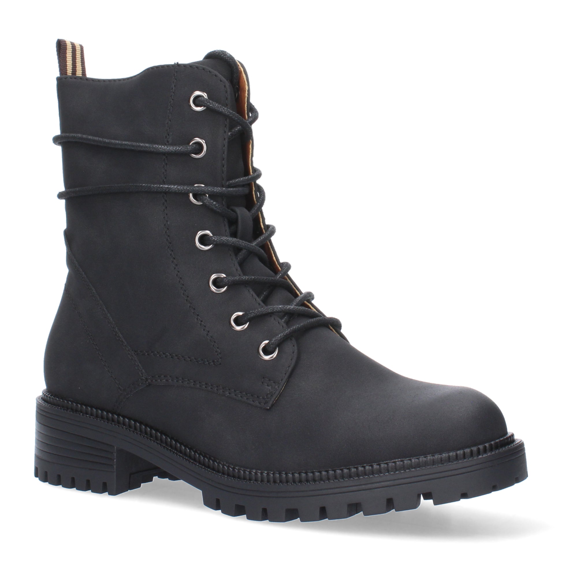 Botín de tacón para mujer cierre de cremallera y de cordones con adorno en la caña.