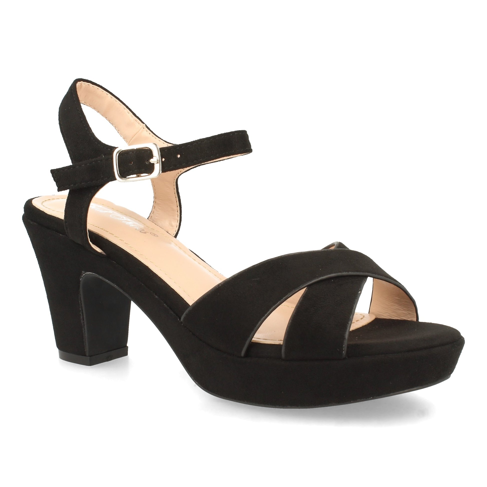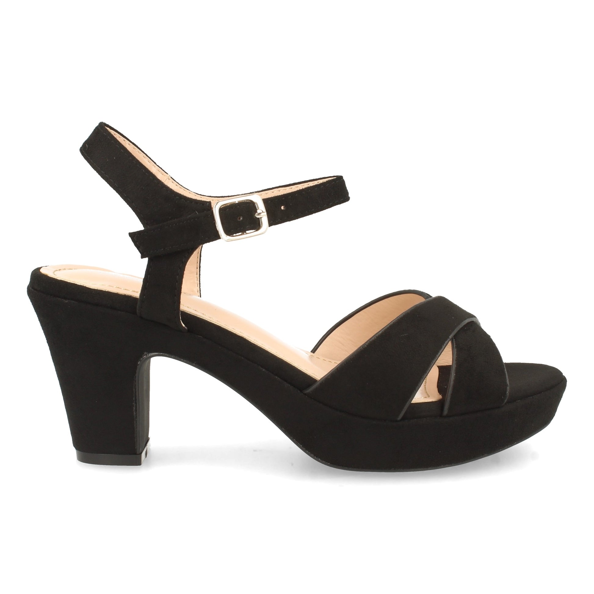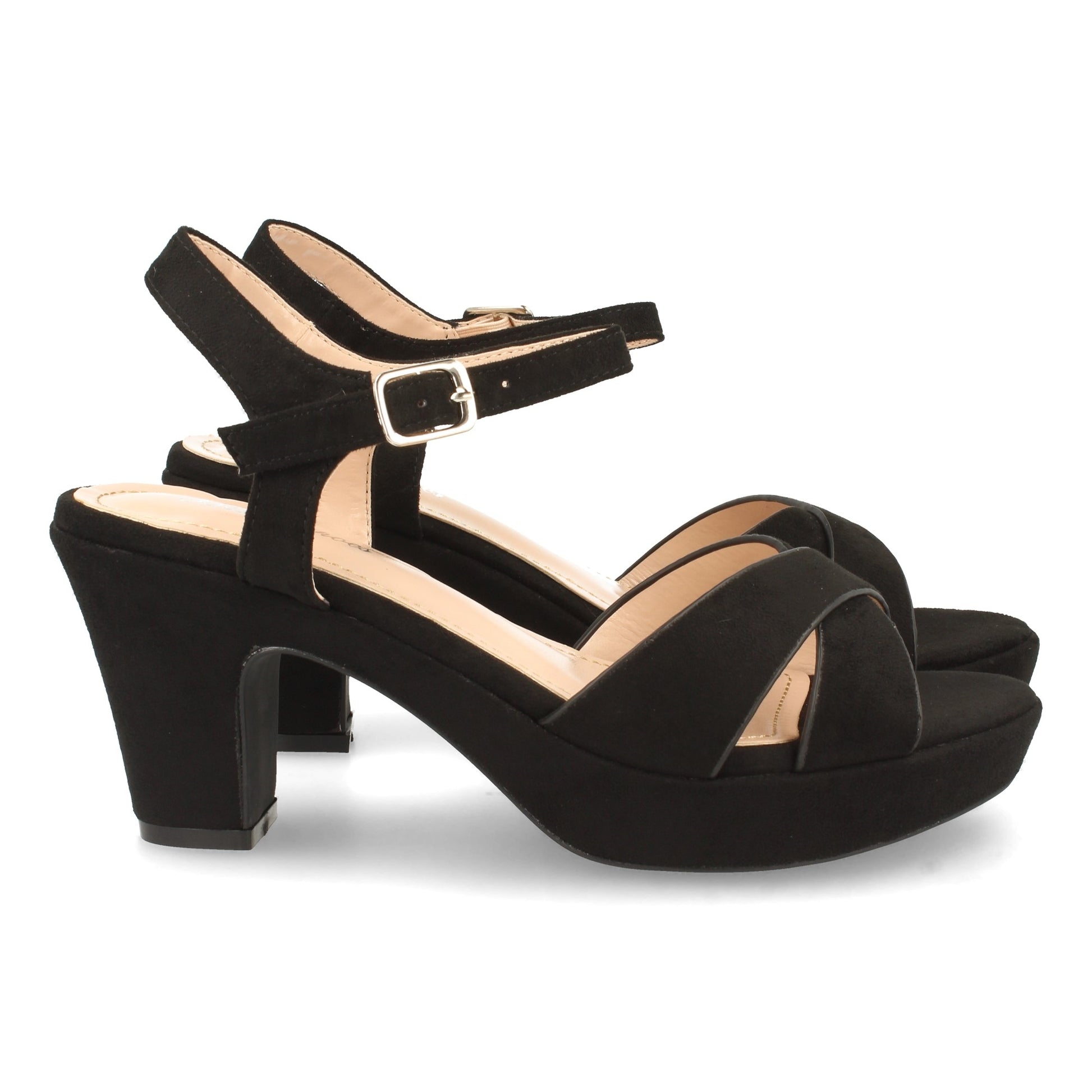Sandalia de Tacón Ancho y Plataforma Palas Cruzadas y Cierre de Hebilla en el Tobillo Primavera Verano 2021