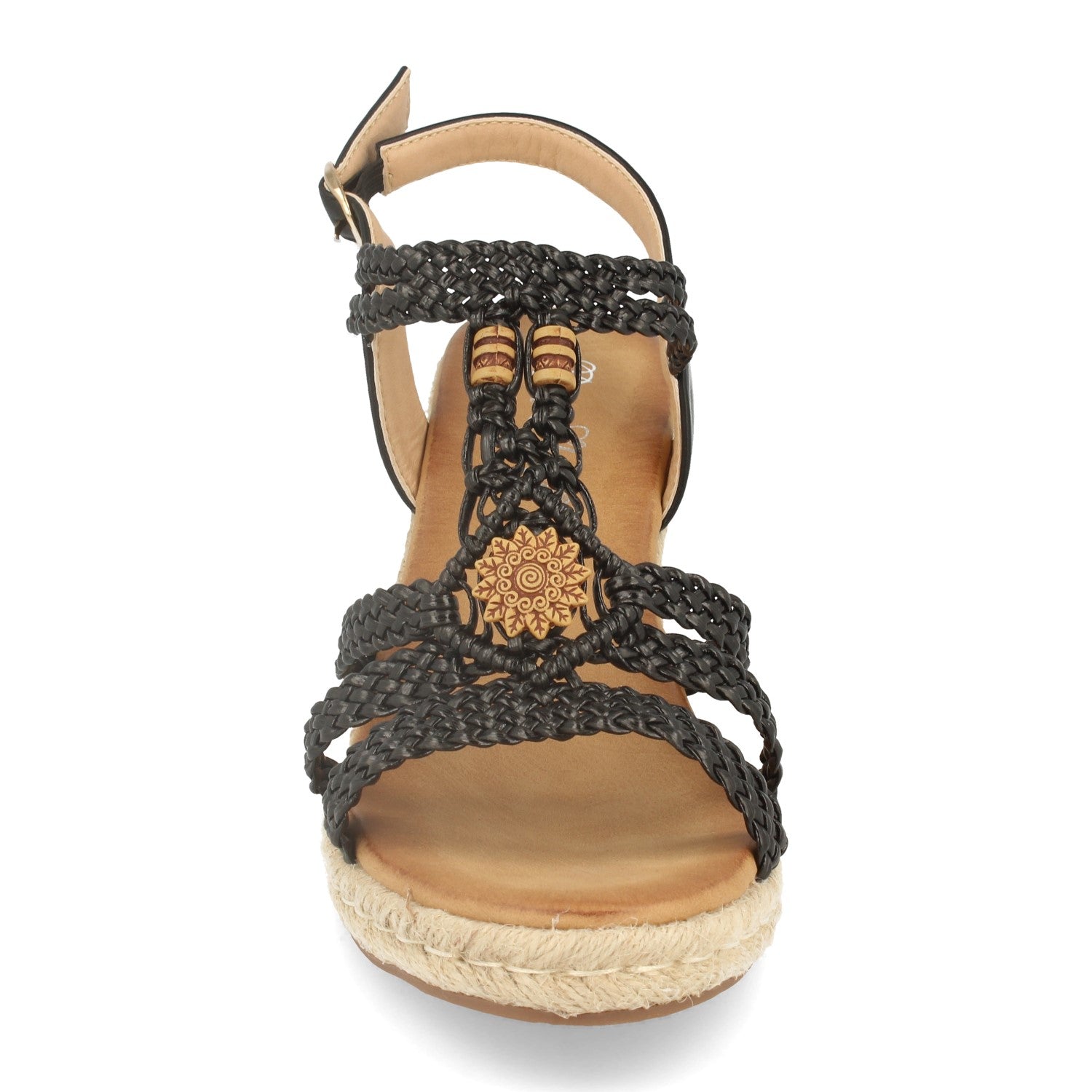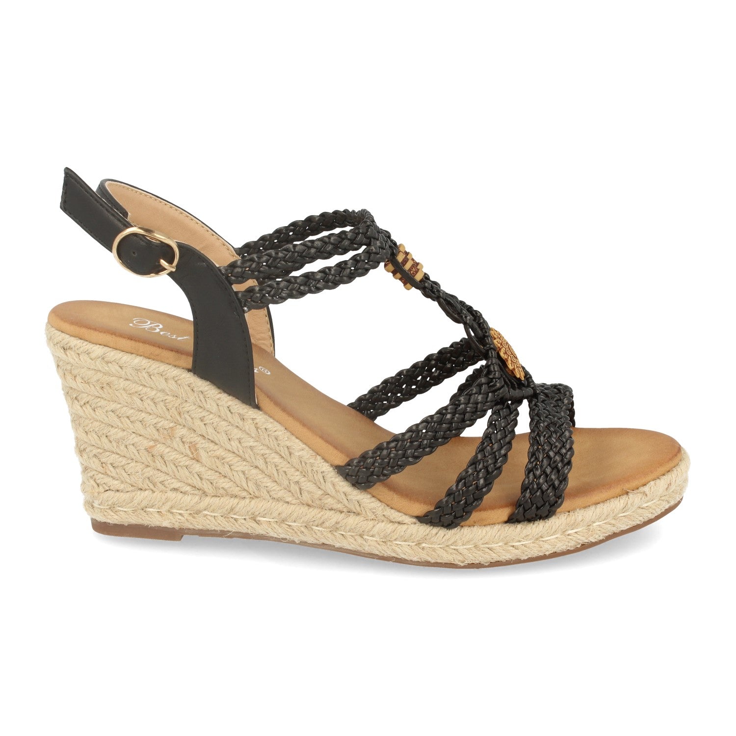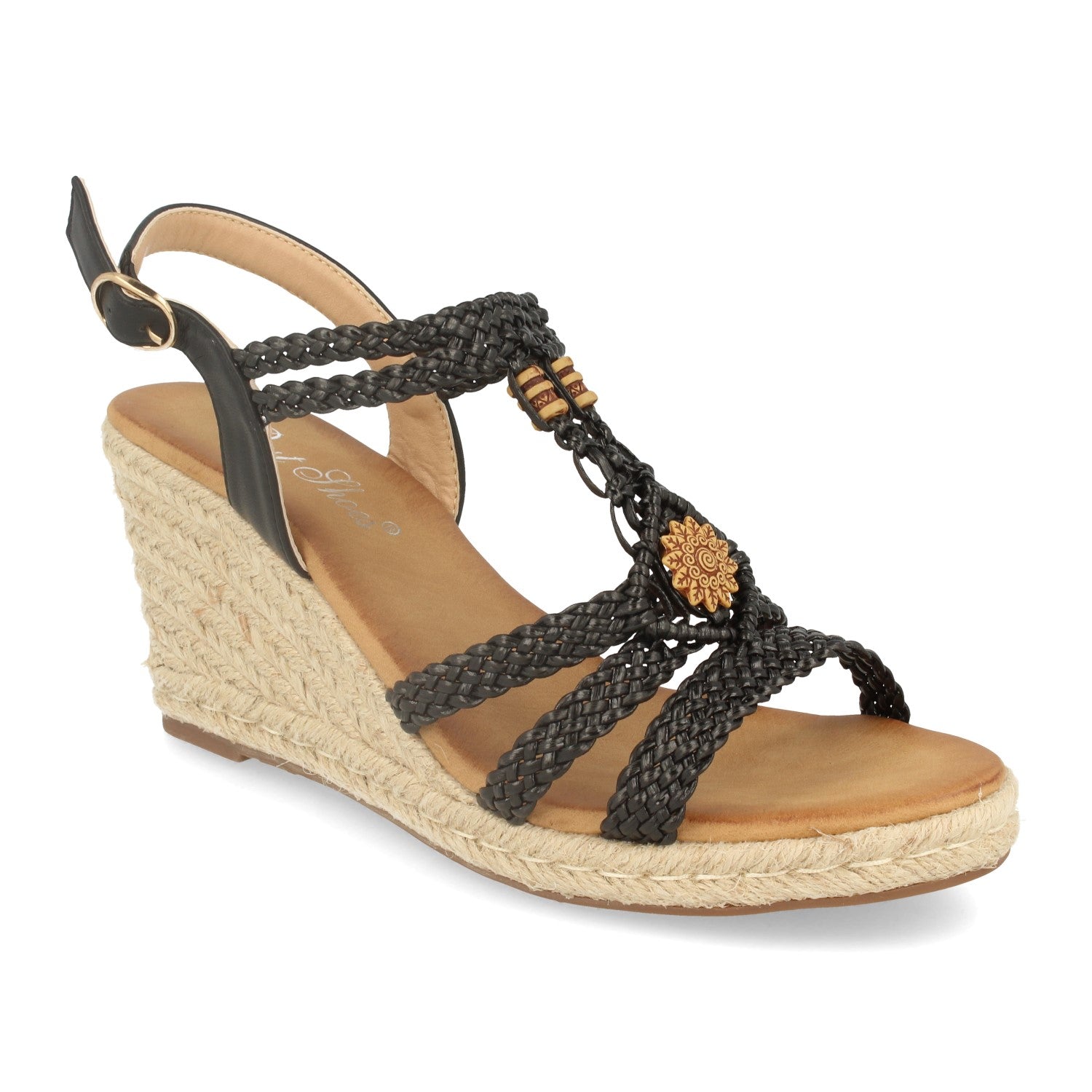 Sandalia de Cuña con Yute Correa en Forma de T Trenzada Adornado en Pala Cierre de Hebilla Primavera Verano 2020