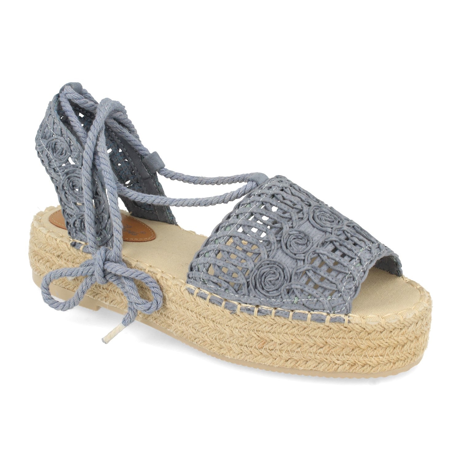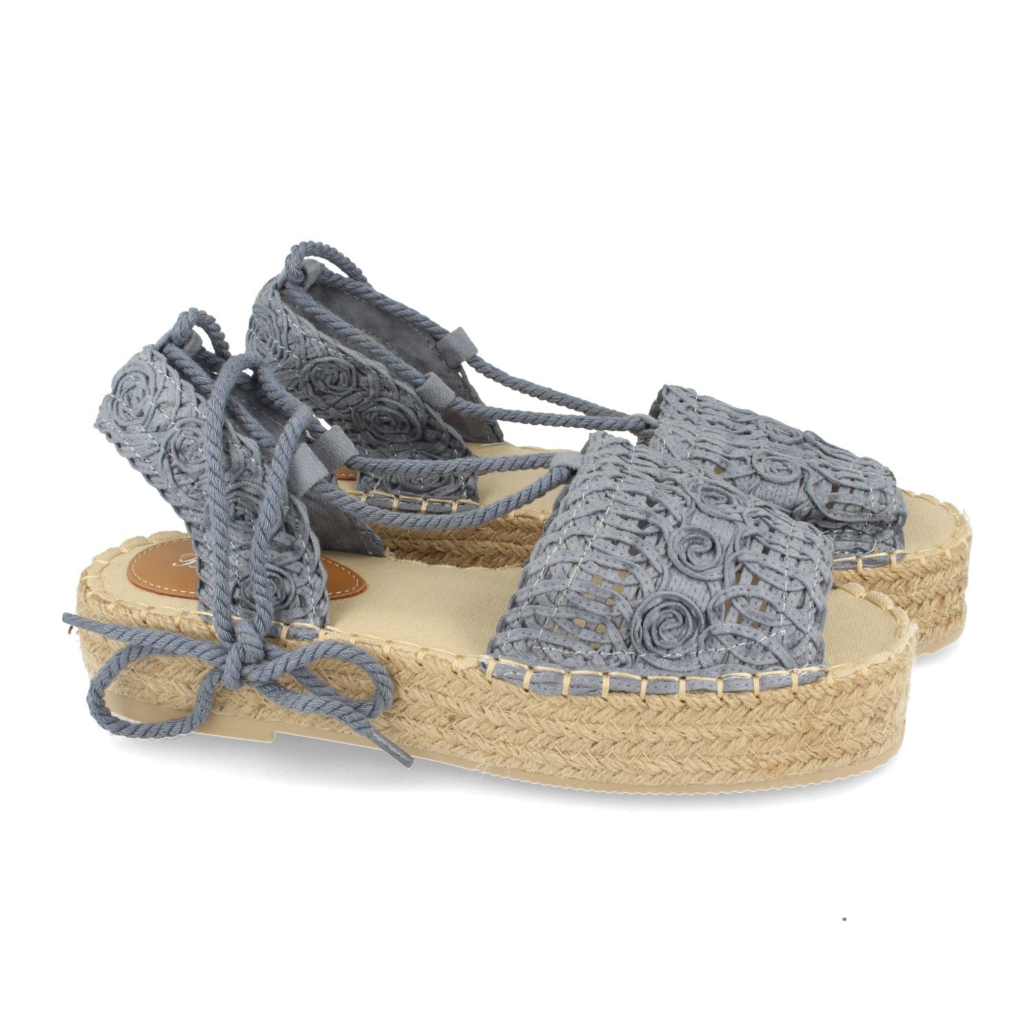 Sandalia Plana de Mujer Forrado de Yute con Pala de Rafia y Cierre de Cordones Primavera Verano 2021