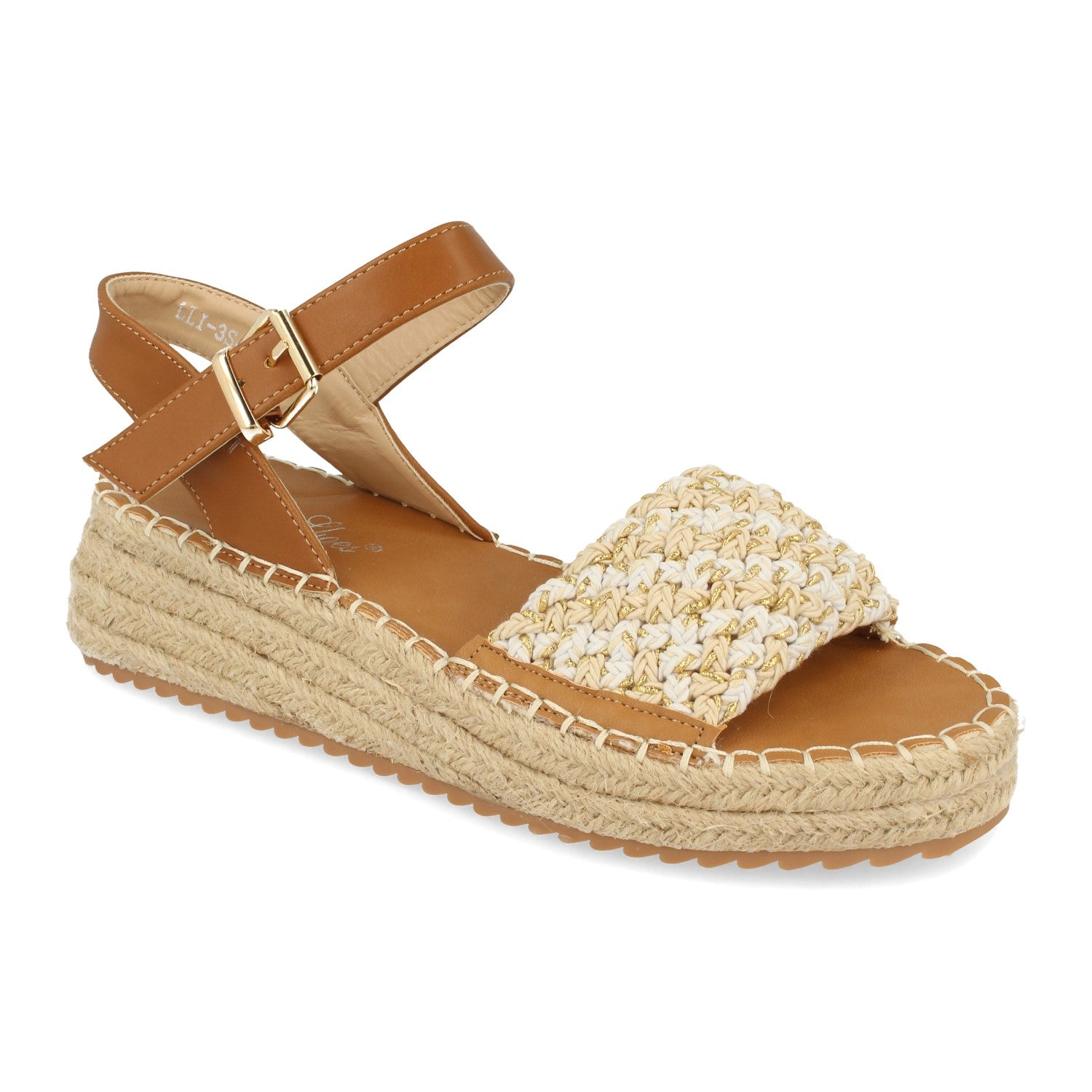 Sandalia Plana de Mujer Forrado de Yute Estilo Casual con Pala de Rafia Trenzada y Cierre de Hebilla Primavera Verano 2021