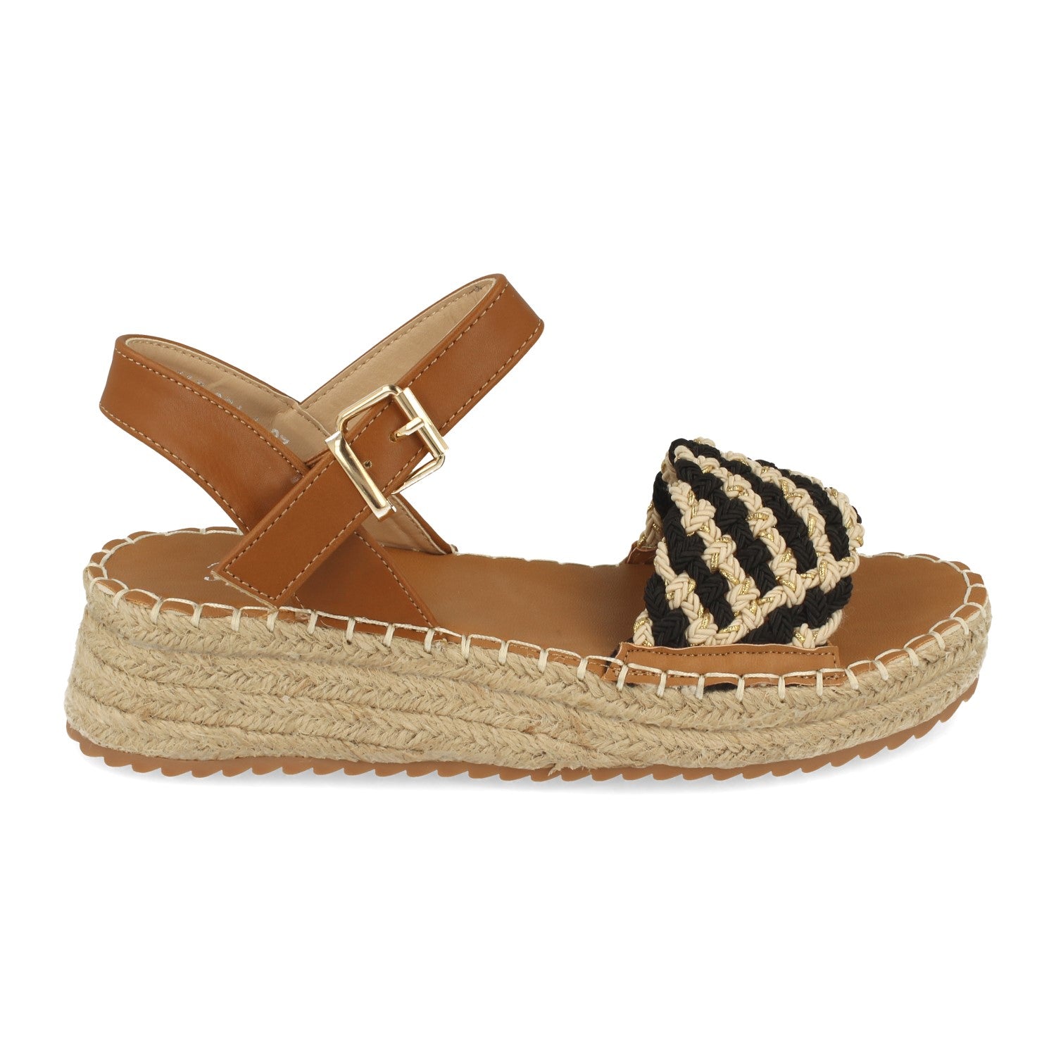 Sandalia Plana de Mujer Forrado de Yute Estilo Casual con Pala de Rafia Trenzada y Cierre de Hebilla Primavera Verano 2021